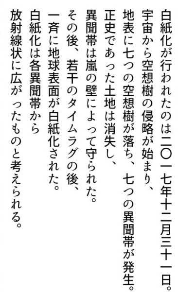 いや、流石にそれはおかしくないか…?オリュンポス攻略後からシオンが白紙化地球上の調査してるから、彷徨海出て白紙化テクスチャを彷徨ってる現状で南米行く前に言及パートぐらいはありそう