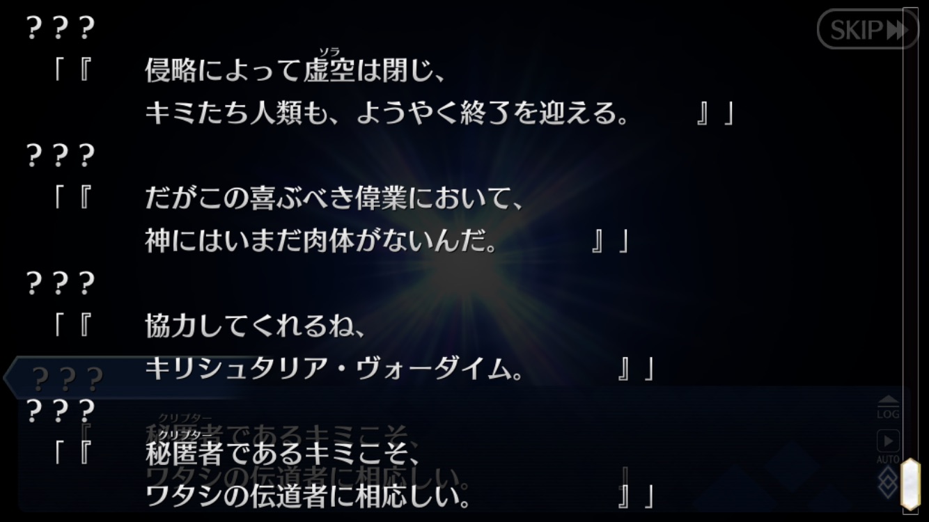 それは結構言われてるよね、ブルーブックさんの世界はカルデアスの中じゃないか?とか何も分からなくてもどかしい。早く次のストーリーを出してくれ