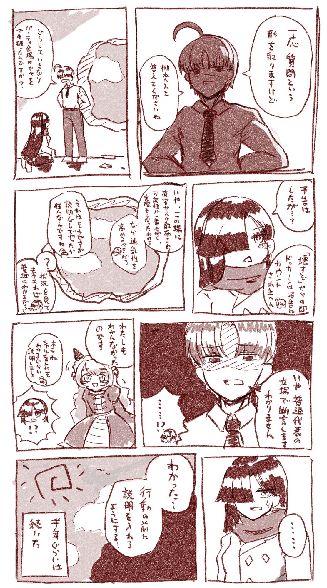 二人は至って仲睦まじく談笑している。1000ならなんか、こう、4周年アニバーサリー的な、こう、作品を……(ろくろ回す手つき)