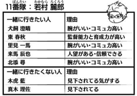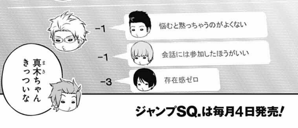 真木はこう……ハイキュー!!の月島によりエッジを効かせた言葉を使うね。表紙裏でも優秀でないと判断した人にはかなり当たりがキツいみたいだ。>>54