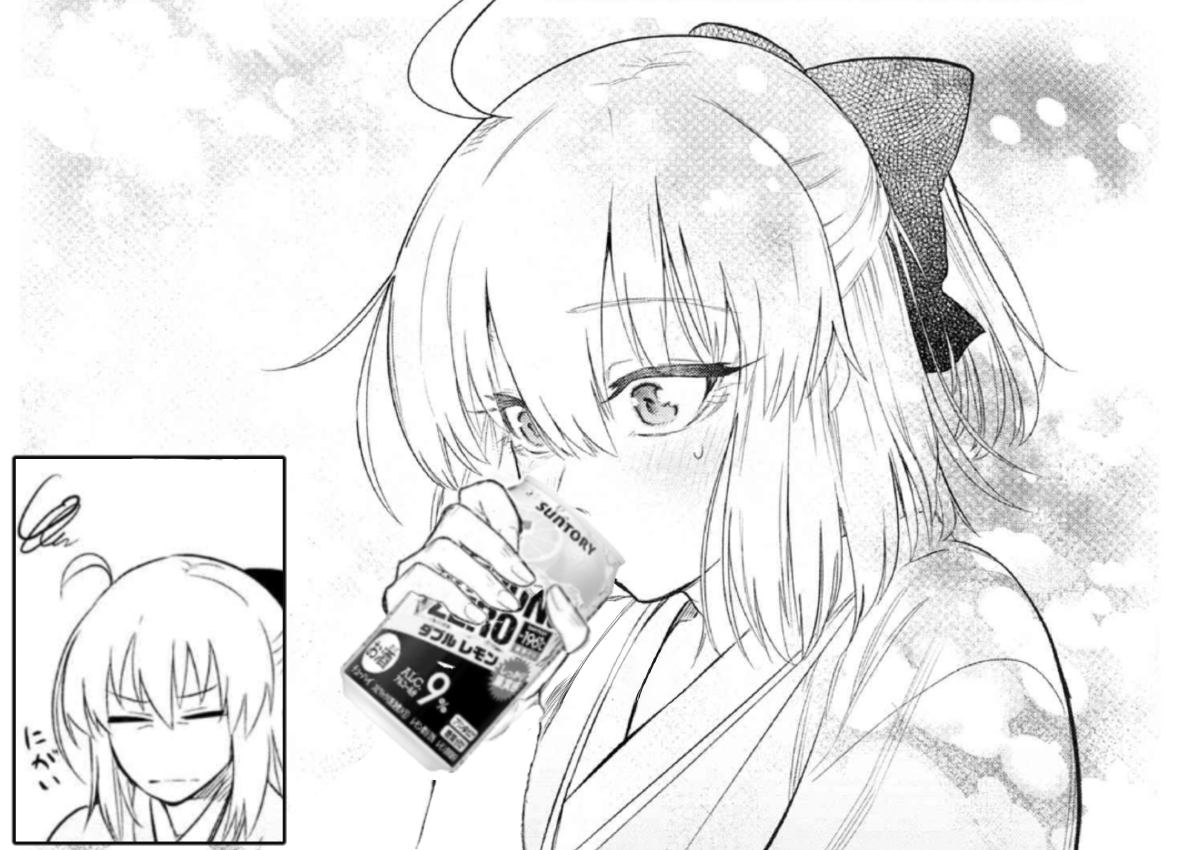 (先輩、聞こえますか……今、先輩の頭の中に語りかけています……それは私の宝具であってモルガンさんは関係ないです……)実際ストゼロ出すだけでこれはアカンと言うネットミーム的な印象がつくから使いやすいんだよね。酒出した表現だけならそこまでいかんがカシュ!の炭酸音付きのストゼロは中毒性ヤバすぎで。