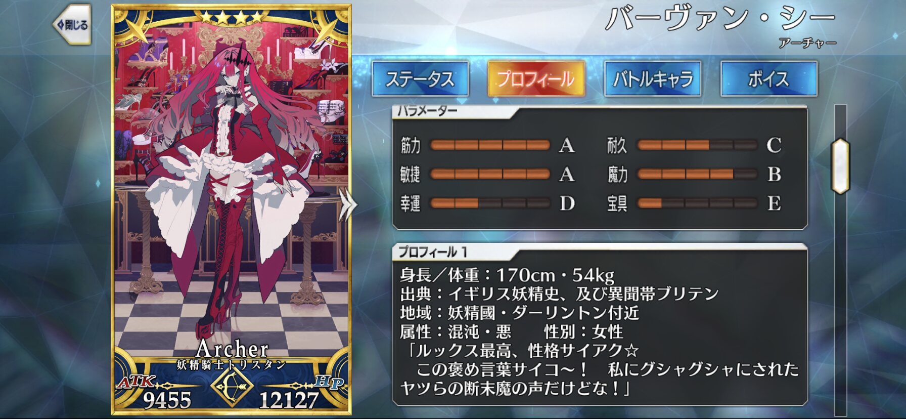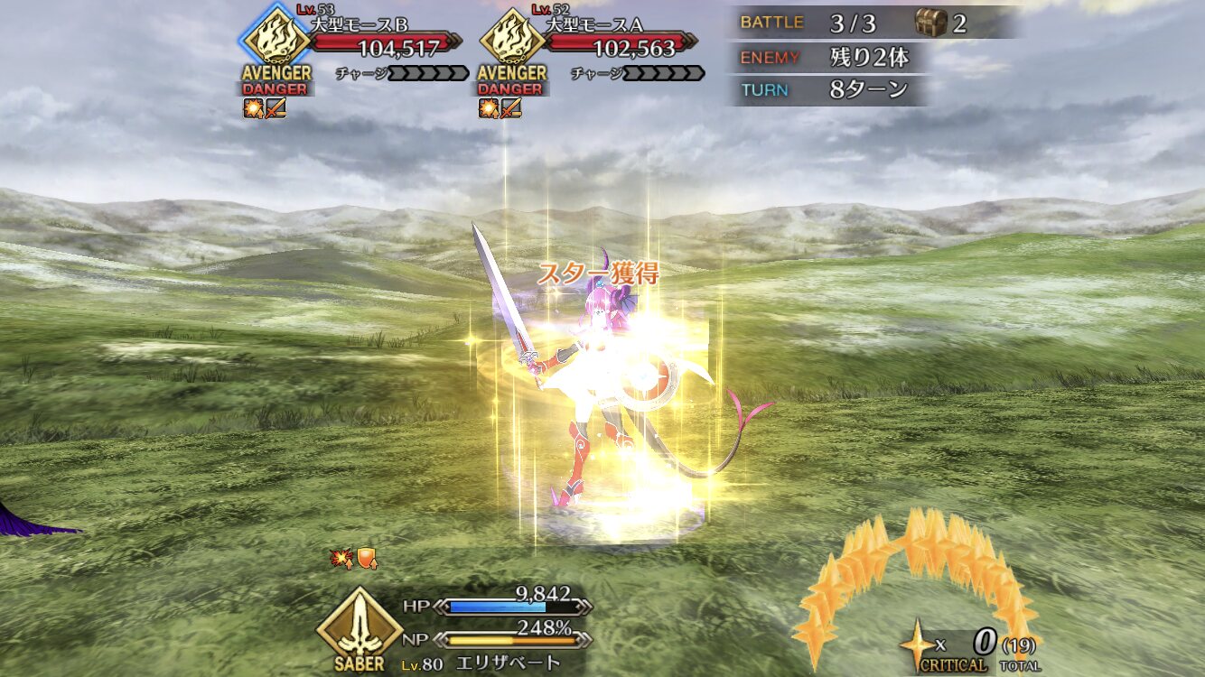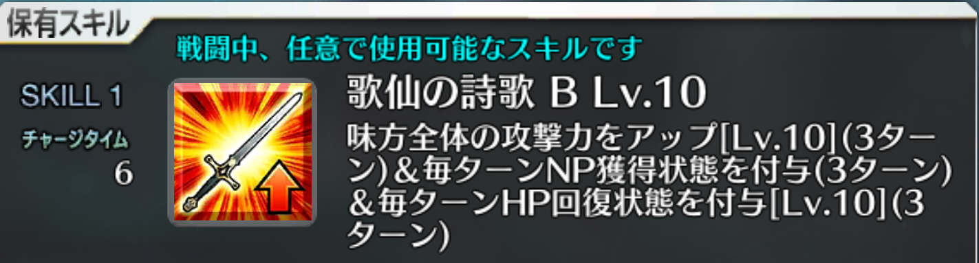 宝具と第一スキルのコンボは強力。殴った上で宝具とNPを獲得し、短いスパンで何度も宝具を叩き込む。ついでにA耐性を下げるので撃てば撃つほど威力が上がるなんだコイツ無敵か?