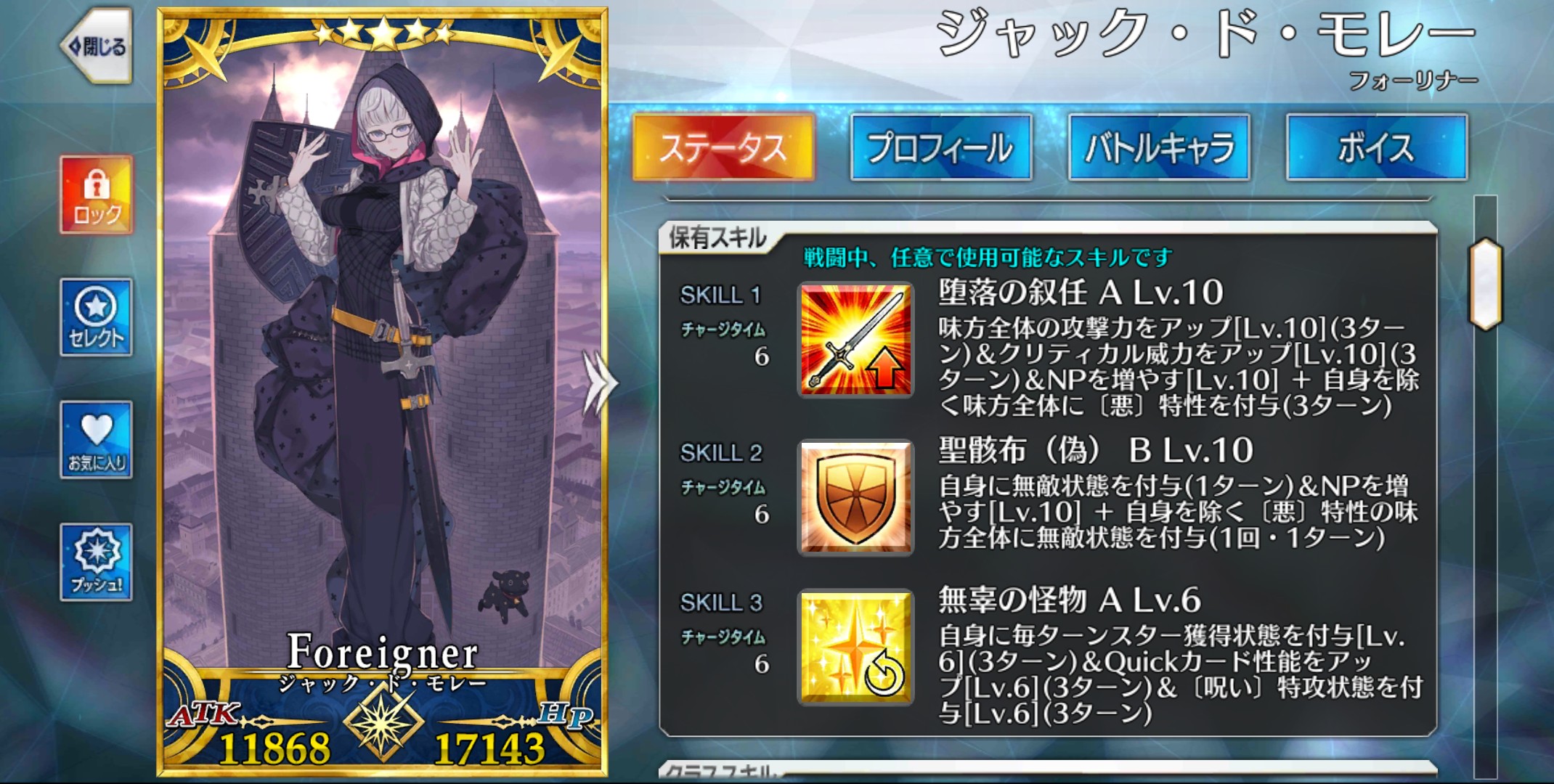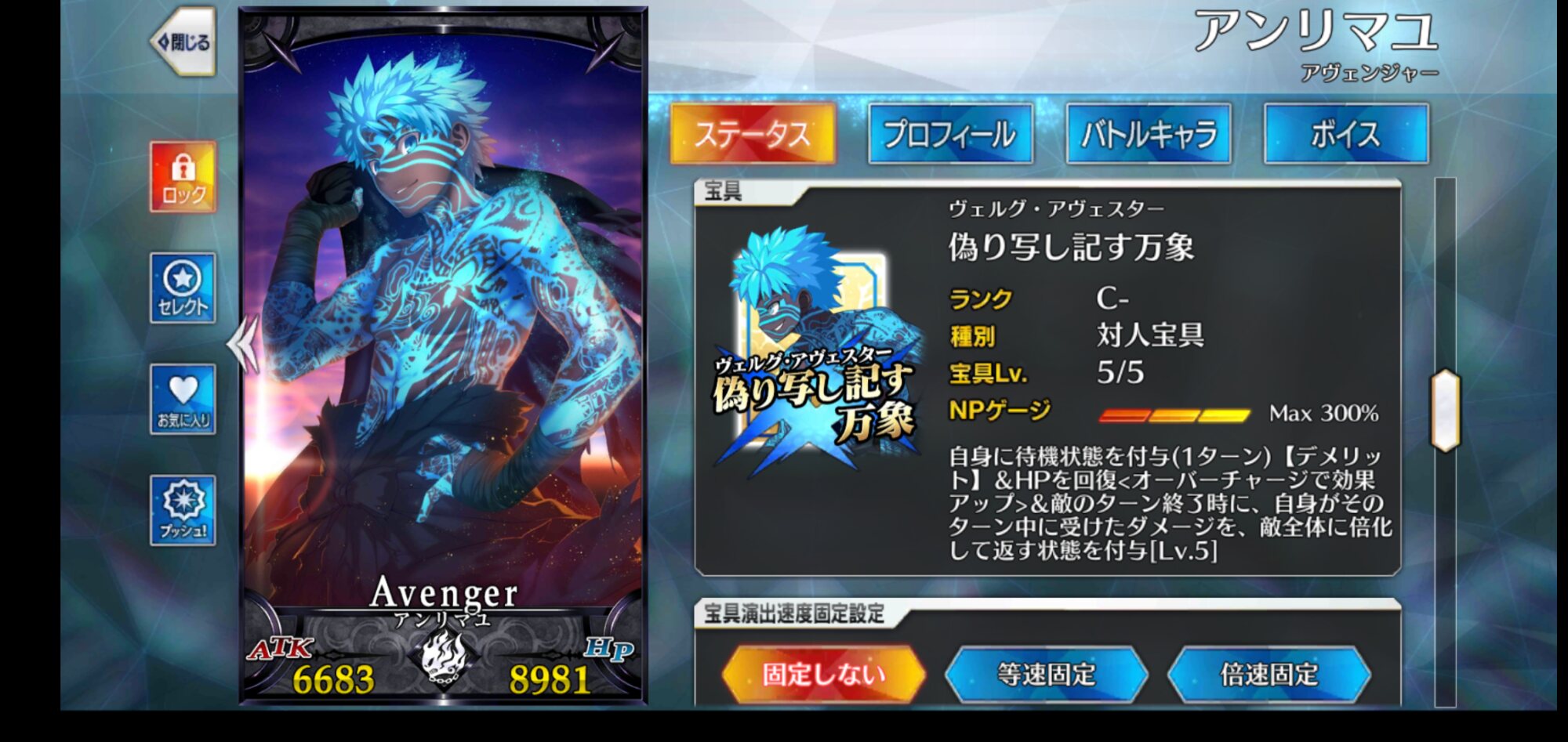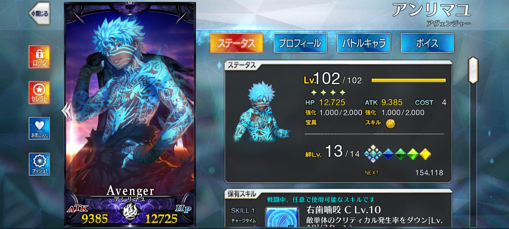 宝具と第一スキルのコンボは強力。殴った上で宝具とNPを獲得し、短いスパンで何度も宝具を叩き込む。ついでにA耐性を下げるので撃てば撃つほど威力が上がるなんだコイツ無敵か?