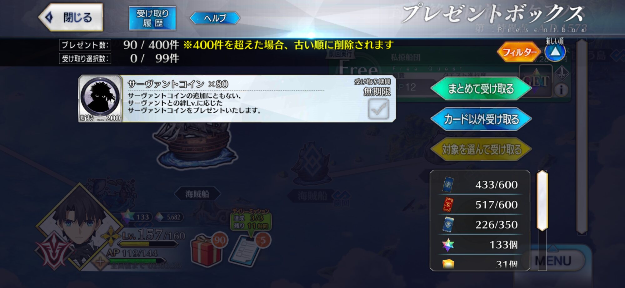 「すまんのう・・・コハエースの脇役でありながらコハエースの顔の沖田や織田信長よりも多くの霊衣を貰ってしまってすまんのう・・・バレンタインでもコハエース勢の中でも群を抜いた人気を擁してしまってすまんのう・・・」聖杯(無限につまみが出てくる大釜)