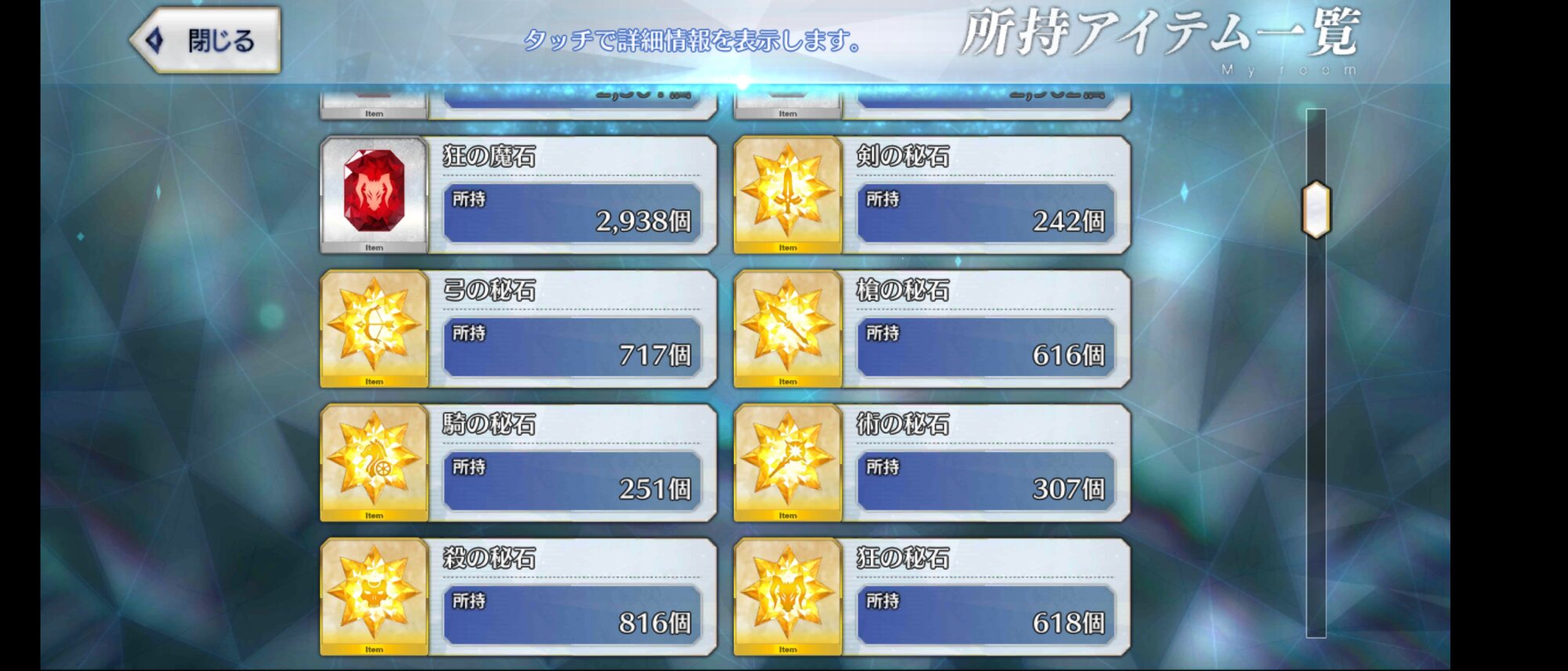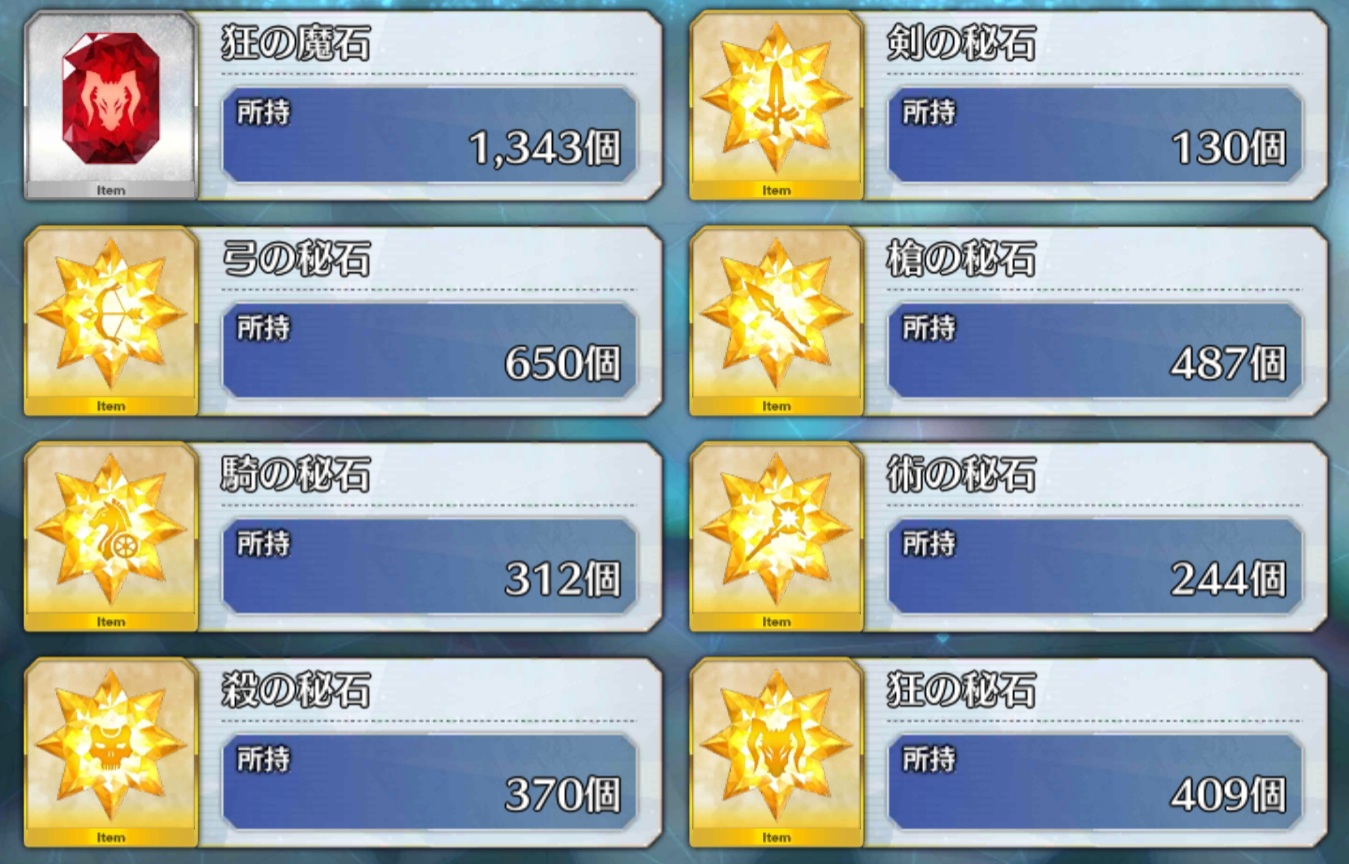 AP40のクエスト4周で1箱って考えると破格輝石、魔石を合成して秘石にできないかな…