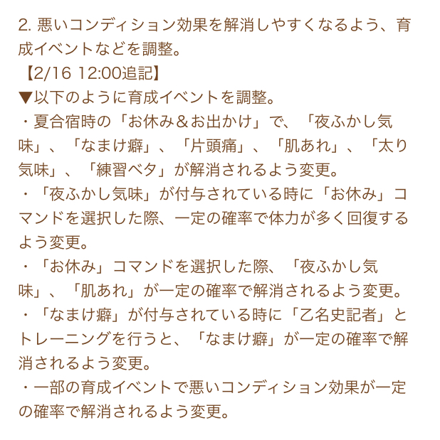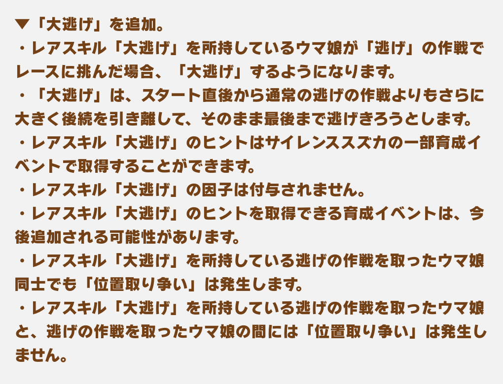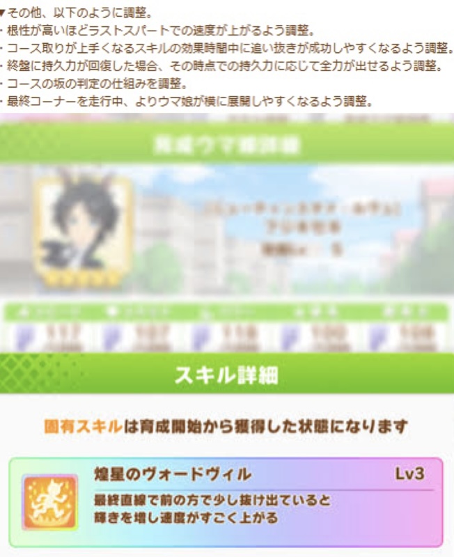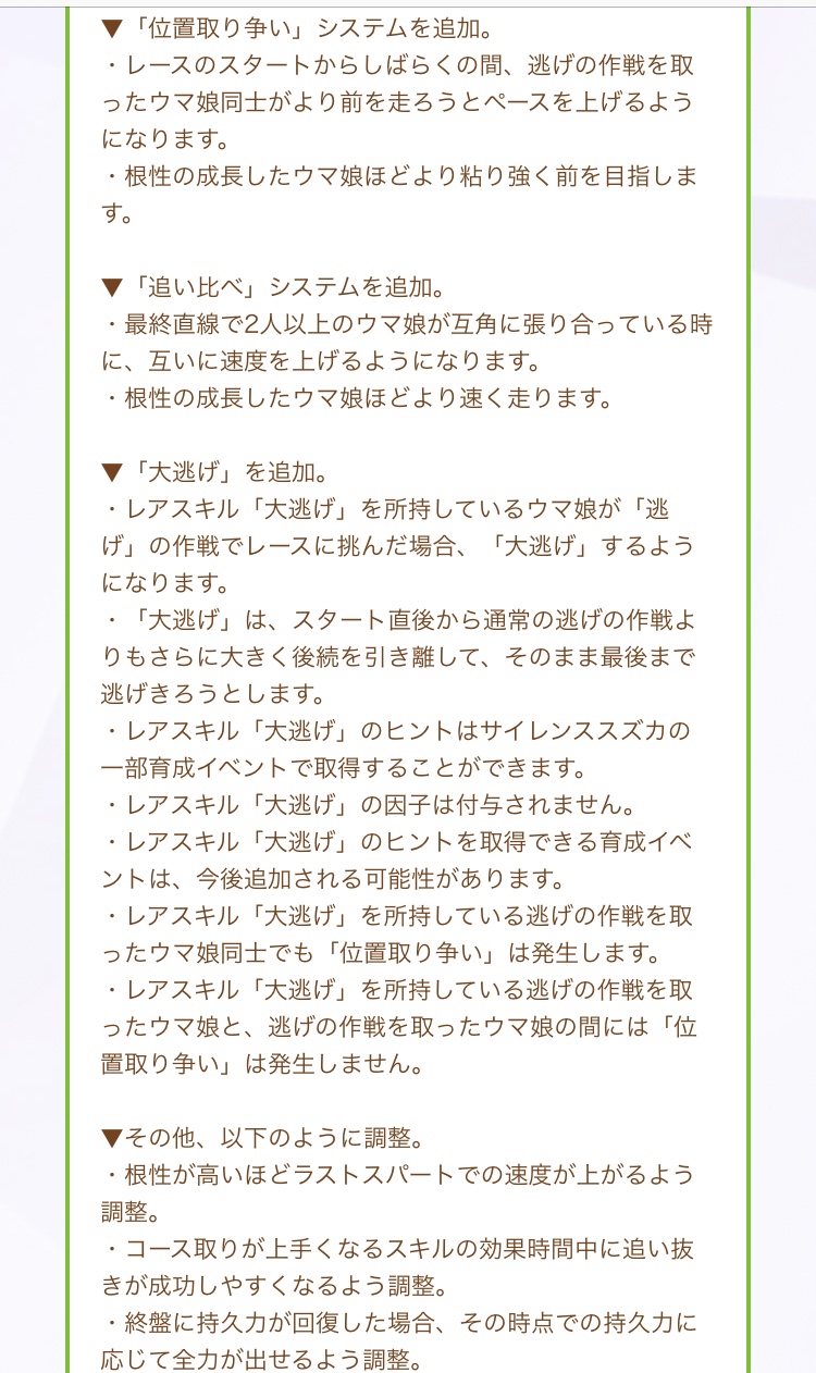 今までの逃げとか根性とか明らかな欠陥となりえる仕様を是正する動きが遂に来たか最終直線に影響が大きいなら割と短距離根性育成理論はアリになってくるかもしれない