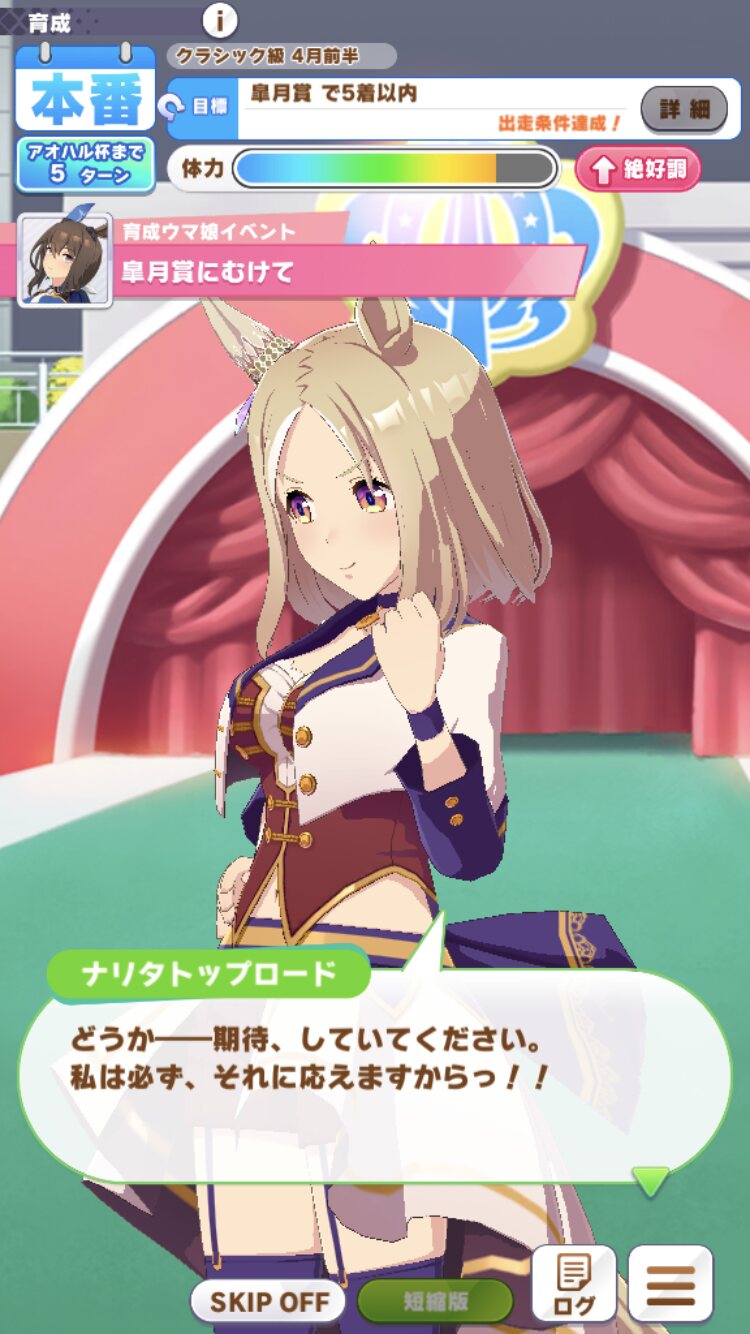 とりあえずお気に入りの娘(オペラオー)が強くなるうぇーいぐらいの気持ちでいるそういえば終盤に持久力が回復したらそれに応じて全力が出せるように調整ってあるから、リラックスとか不遇だった回復スキルにも意味が出てくるのか