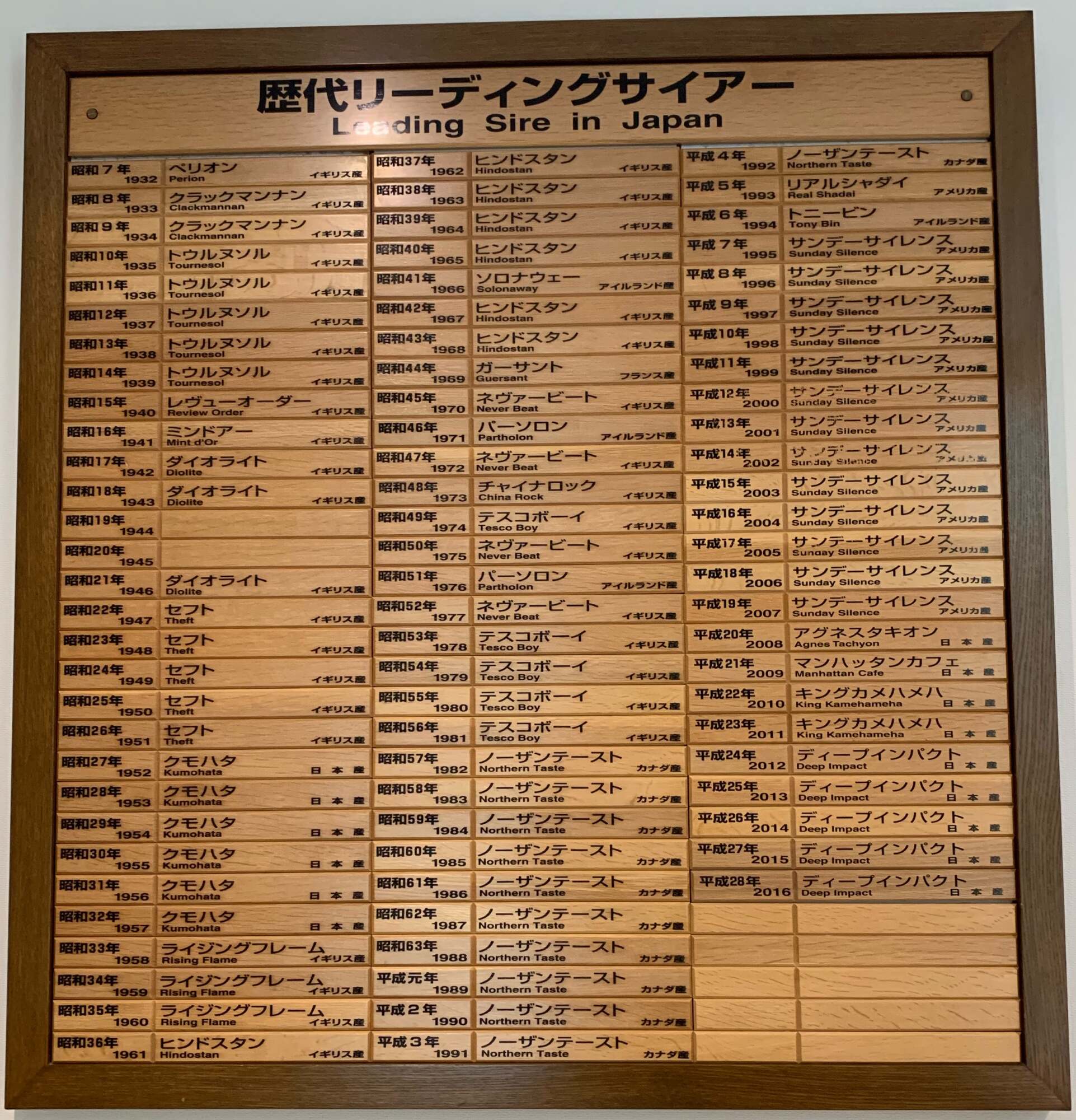 ・現役馬および現役馬の父母と同名ではない