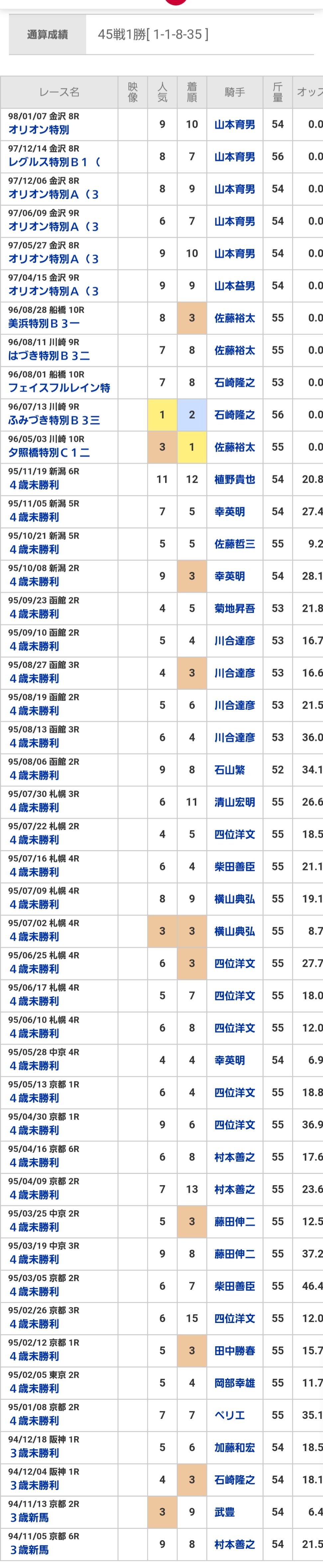 調べたらオレハマッテルゼとかけっこう面白くてインパクトがある馬も多いんだな>>916
