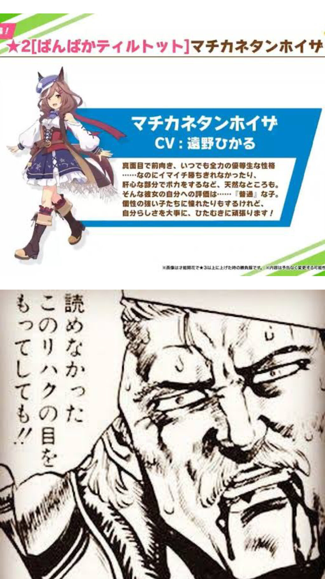 netkeibaさんはジャスタウェイとか新規ウマ娘がやってきても、推しを布教するオタクののように画像を持ってスタンバイしてるよ。昨日のぱかライブでそう思った。>>907
