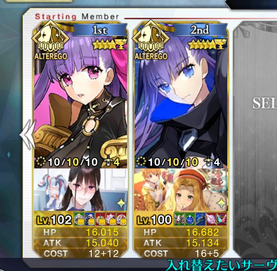 変則は凸イベ礼装バゼットさん、カレスコカレンカレン、Wスカディ様で回れて楽しかったです>>62