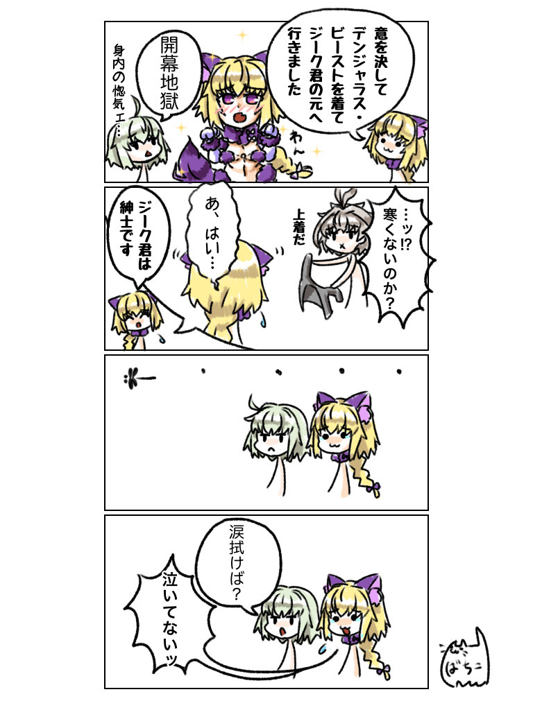 視線誘導されてる彼に晴明スタンプ2個やって>>891オーロラもそうだけど最強であるがゆえに未来視並みの直感でも想像を絶する明後日の方向性の考え方とかには耐性なさそうだよねメリュ子。本人も破天荒の性格に見えるけどそれは人間から見た竜という存在が破天荒なのであって本人的には至極まとも(竜種基準で)なメンタルだし