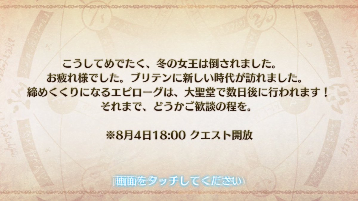 取り敢えず来月中頃のは1章までが条件だけど、その次が2章飛び越えて3章とかが条件になるかもしれないし、5章条件イベの次は5.5章クリアのは無くていきなり6章とかの可能性もあるので、まぁ暫く様子見していれば傾向分かるのかなと