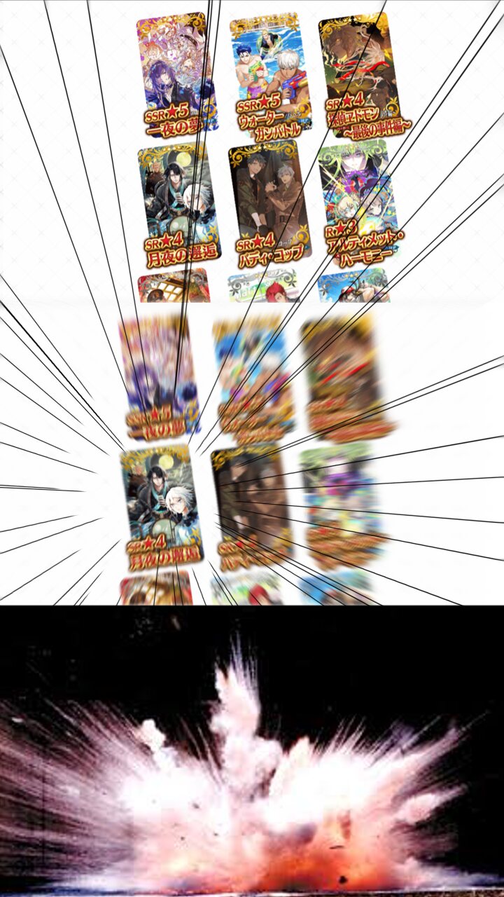 例年通り全部引くエミヤお前まさかホロウの釣りと同じで投影なんじゃないだろうな。ギルも高性能な水鉄砲で多分兄貴は一般的な水鉄砲だなこの構図。