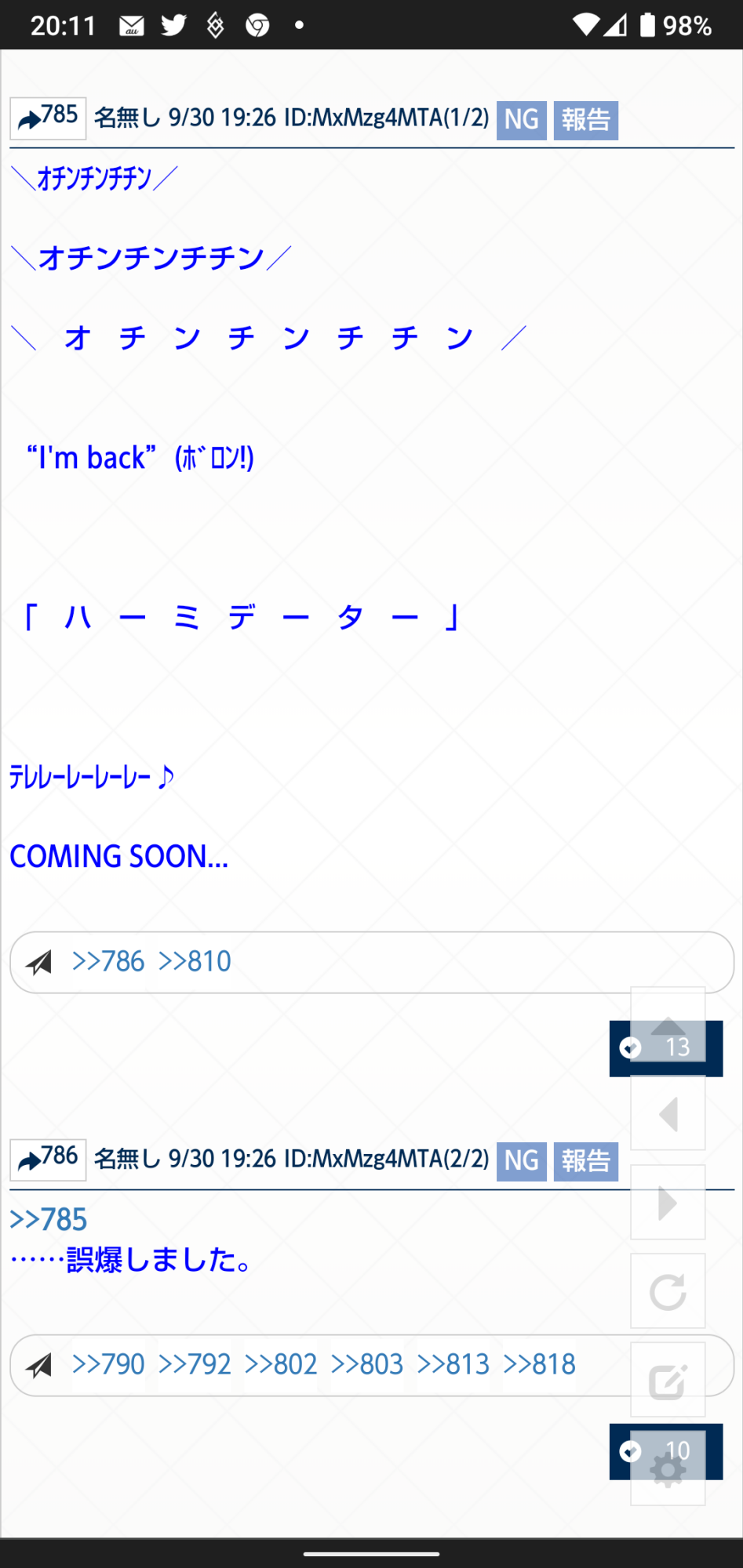 スレ民、今北産業なのでち