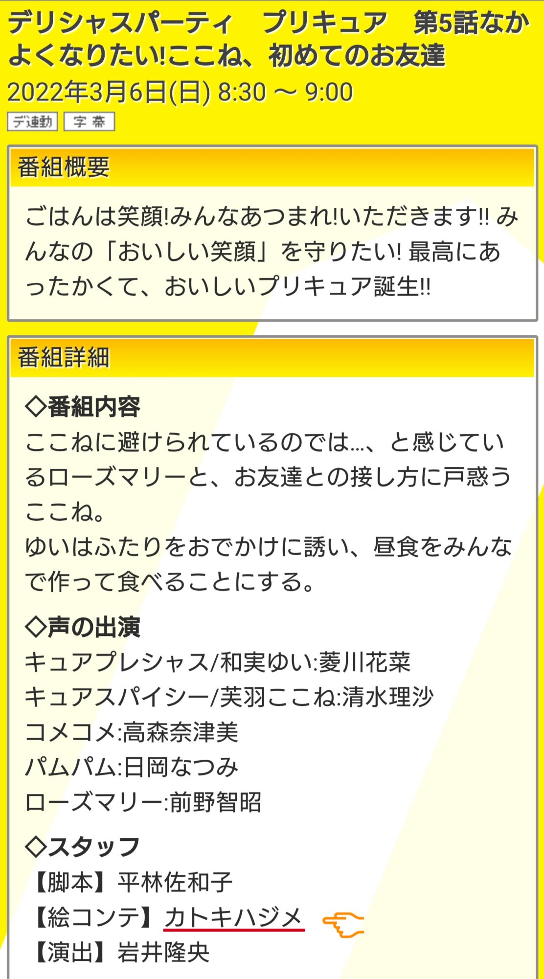 カトキさんが絵コンテってのはガルパンOVAでもやってるけども、プリキュアとはね