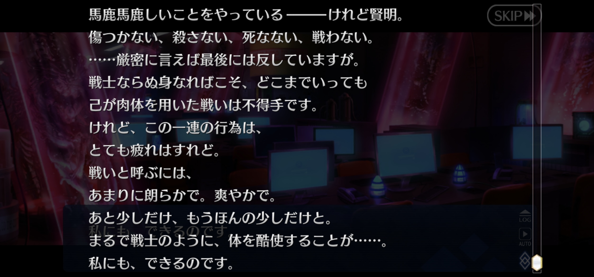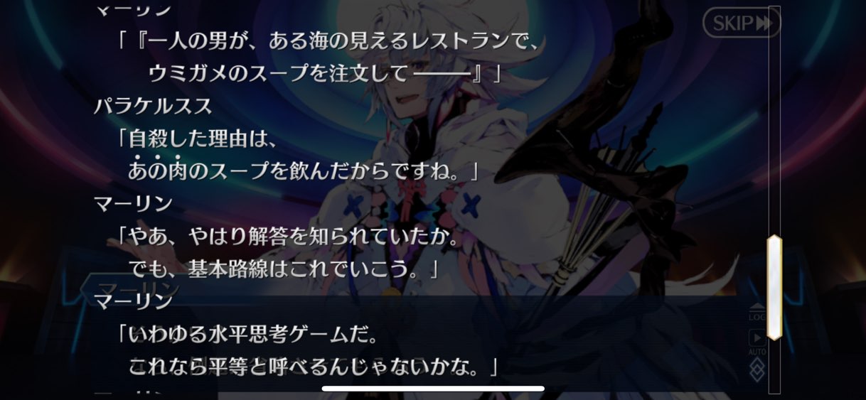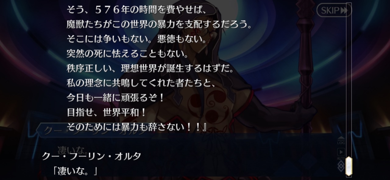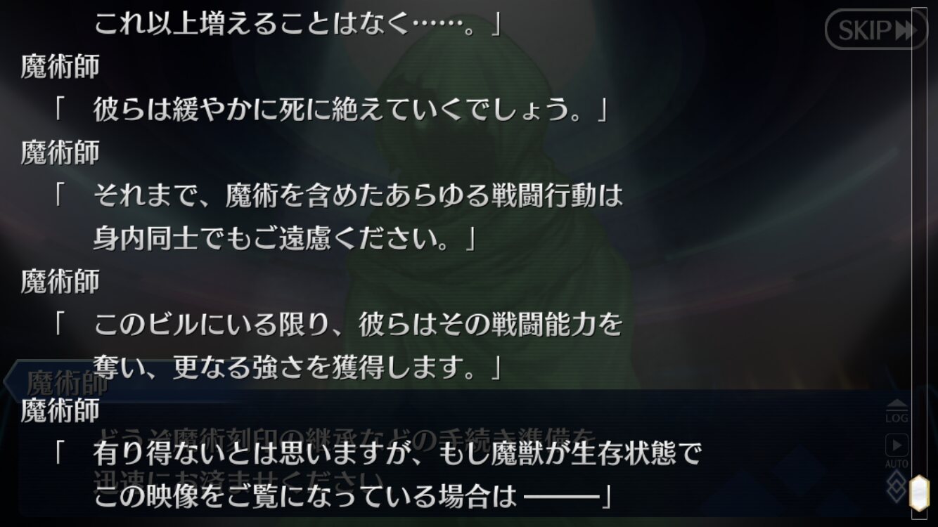 そういやこの魔獣は聖杯のバックアップ受けてるけど何でだろう今回のシナリオ新しい雰囲気で読んでて楽しいな。サーヴァント故の戦士の価値観の盲点や殺し合いではない協議による下剋上の爽快感ヤバい