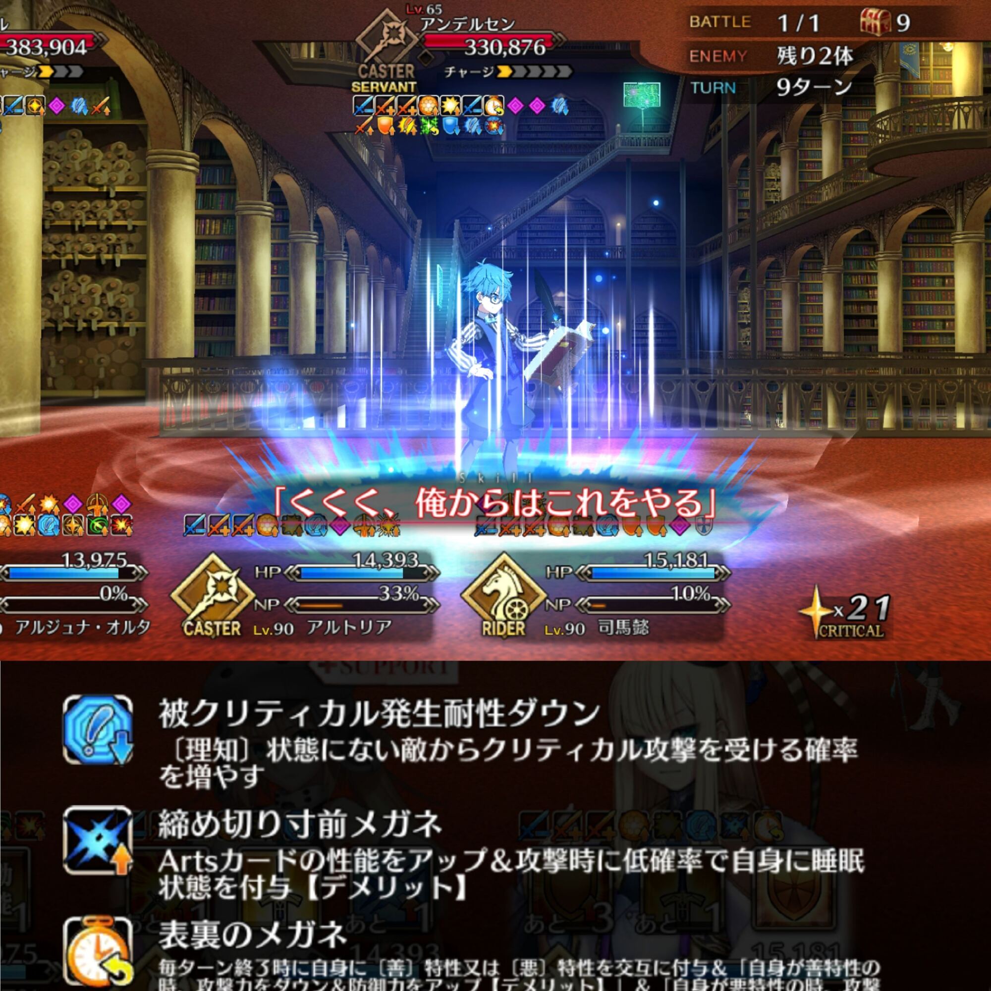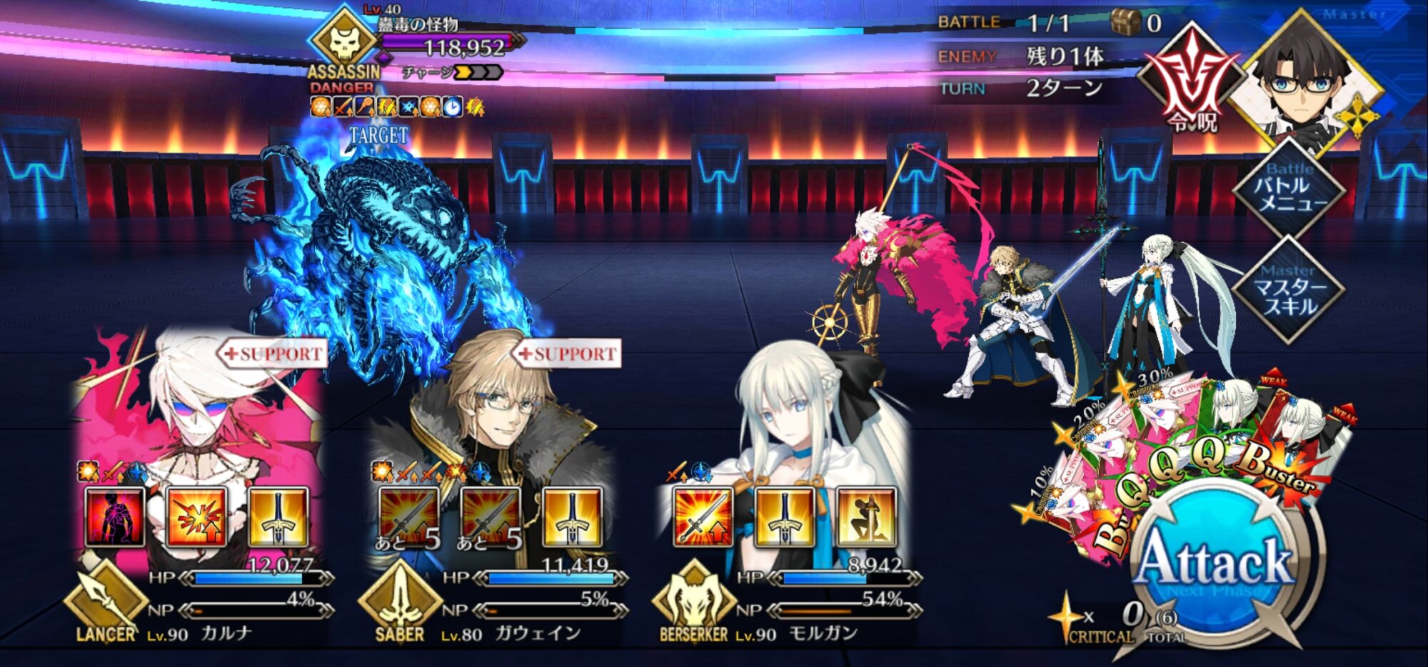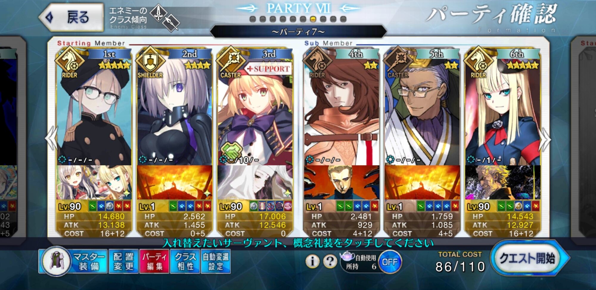 こっちはオベロンコヤンキャストリア(全部スキルオール10)とオルジュナがいるけどクリアできない…2wave目、変に宝具撃とうとするよりシグルドで殴り飛ばしで3wave目行った方が手っ取り早いことに気づいた