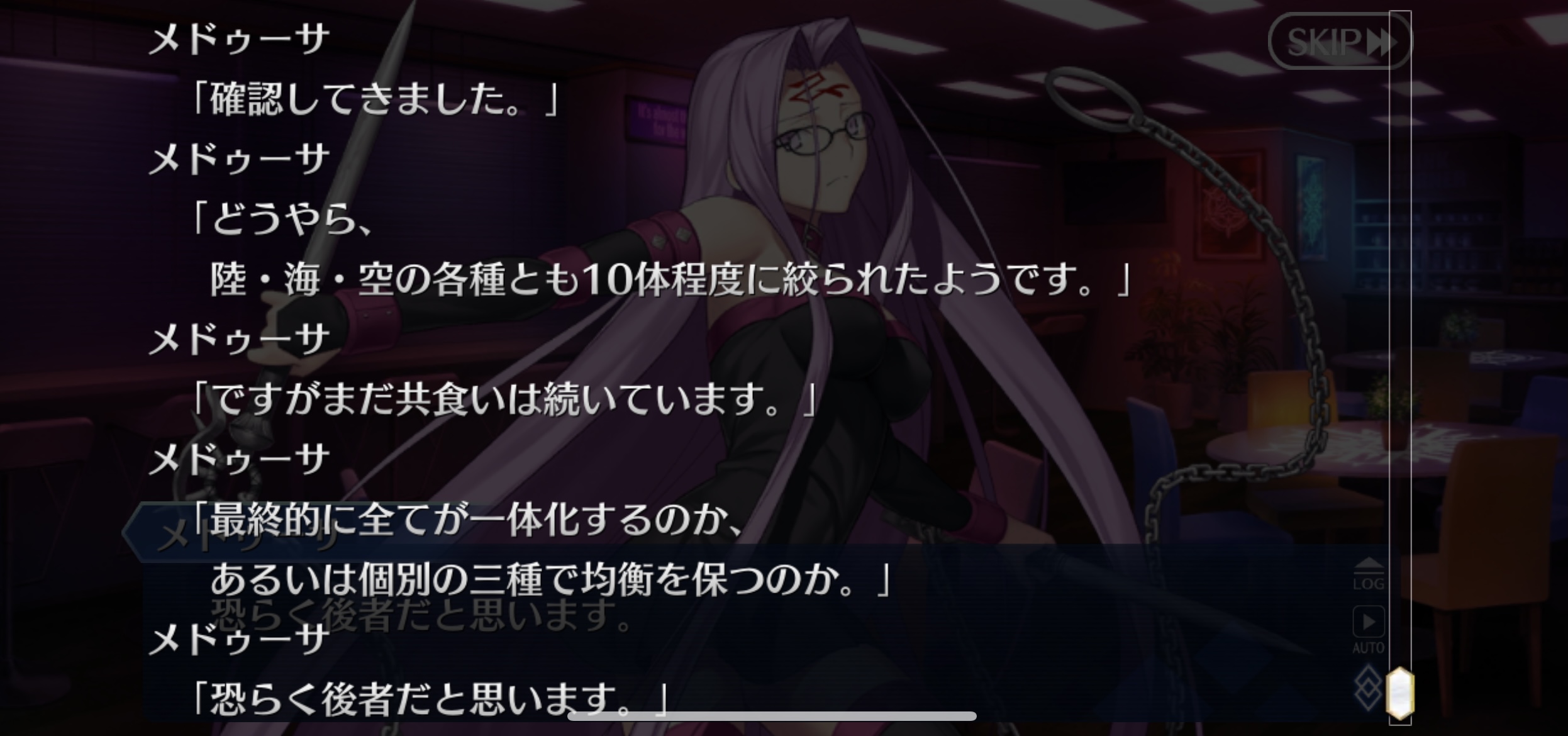 ……いや相手も知恵ついてきてるしそう上手くいくかな……?メデューサさんの眼鏡が足りない発言、前スレでは勘違いしてたけどBチームの合流前か。なら