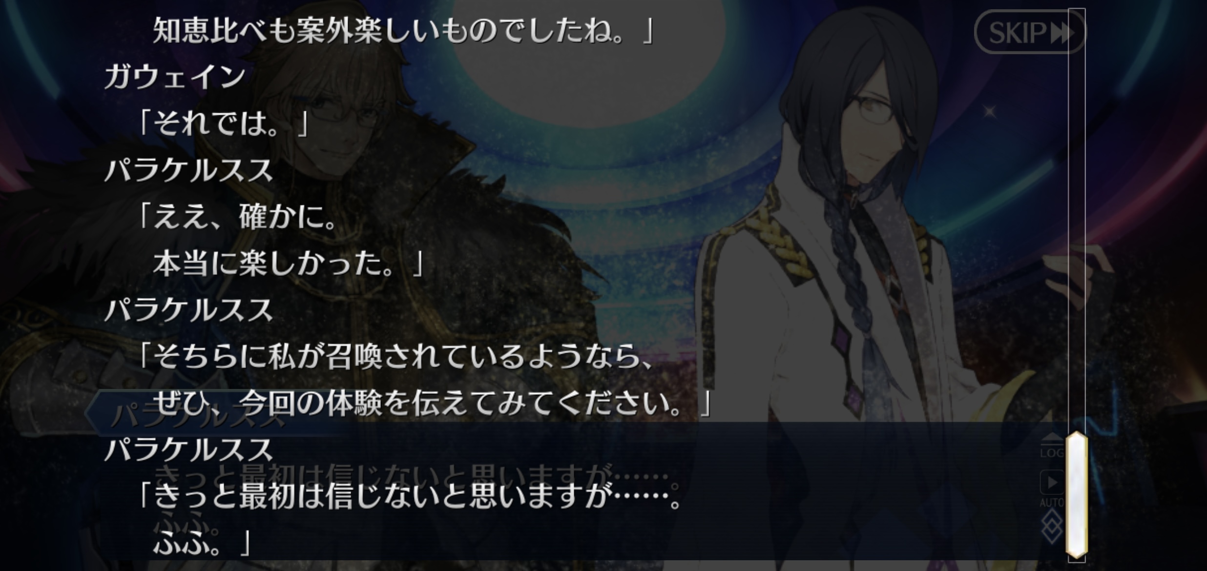 姉上のために!のスタンスは変わらないままこれまでより一回り大きく成長した進展を見せるカッツとか、カルデアのとは別物の話だけど走ることが気になるパラPとそれが間接的な形で後々またモーさんと交流を築くことなるかもしれないことを予期させる繋げ方とかがあのいっときのゲームはあの場限りで終わってしまったけどそれもちゃんとこれからに繋がっていくんだって感じでほのかな余韻が後日談として良かった