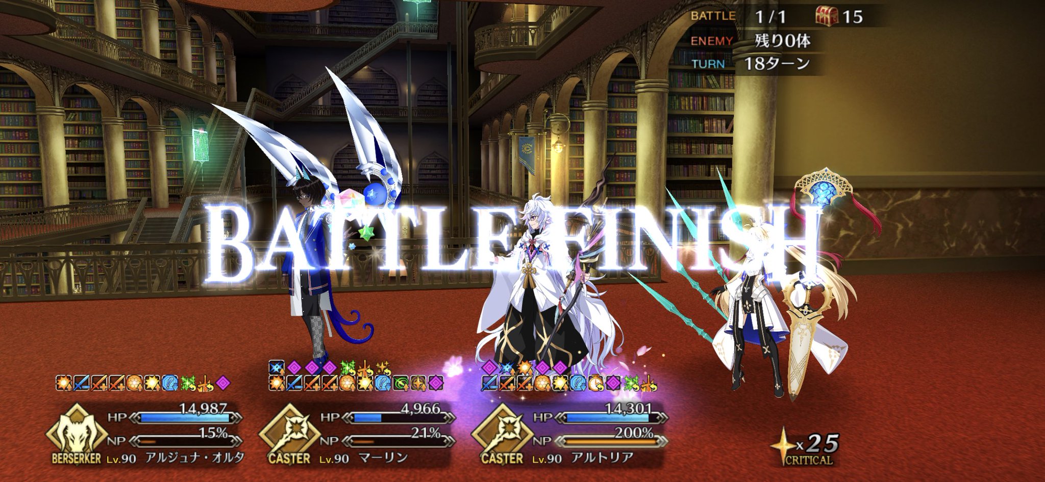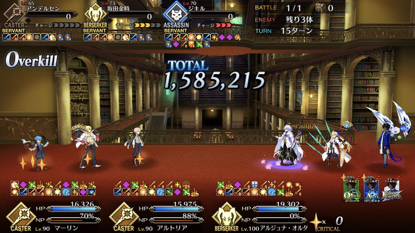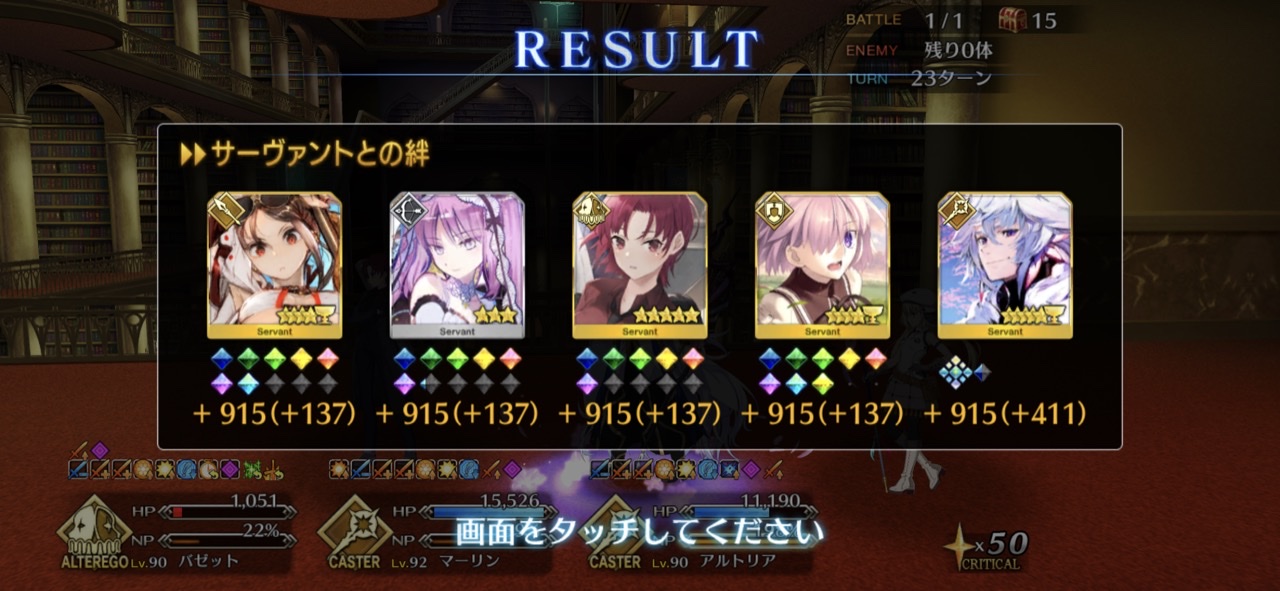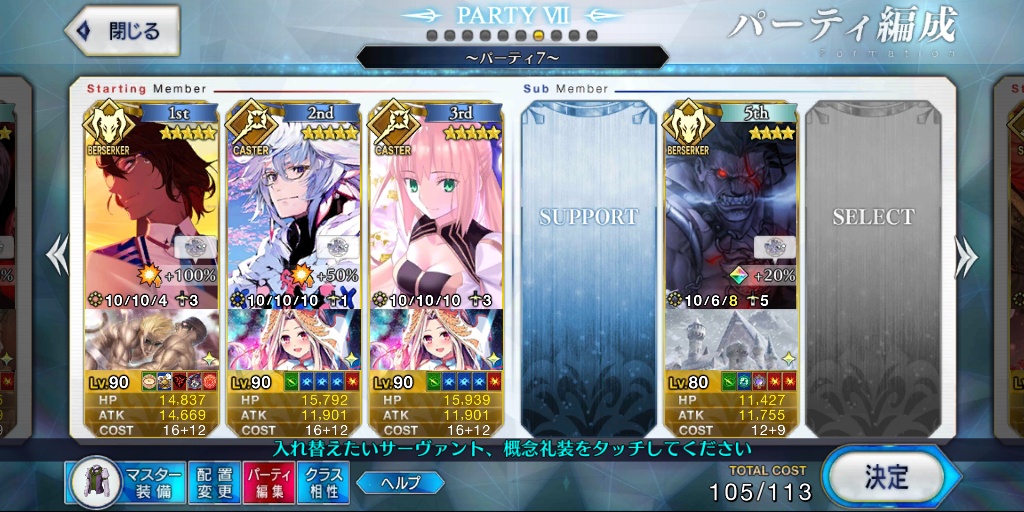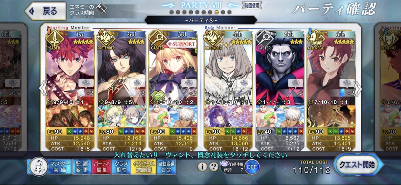 リジェネ怖……体力ギリギリなのに数ターンだったら半分に戻っていてびっくりした高難易度は水着ブリュンヒルデ、マーリン、キャストリアで宝具ぐるぐるしてたら終わりました