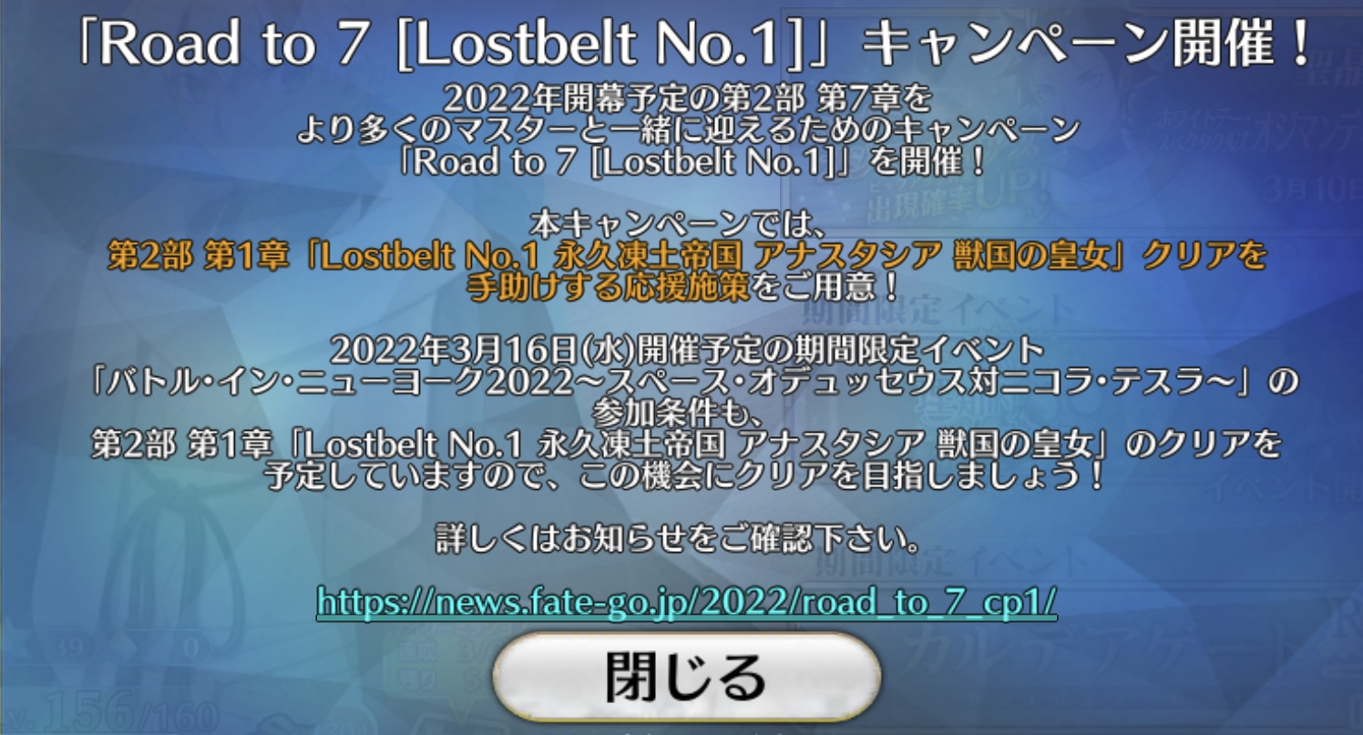 ・第2部 第1章「Lostbelt No.1 永久凍土帝国 アナスタシア 獣国の皇女」をクリア