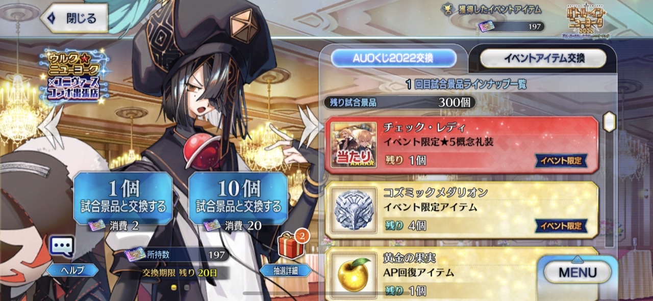 周回もアペンドのお陰でかなり楽が出来るし。10箱目当たりの徐福ちゃんボイス…なぜ歌ってくれなかったんです?