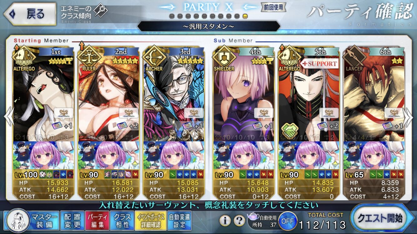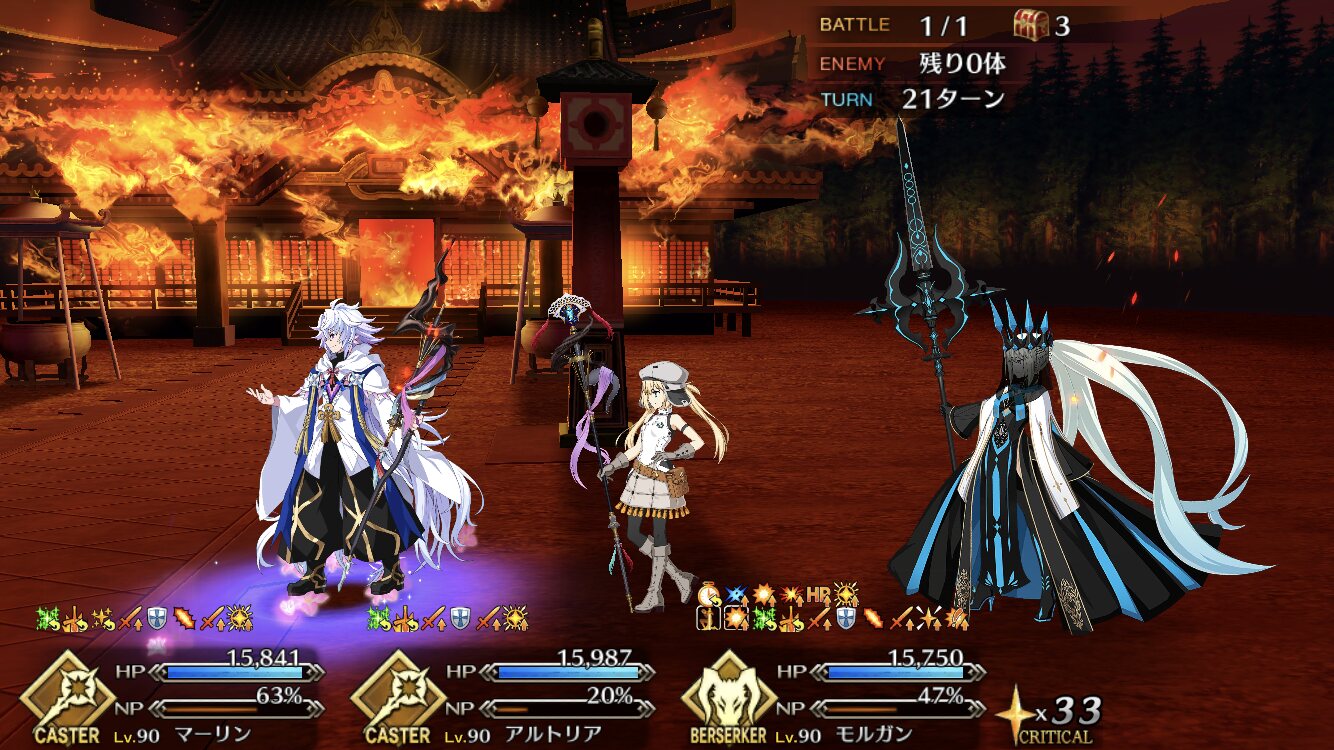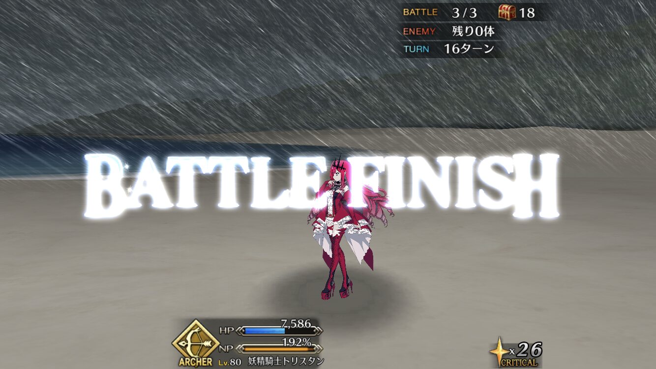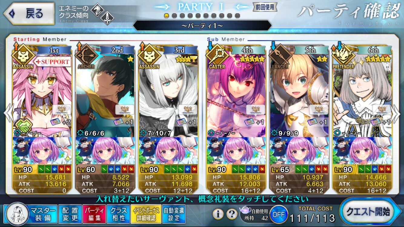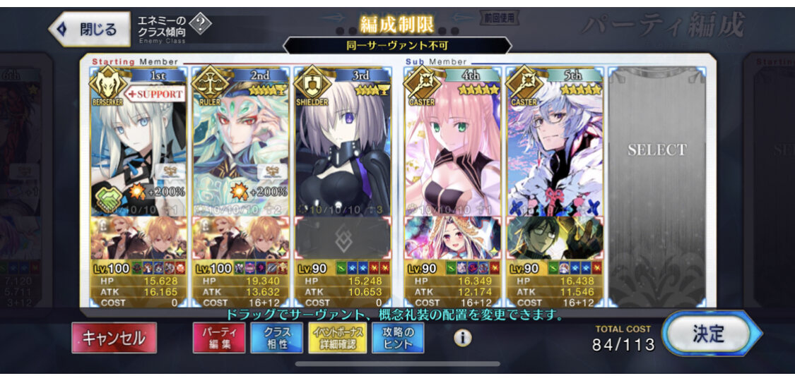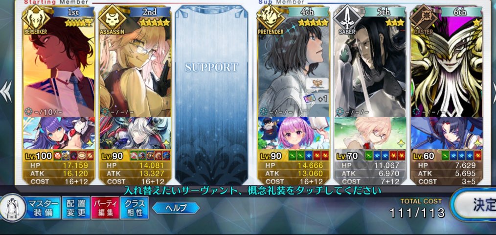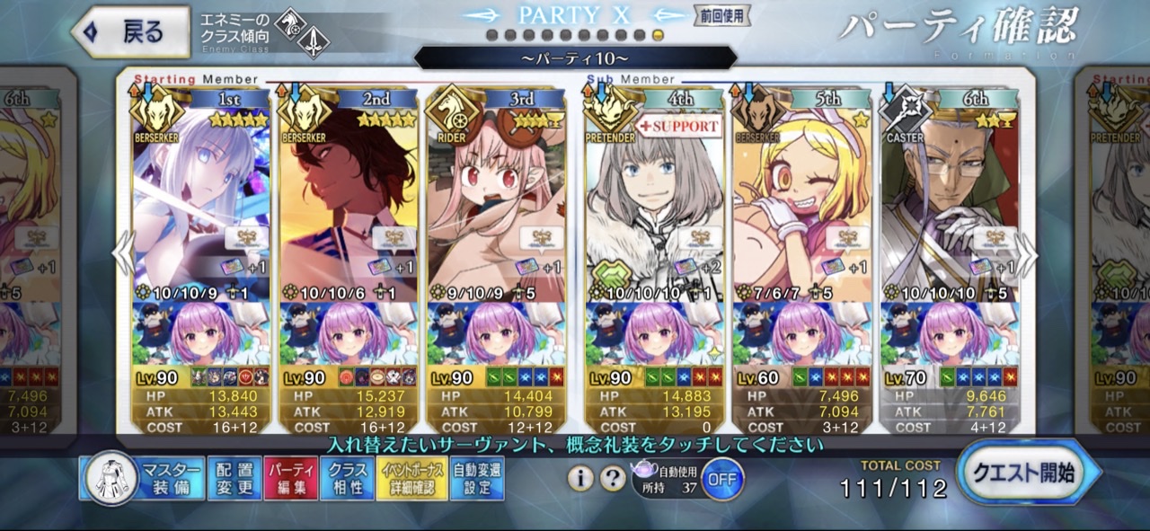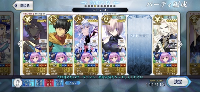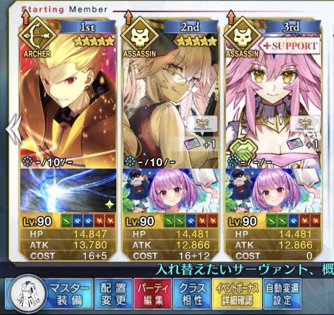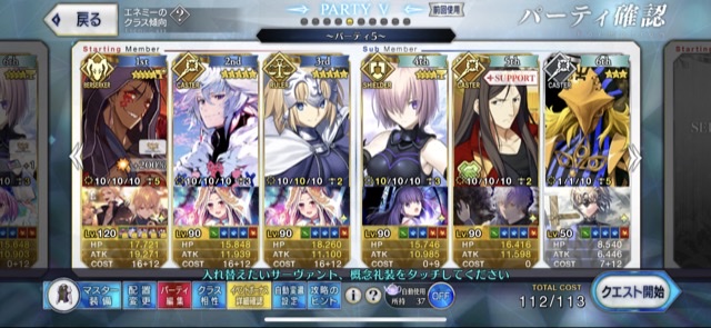 お疲れ様。これ、(特攻礼装含め)ガッツ礼装をどんだけ使うか、持たせる場合そのキャラだけで場を持ち堪えられるか否かで大分難易度変わるよね