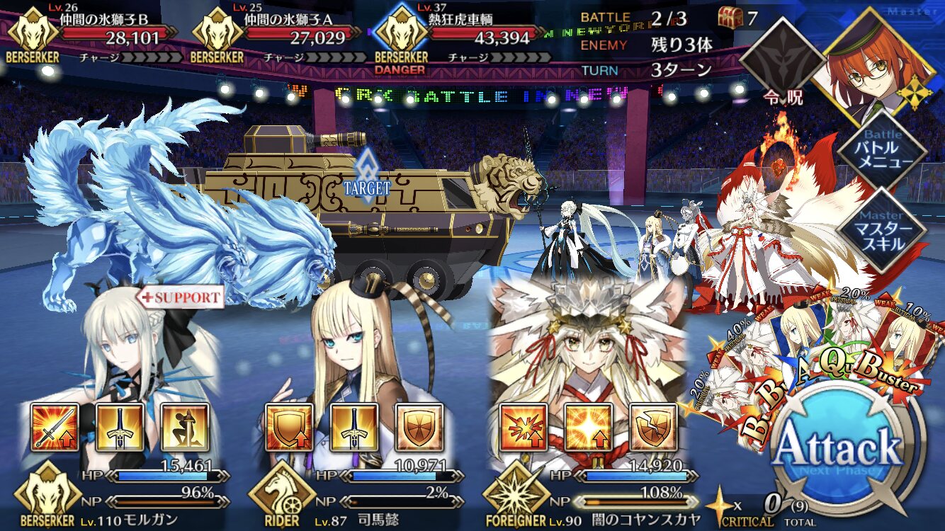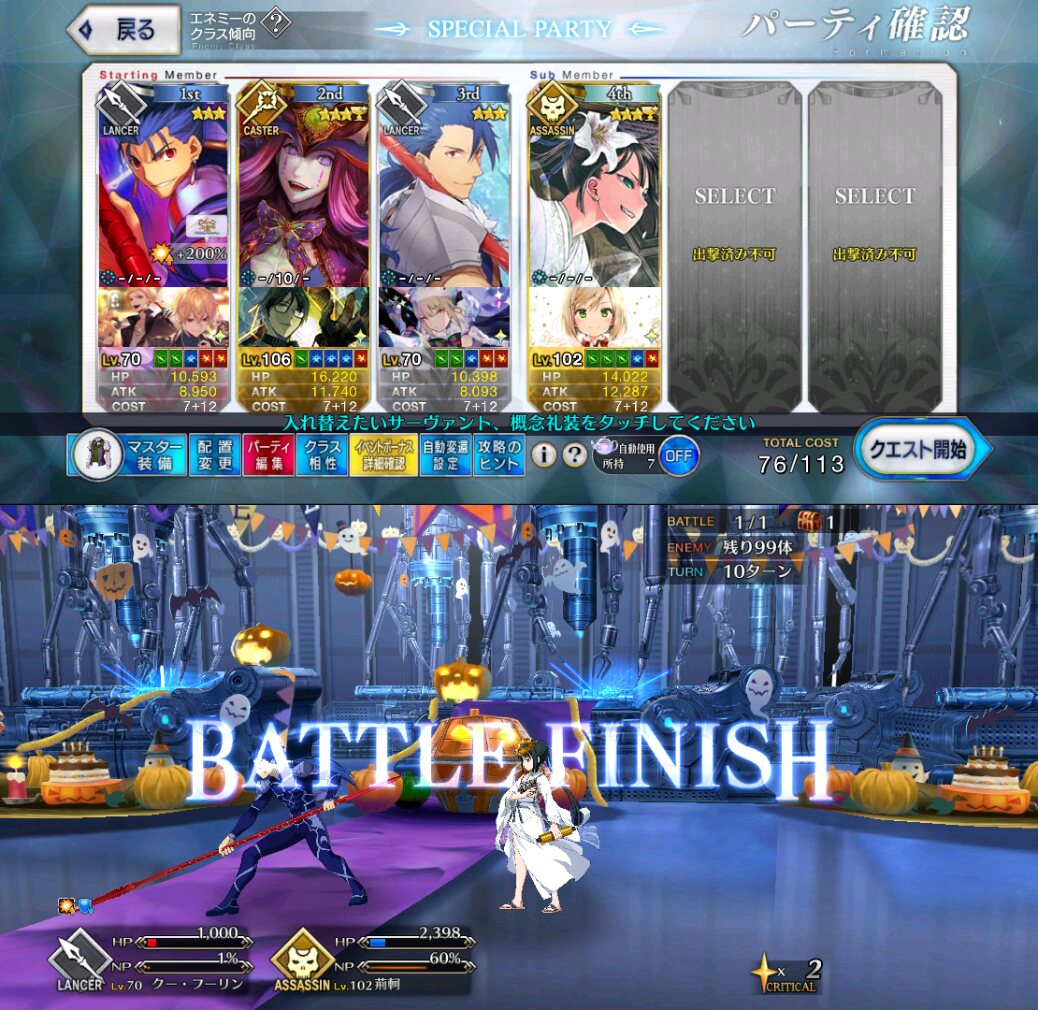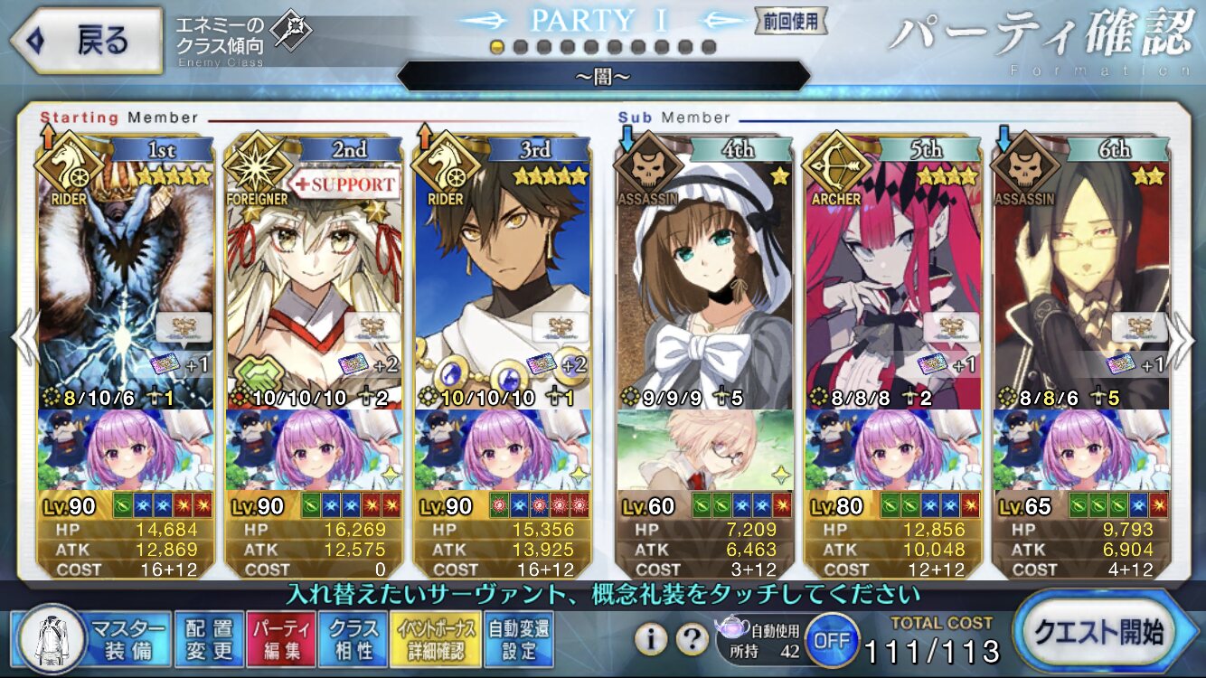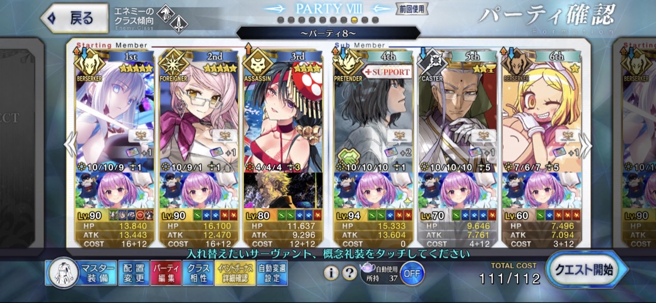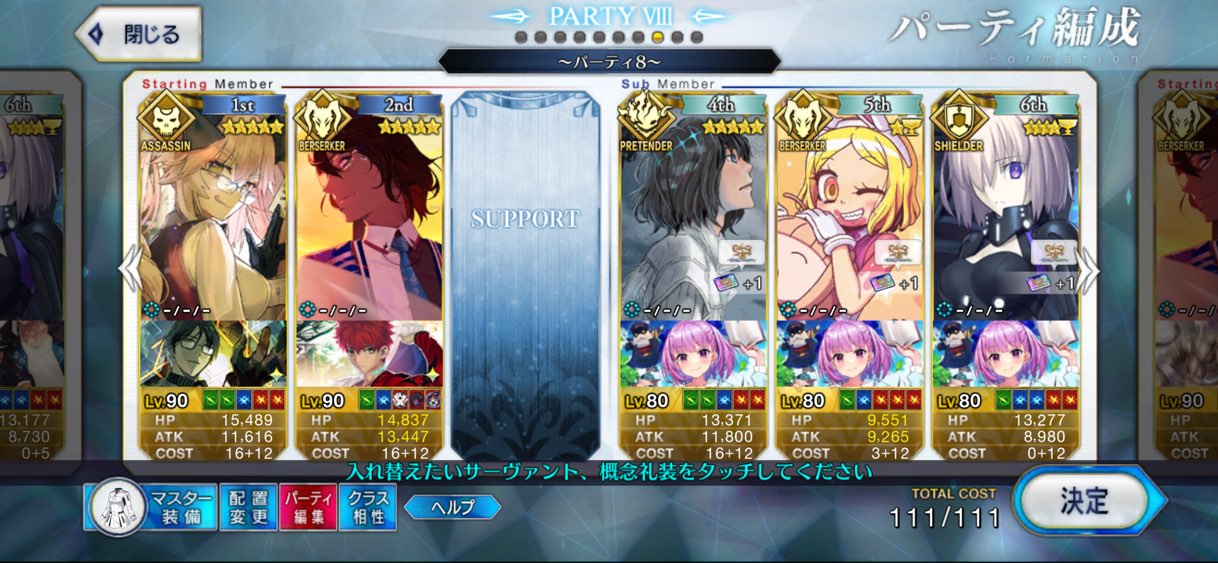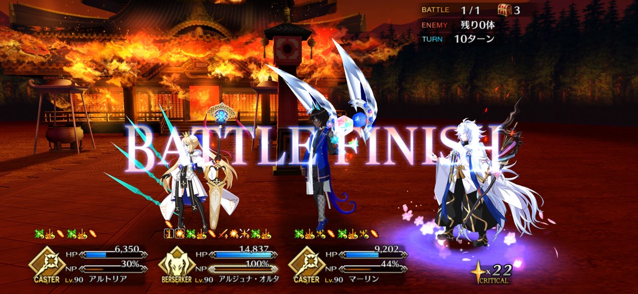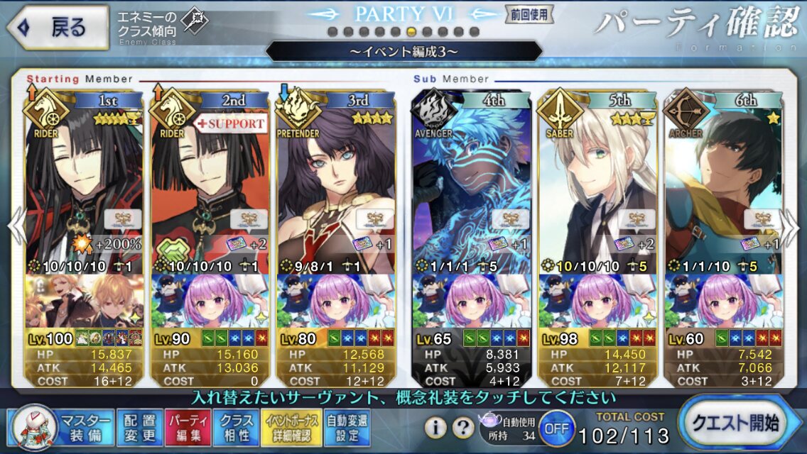 お疲れ様。これ、(特攻礼装含め)ガッツ礼装をどんだけ使うか、持たせる場合そのキャラだけで場を持ち堪えられるか否かで大分難易度変わるよね