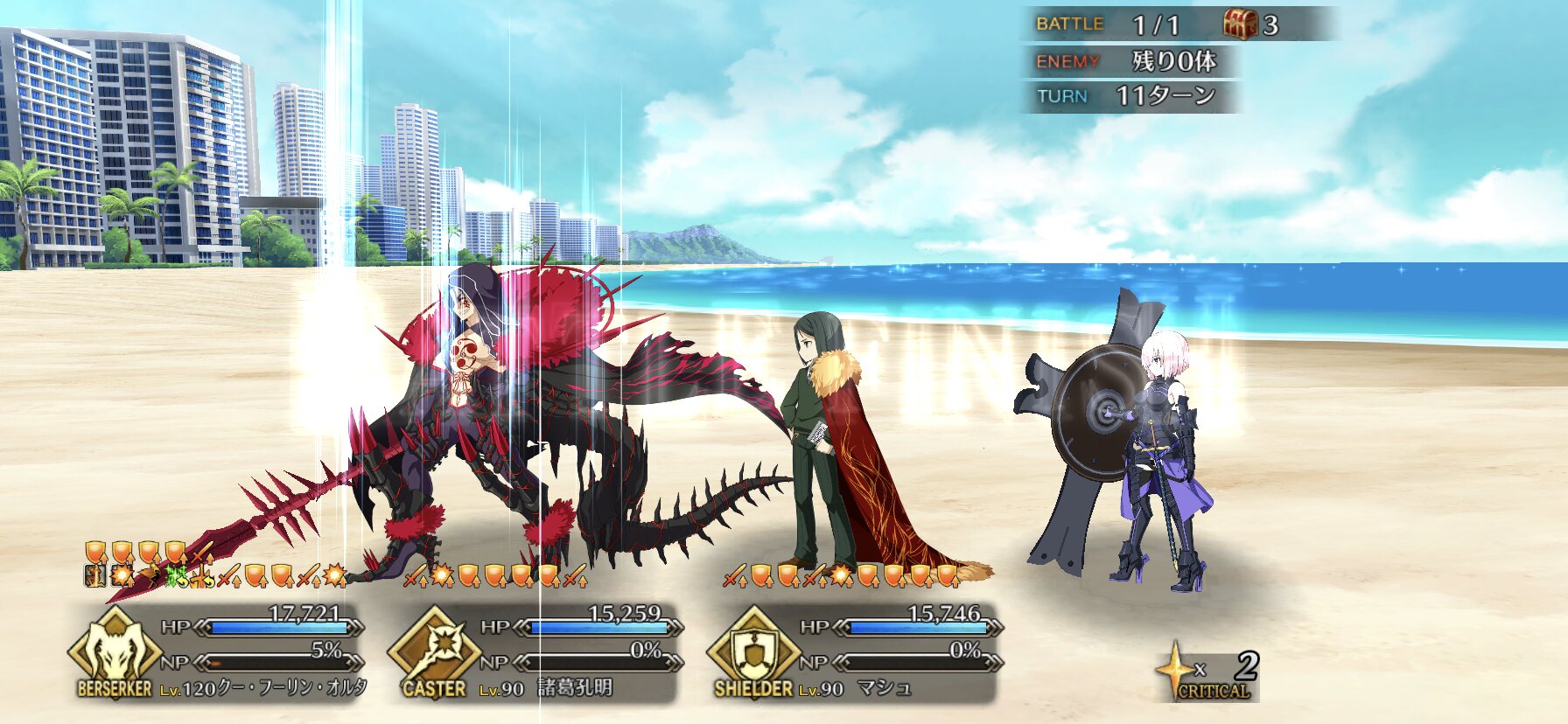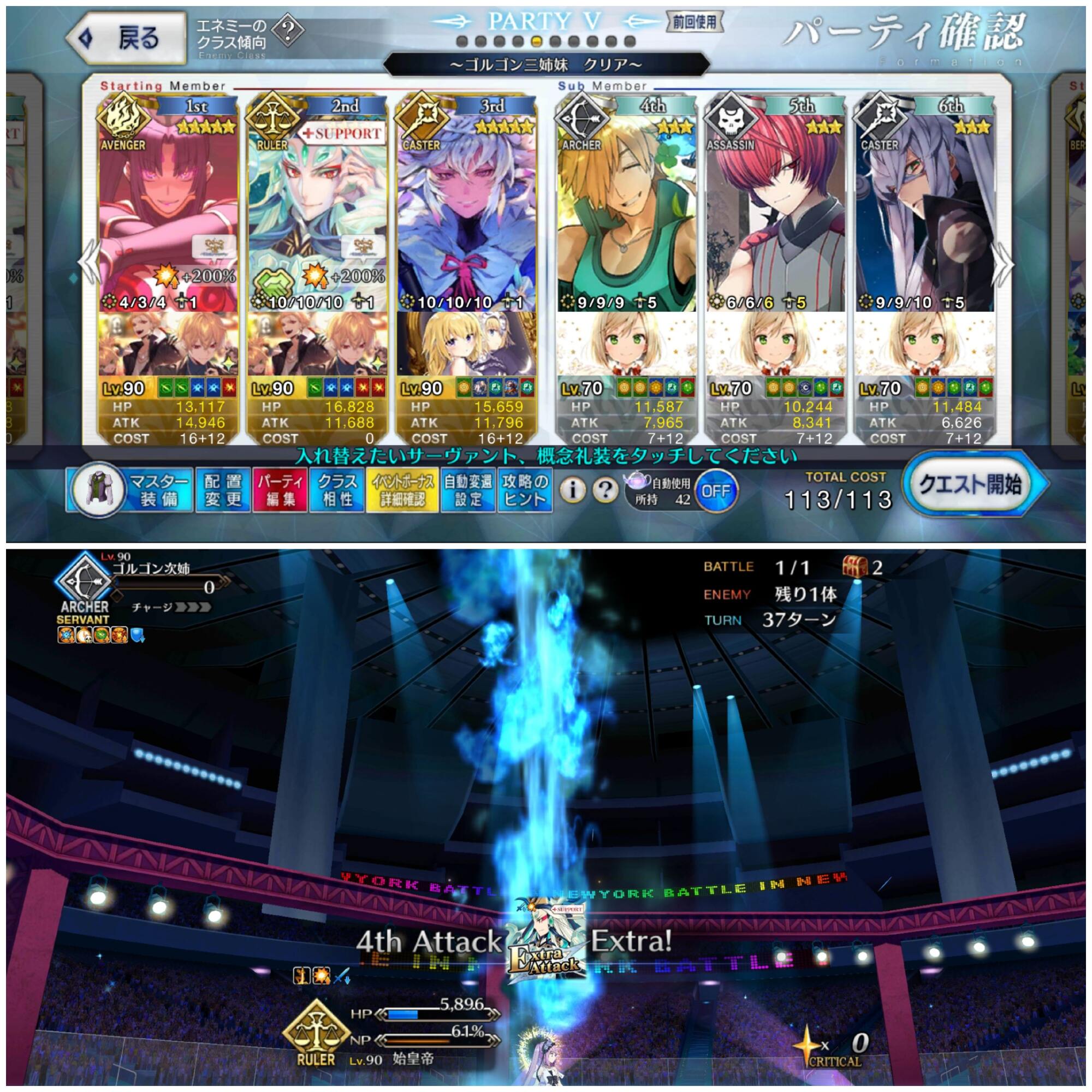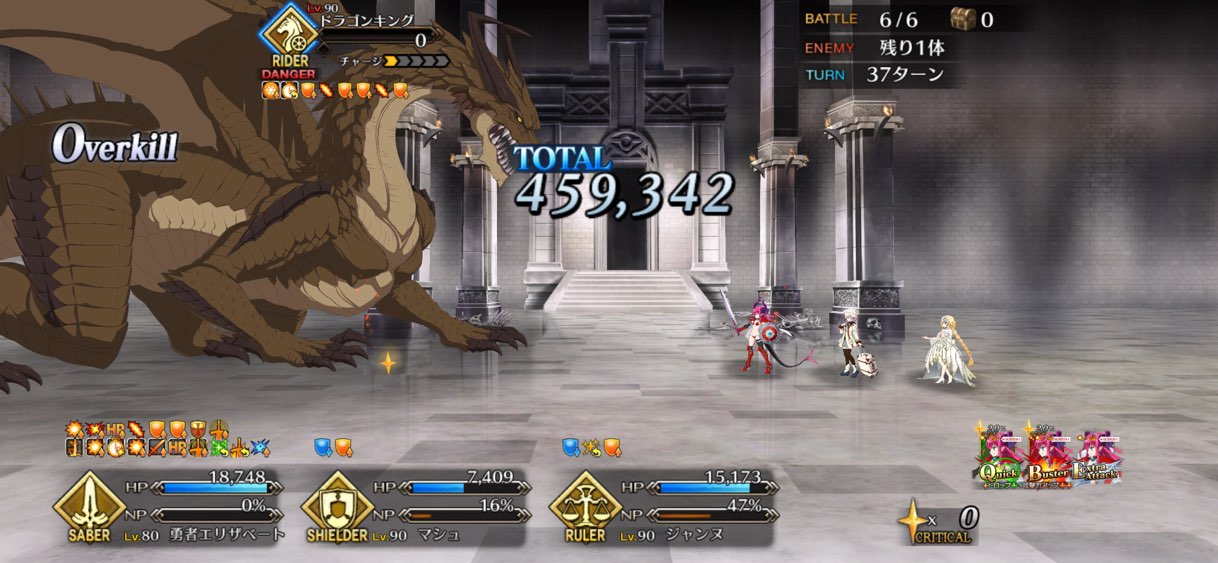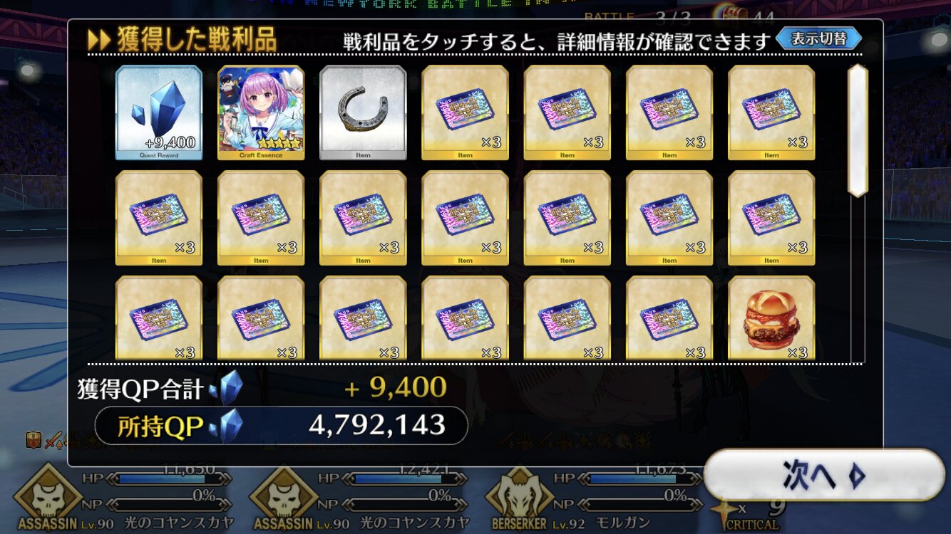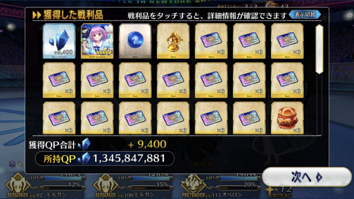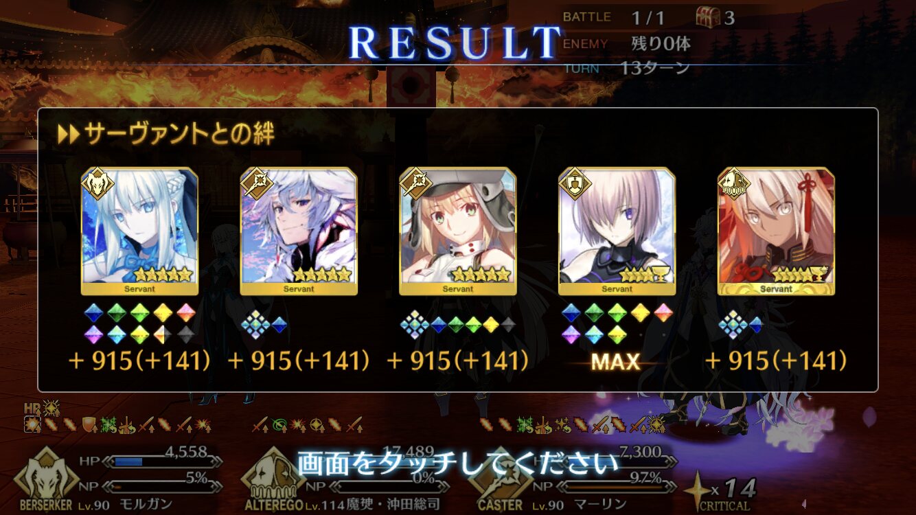 お疲れ様。これ、(特攻礼装含め)ガッツ礼装をどんだけ使うか、持たせる場合そのキャラだけで場を持ち堪えられるか否かで大分難易度変わるよね