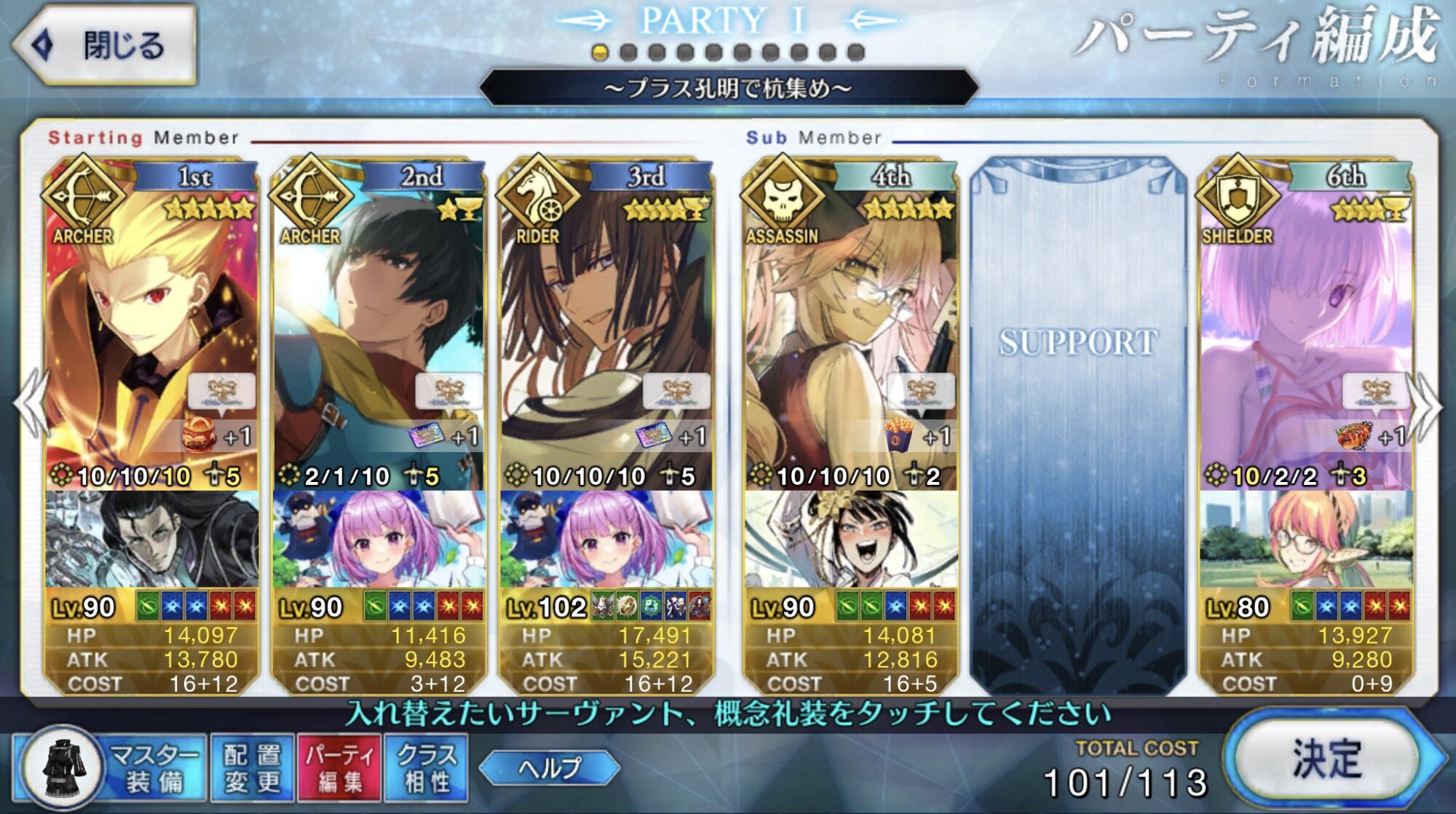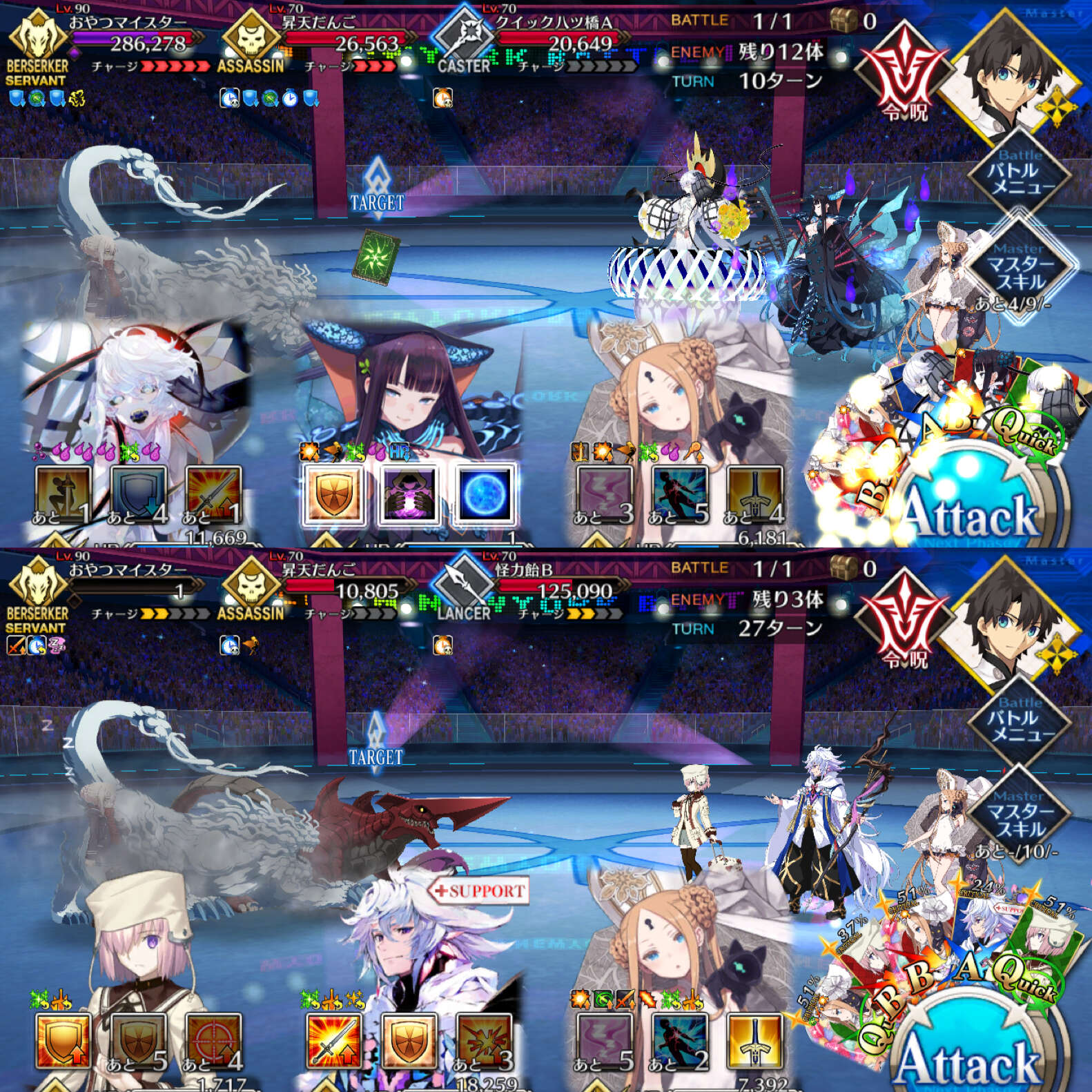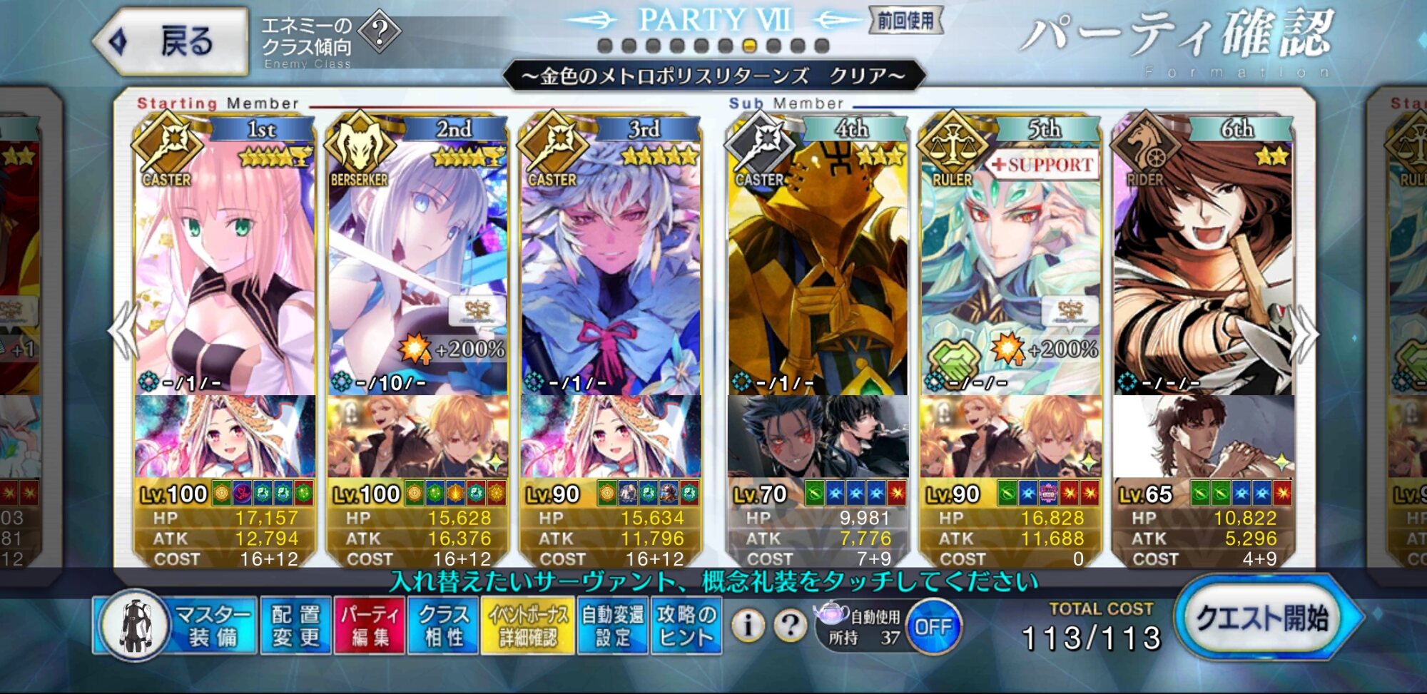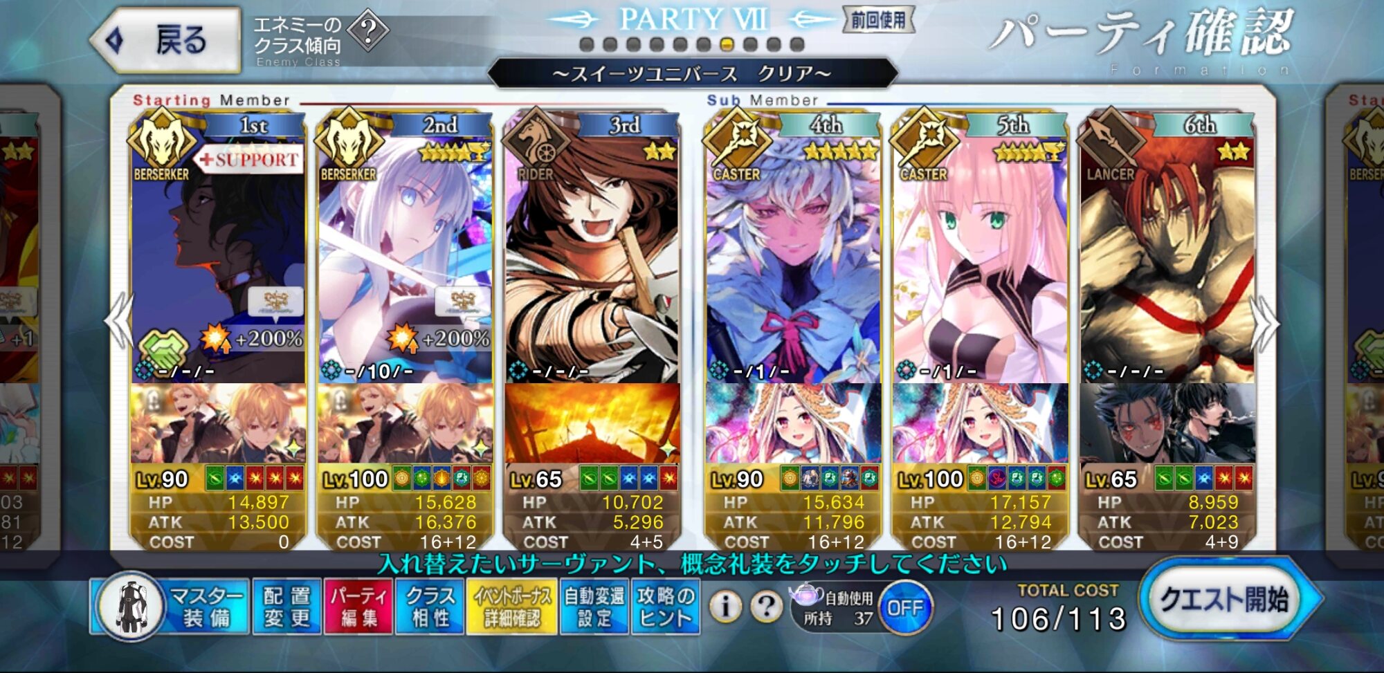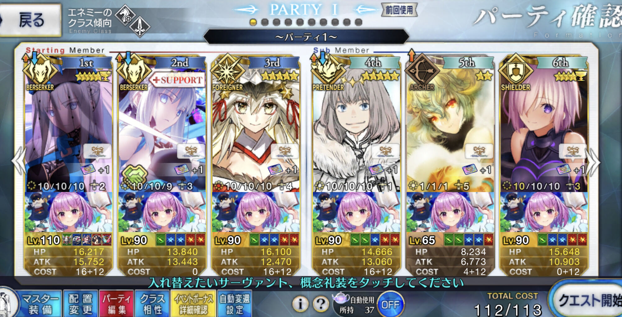 お疲れ様。これ、(特攻礼装含め)ガッツ礼装をどんだけ使うか、持たせる場合そのキャラだけで場を持ち堪えられるか否かで大分難易度変わるよね