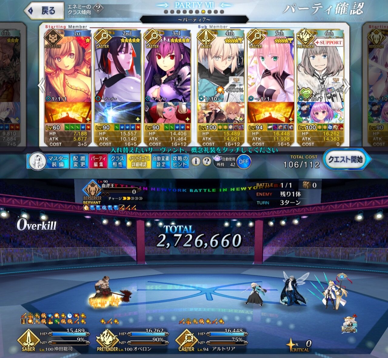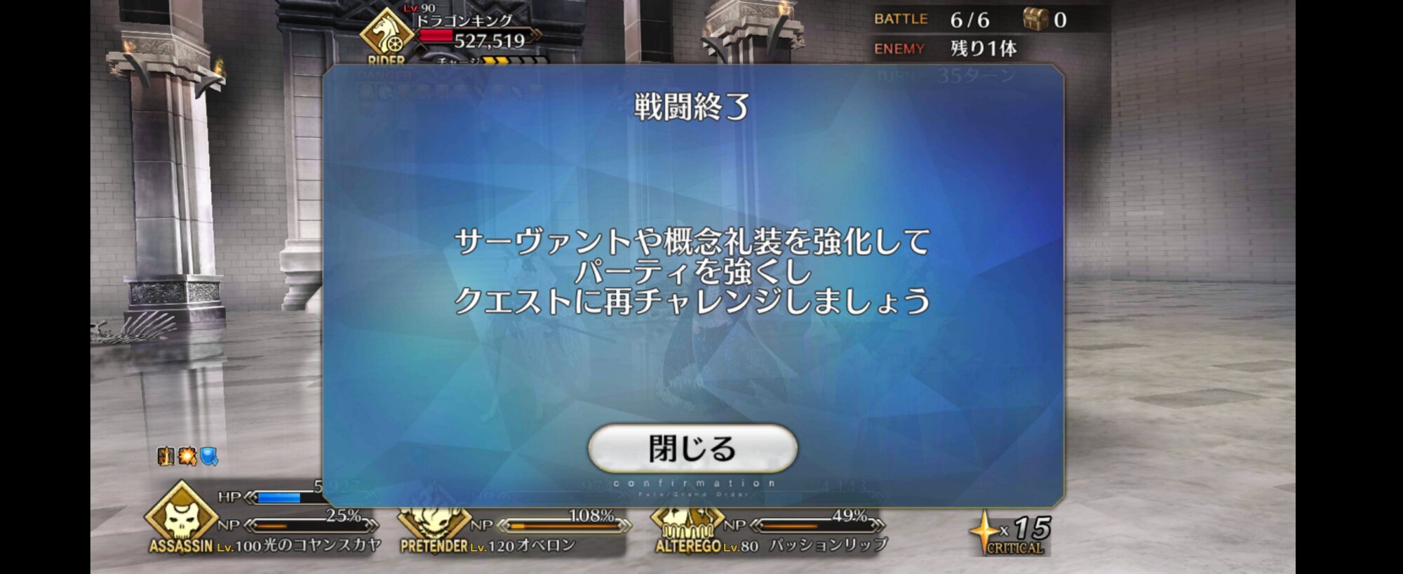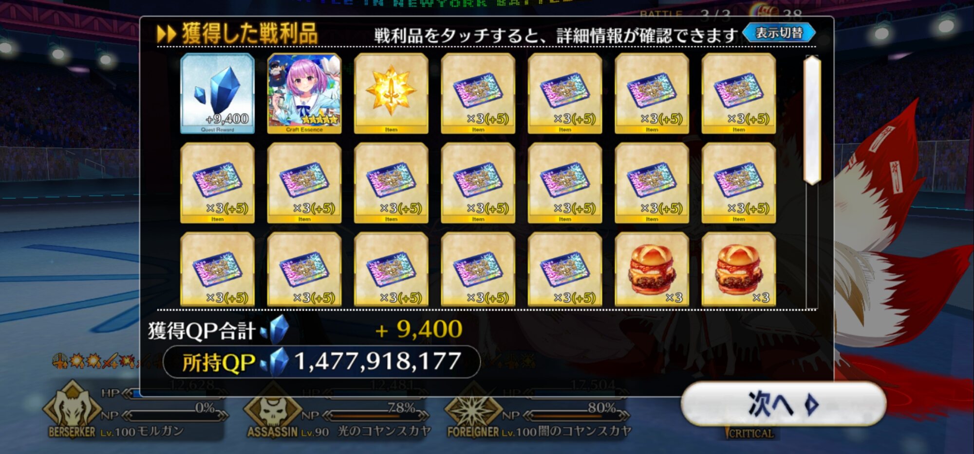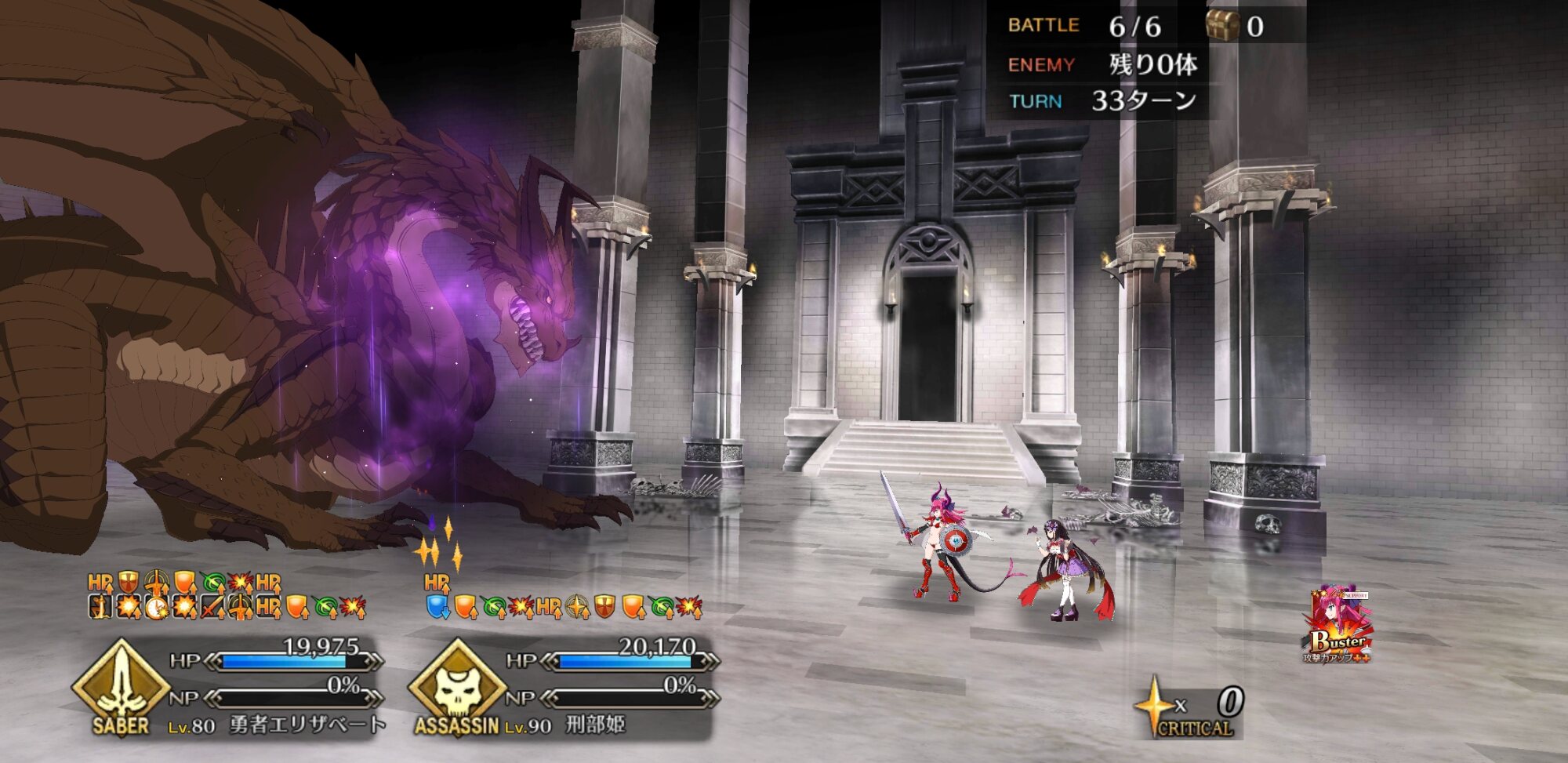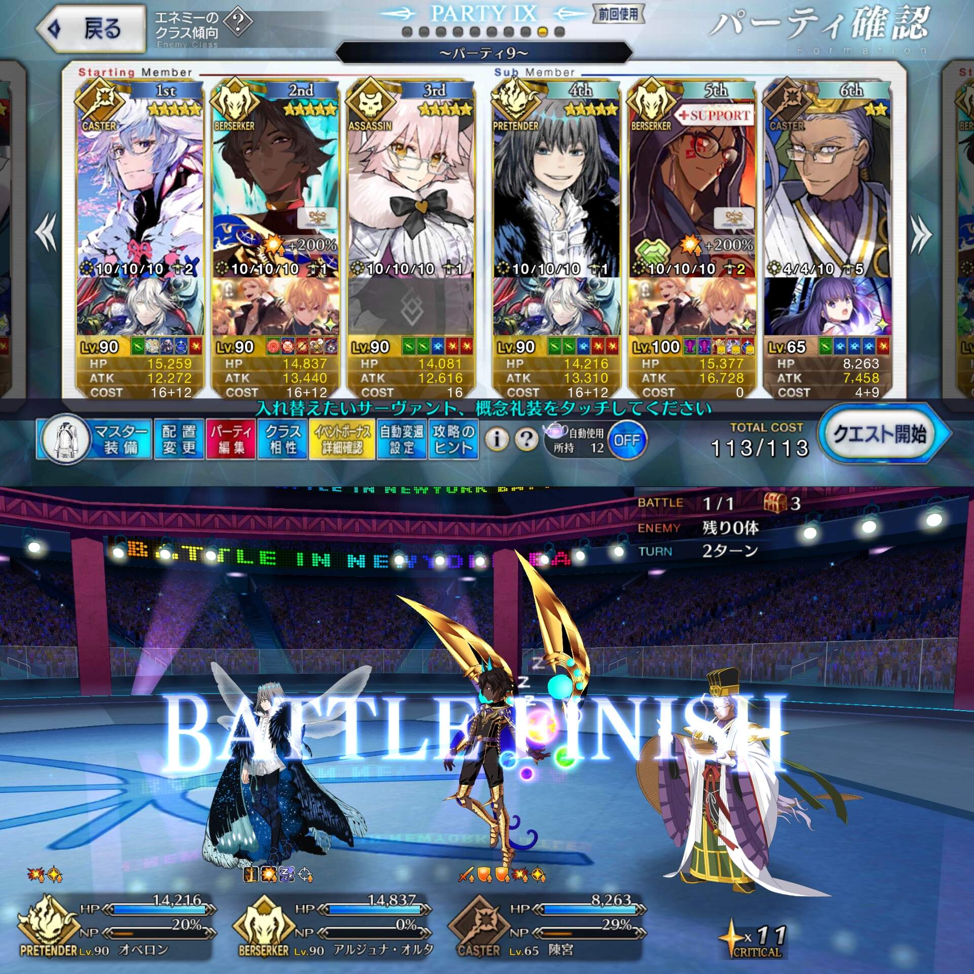お疲れ様。これ、(特攻礼装含め)ガッツ礼装をどんだけ使うか、持たせる場合そのキャラだけで場を持ち堪えられるか否かで大分難易度変わるよね