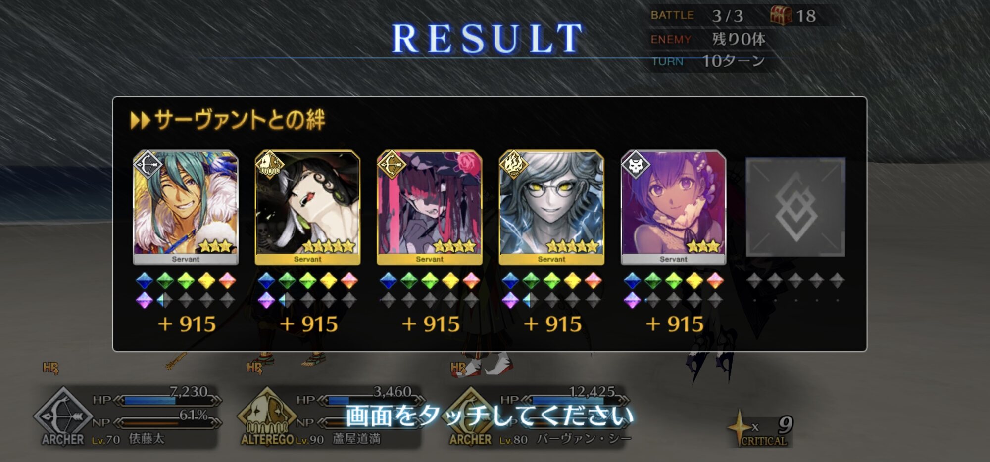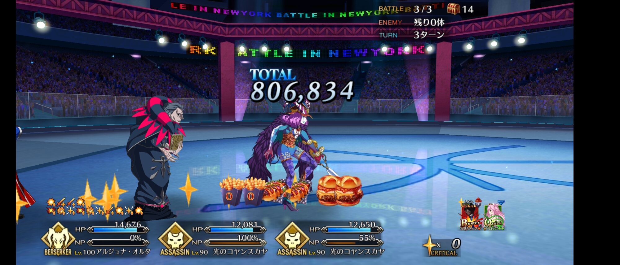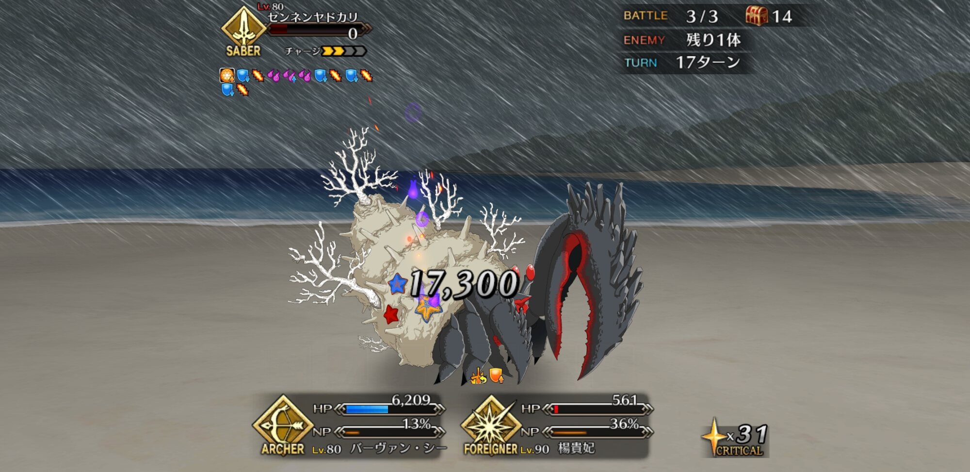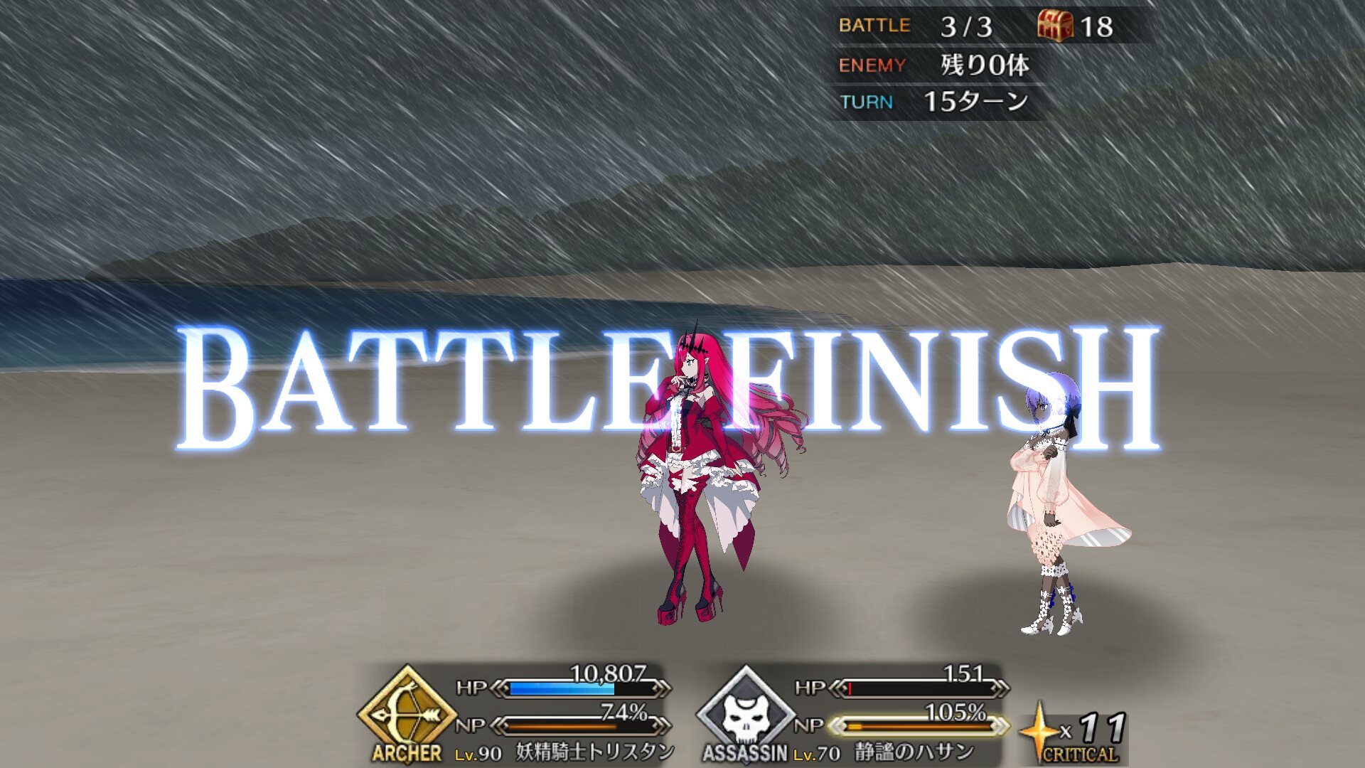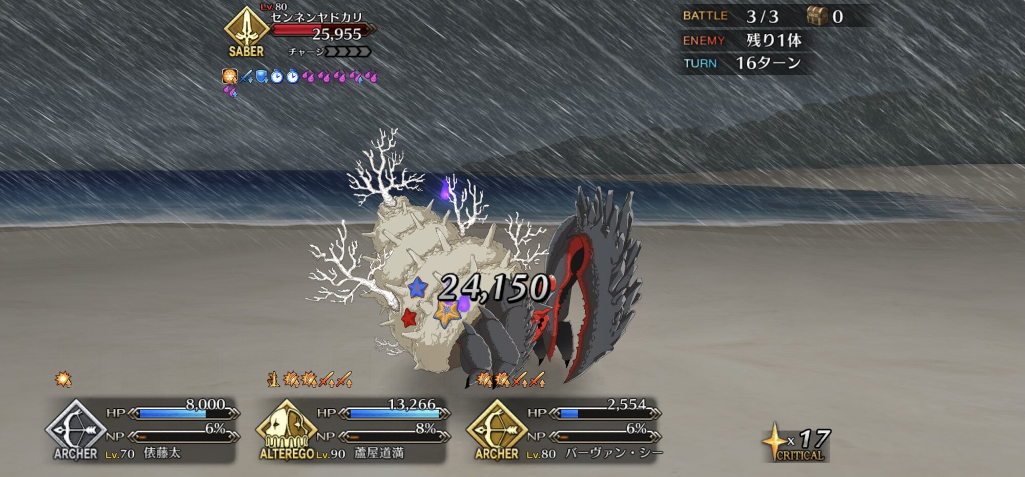 お疲れ様。これ、(特攻礼装含め)ガッツ礼装をどんだけ使うか、持たせる場合そのキャラだけで場を持ち堪えられるか否かで大分難易度変わるよね