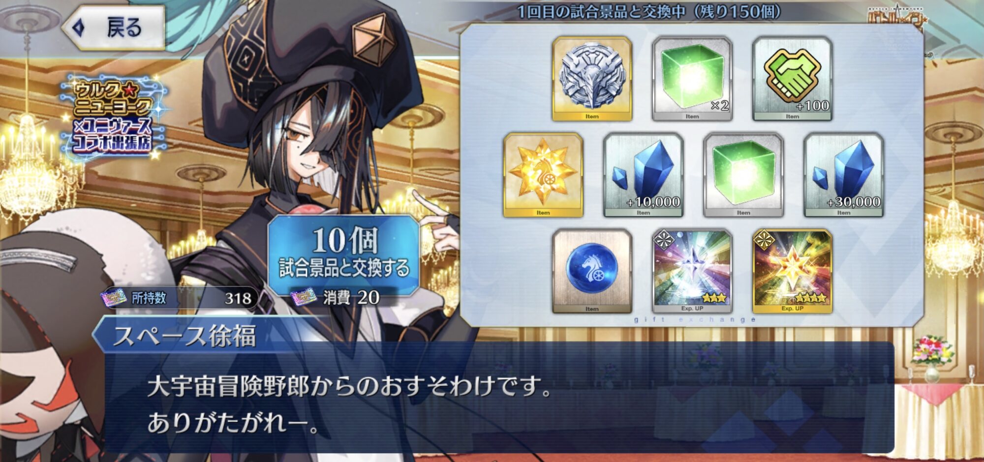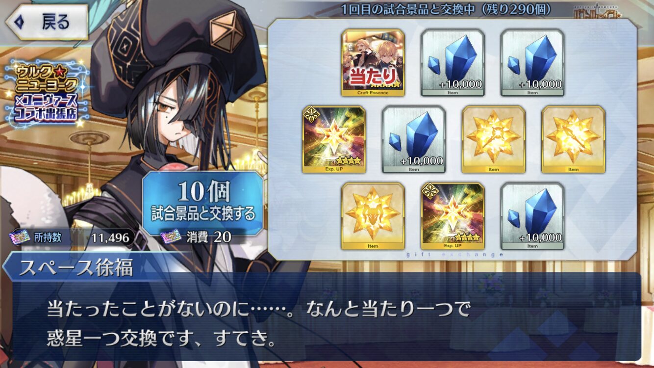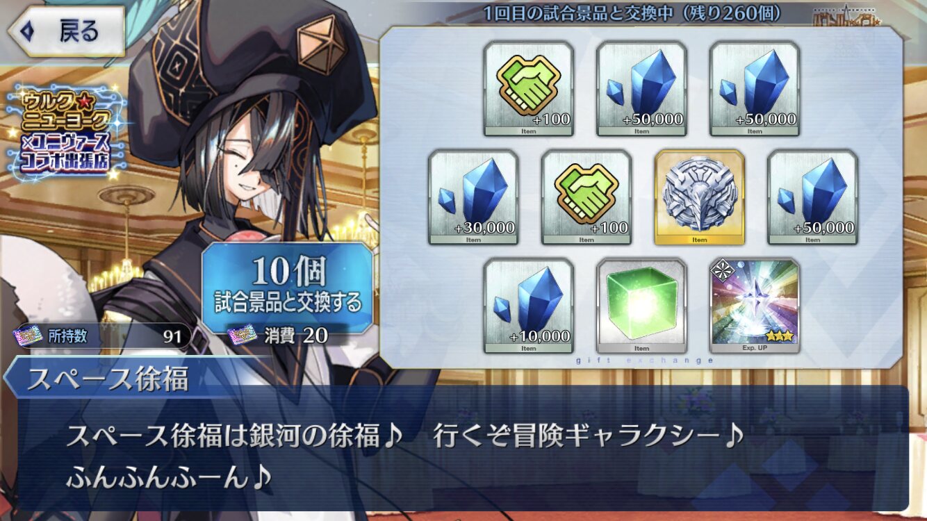 ……イヤ、でもやっぱスペース・オデュッセウスってなんだよ…ワケわかんねぇ…。テスラ持っていないから概念礼装コンプの流れで狙ってみようと思った。