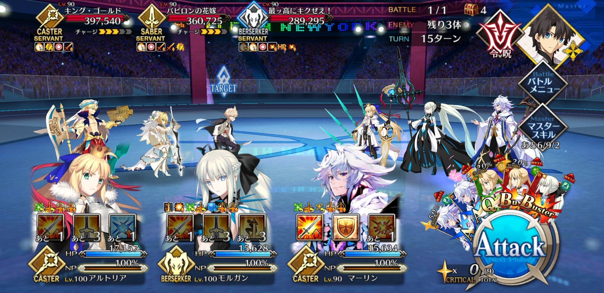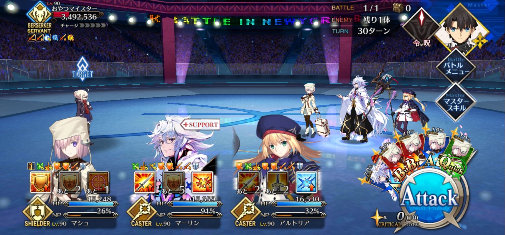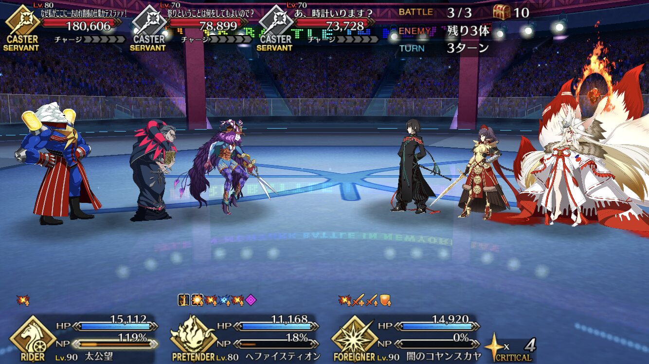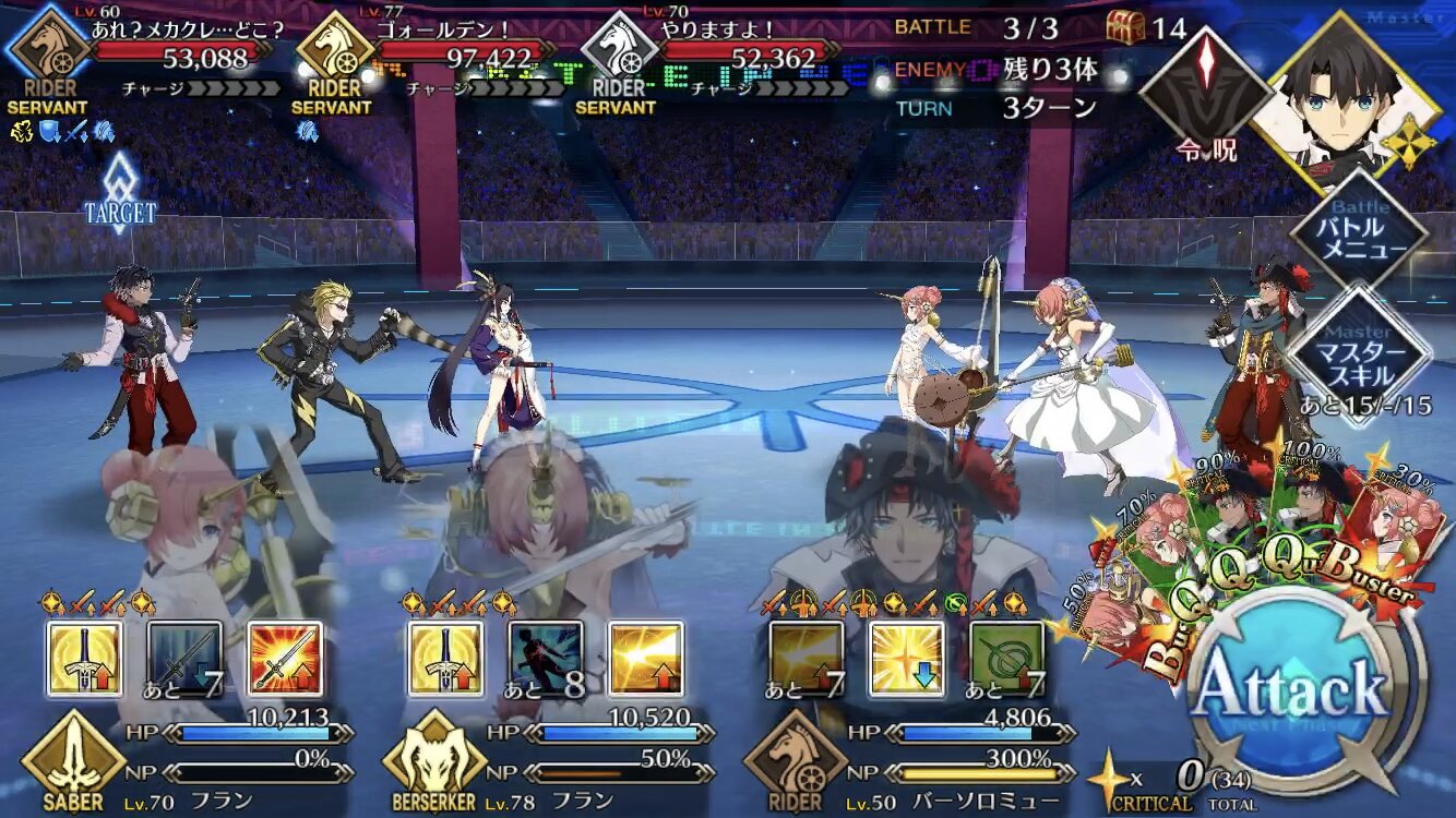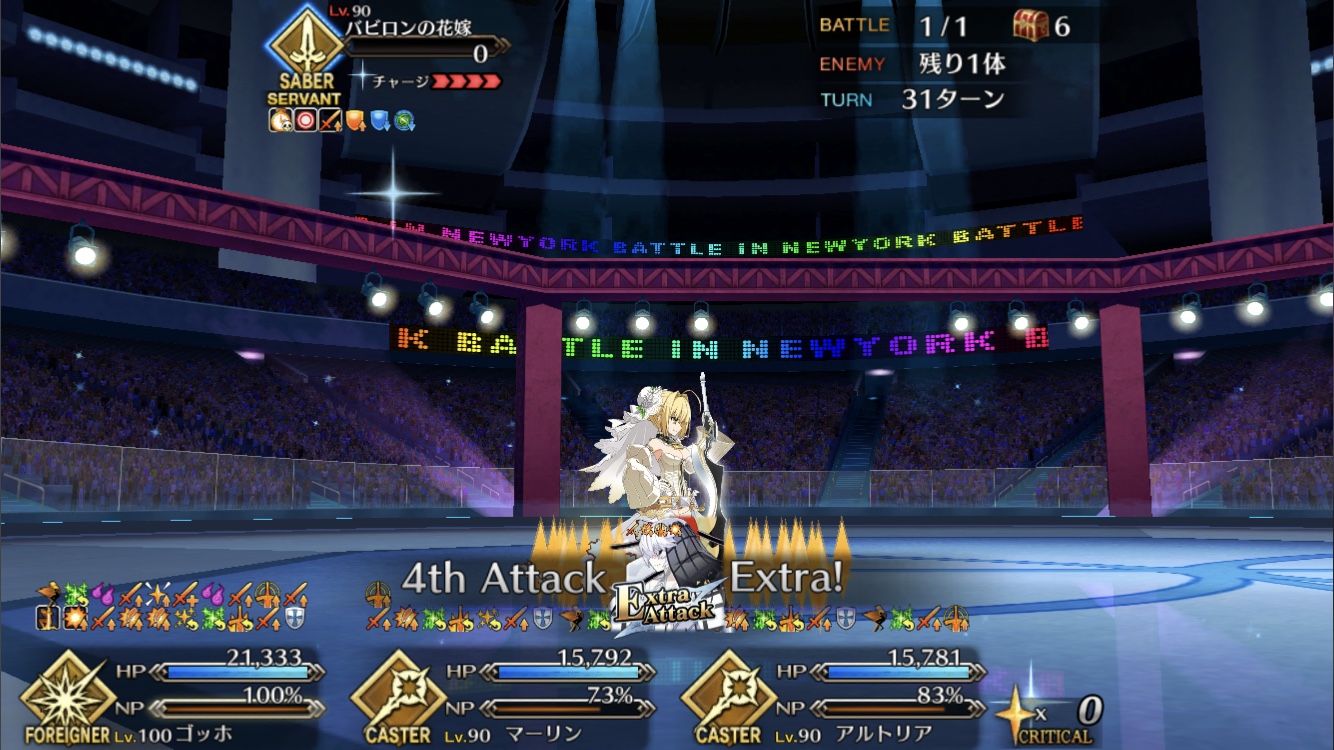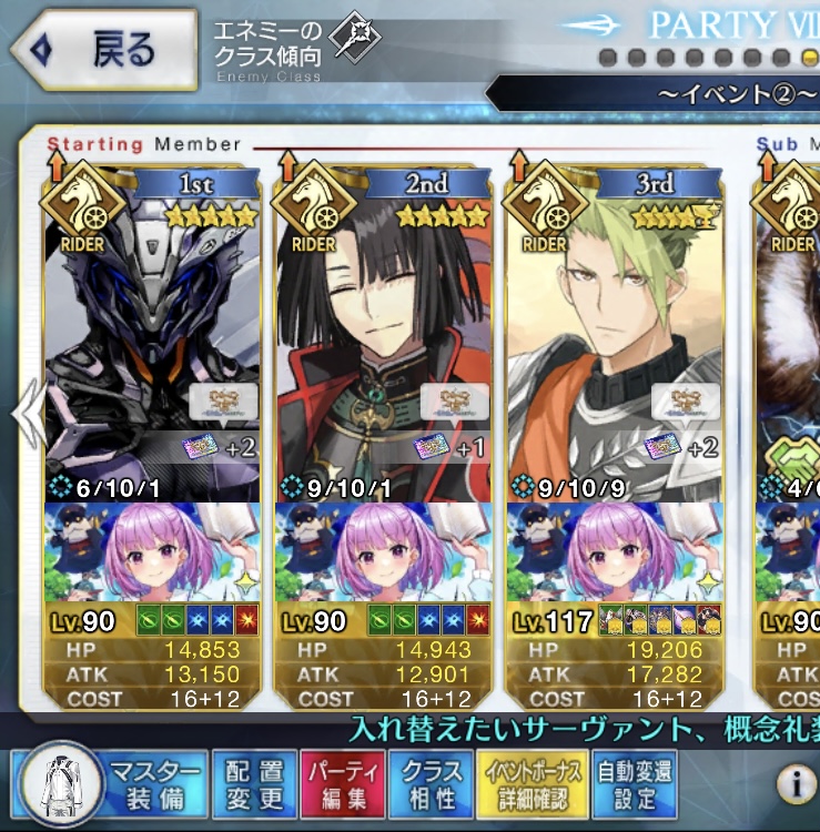 今回の前衛は皆ガッツ(歴代のボックスイベの特攻礼装)だったので、いつも以上にNP回りを気にしながらプレイする必要がありました。