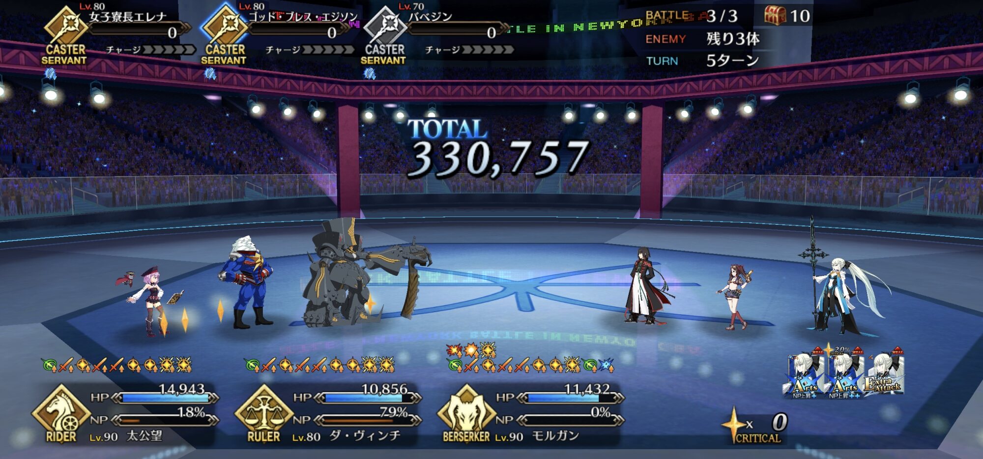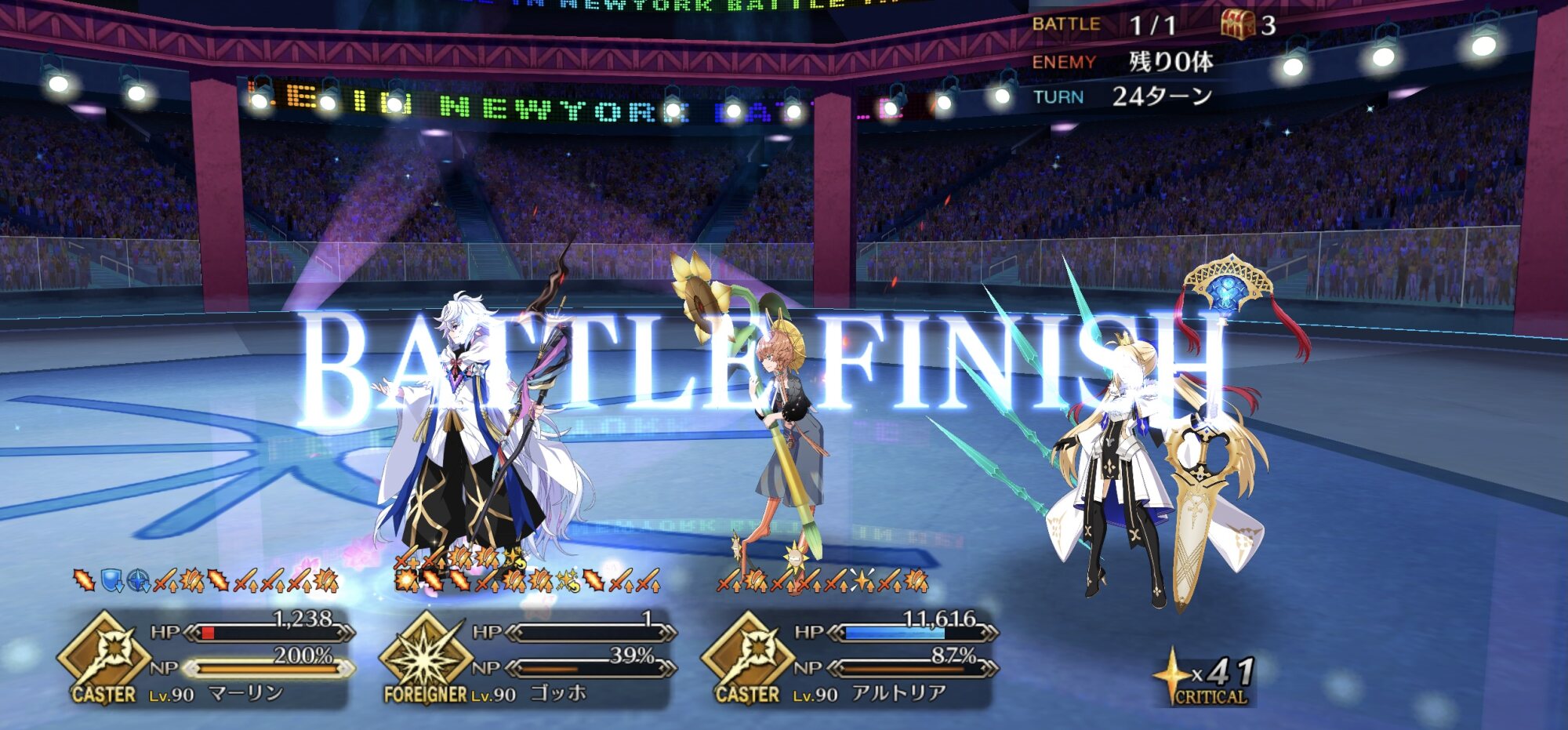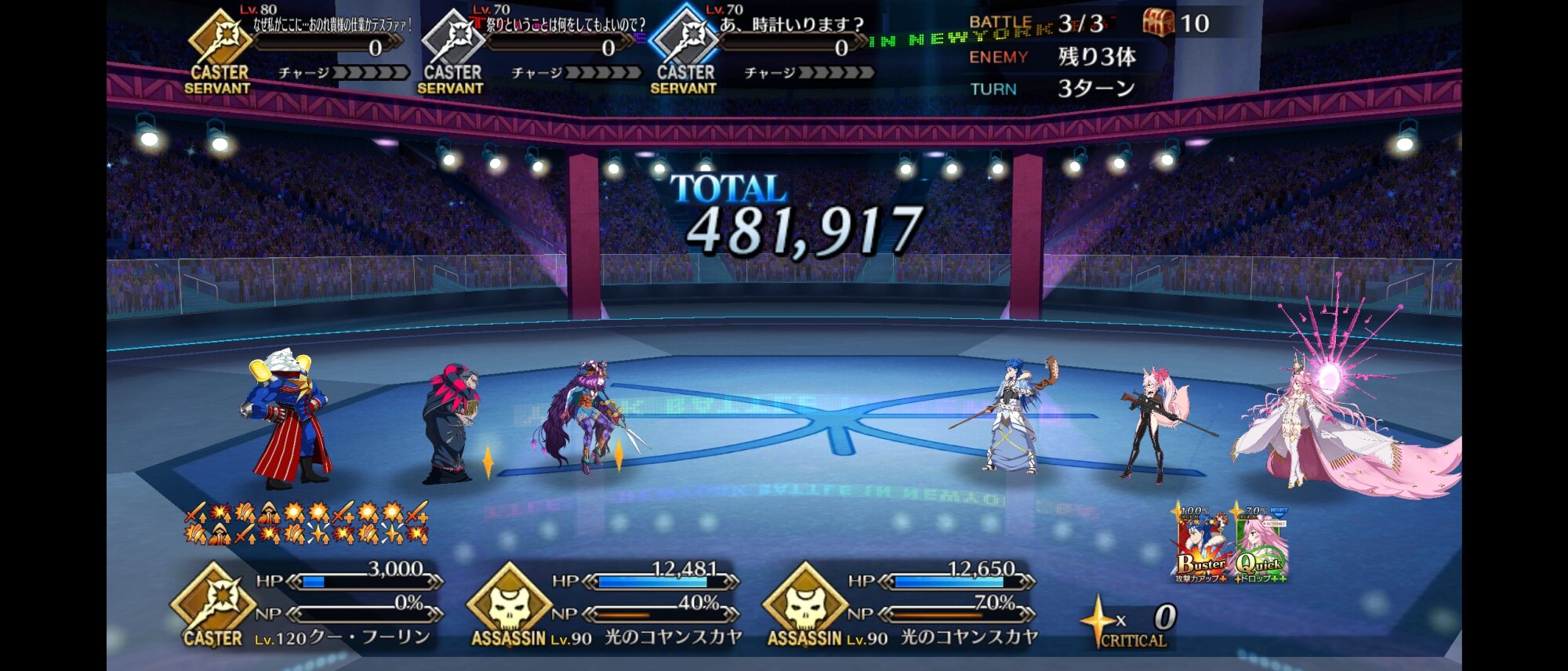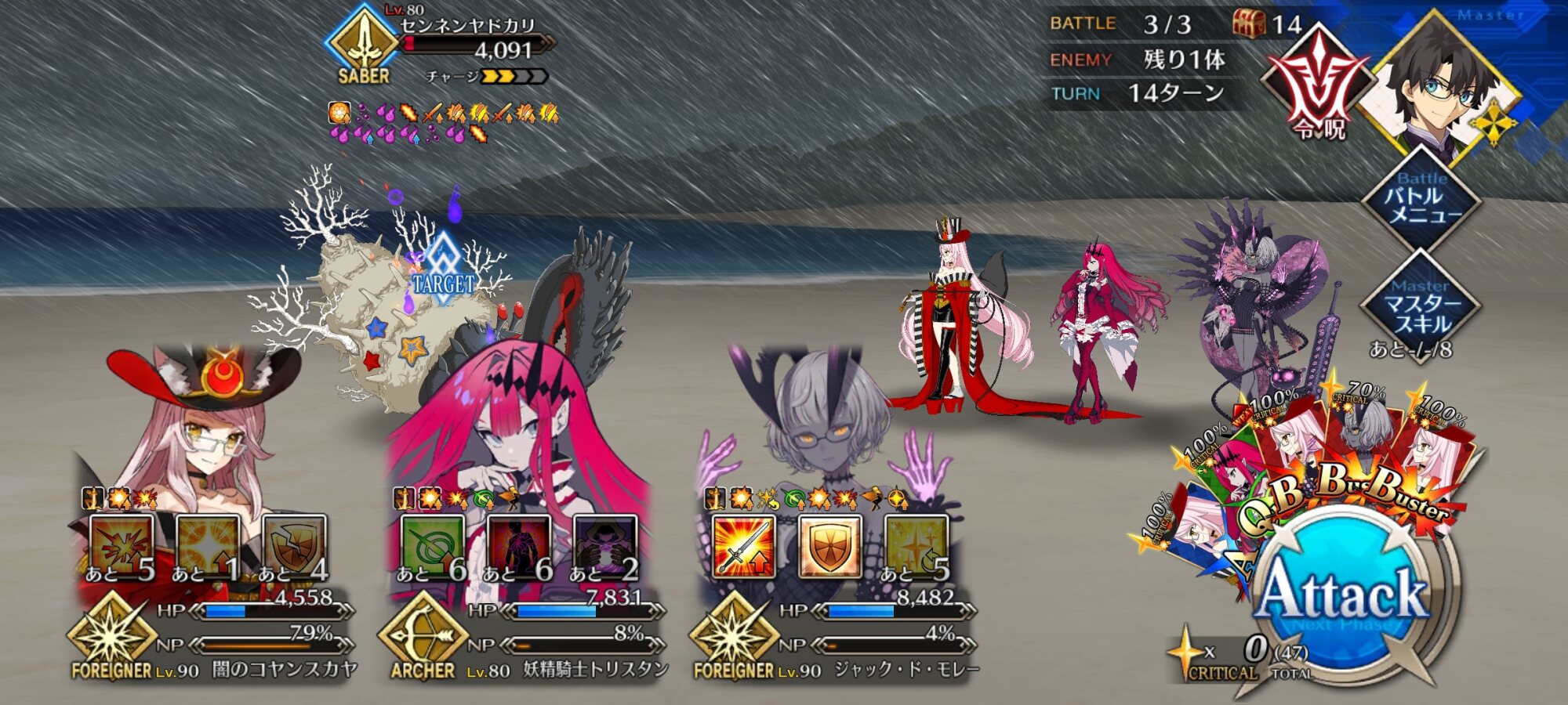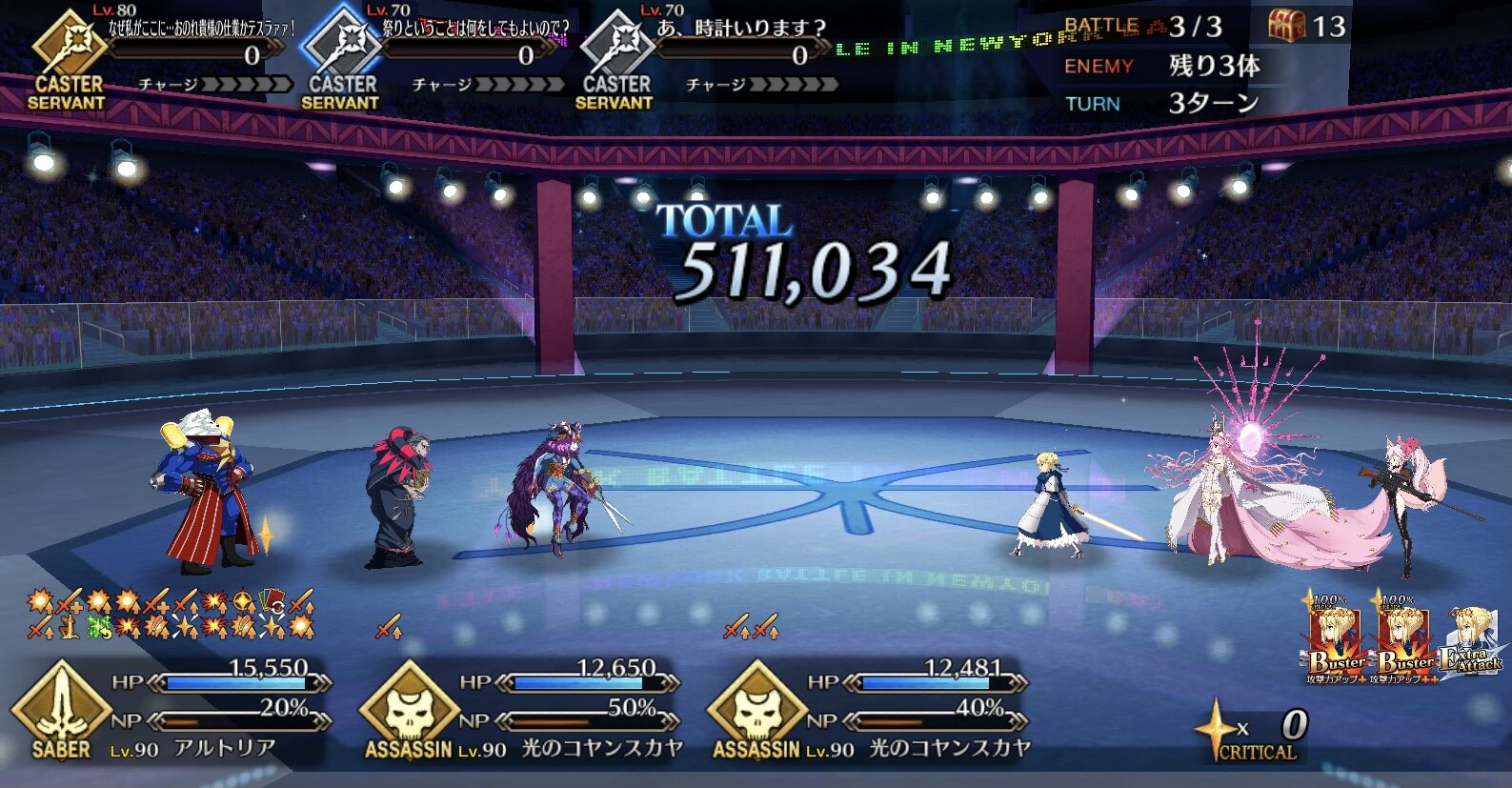 今回の前衛は皆ガッツ(歴代のボックスイベの特攻礼装)だったので、いつも以上にNP回りを気にしながらプレイする必要がありました。