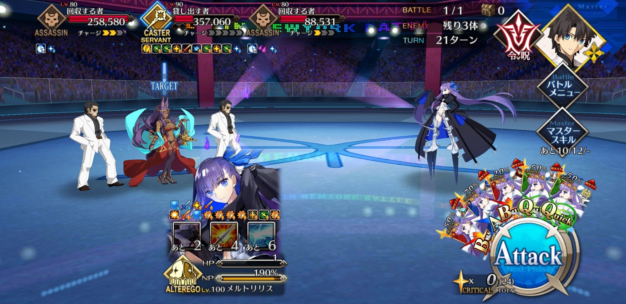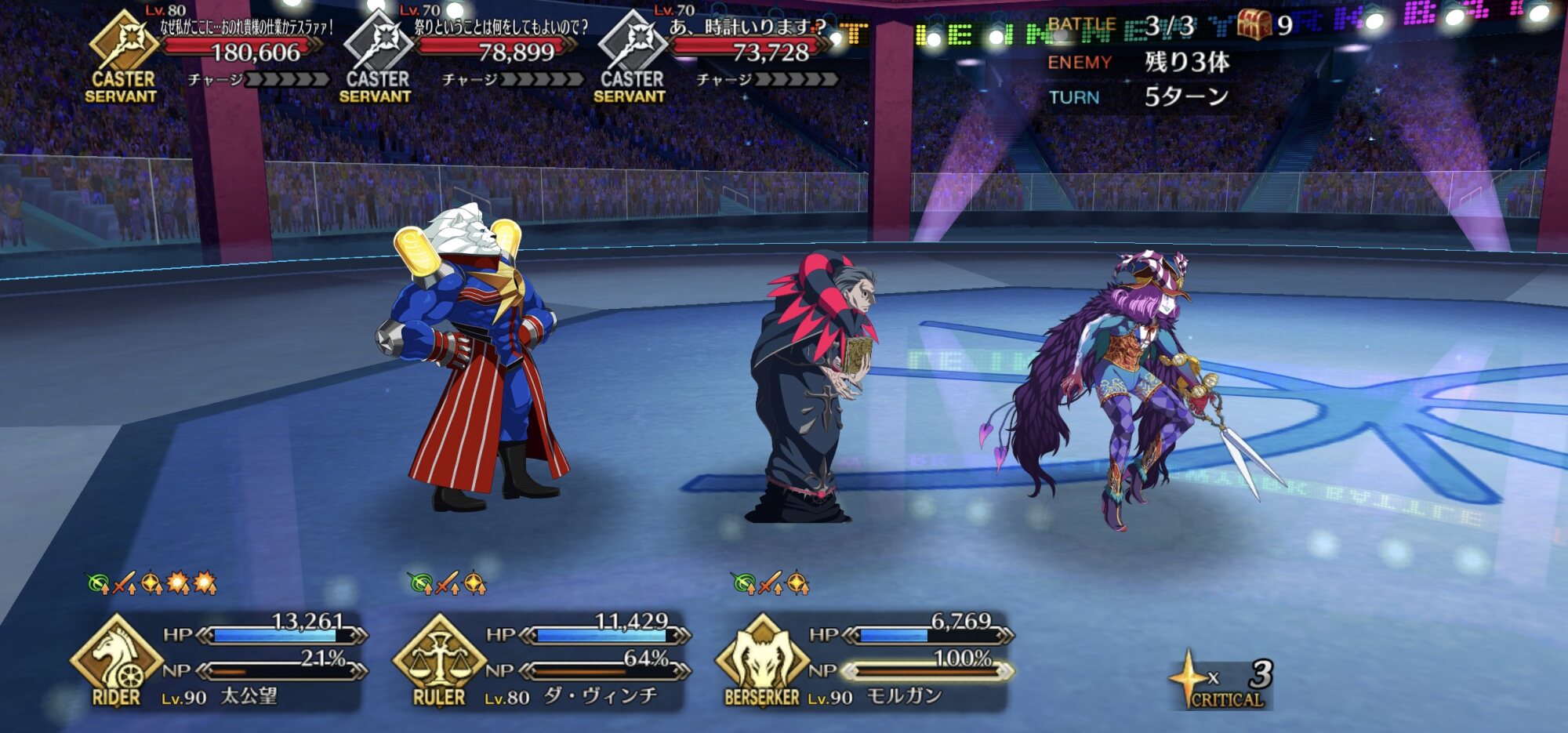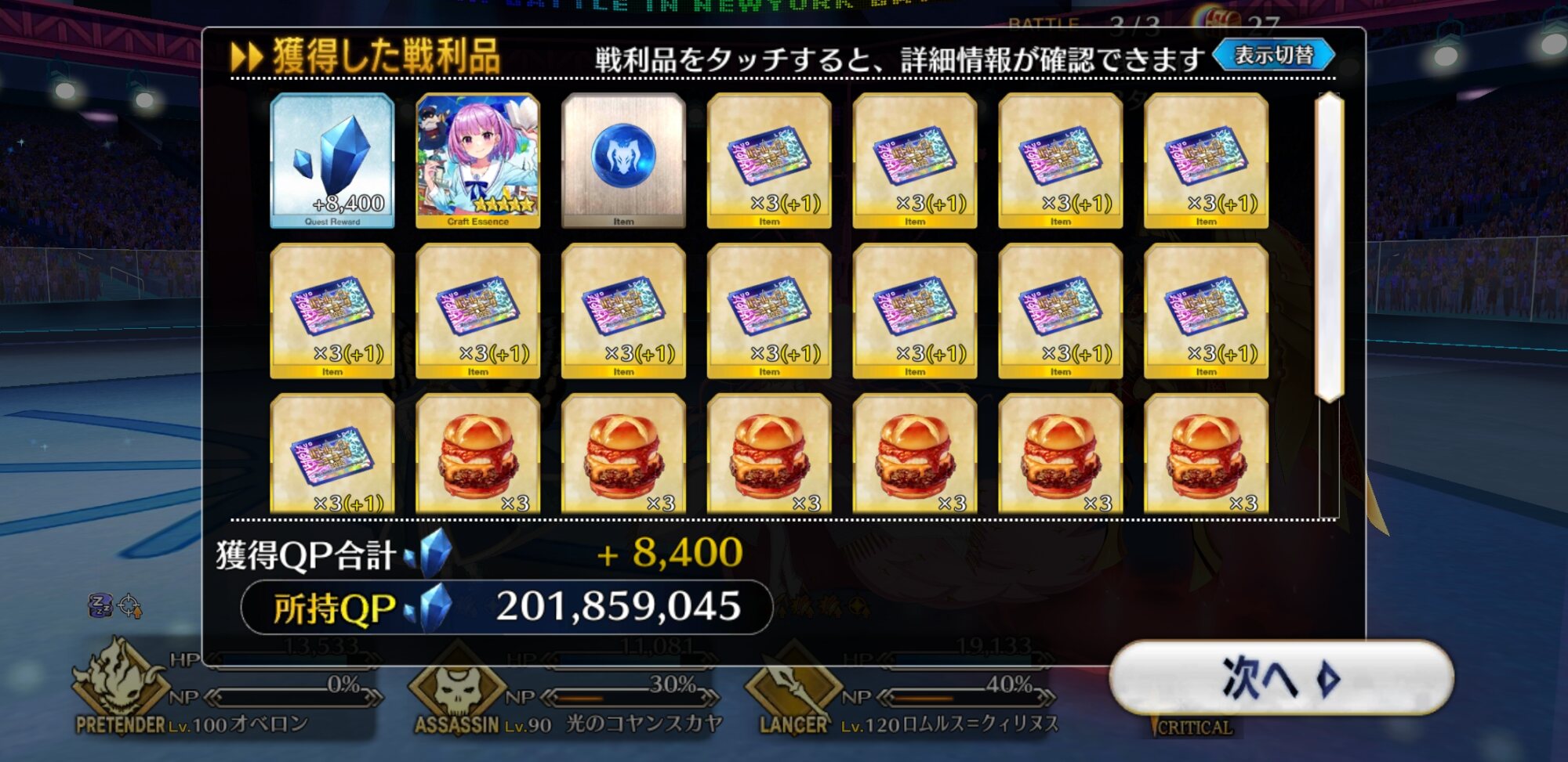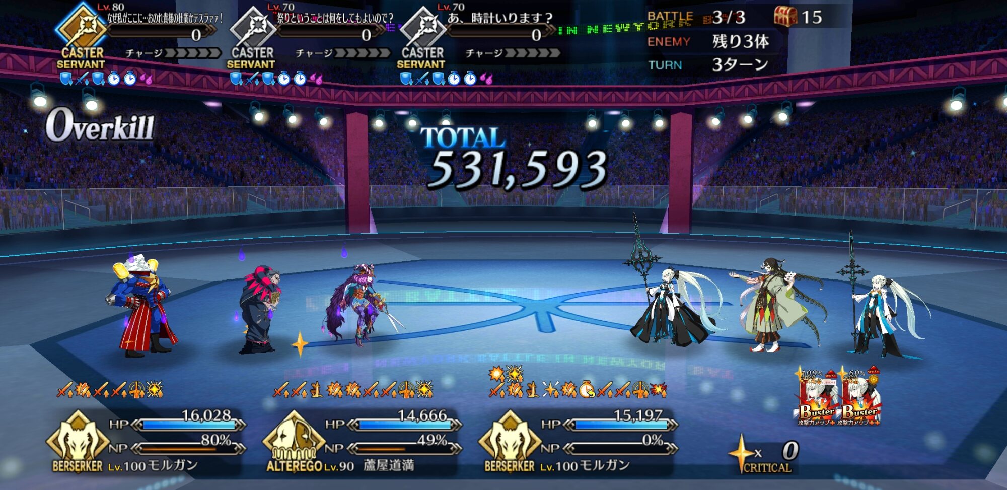 今回の前衛は皆ガッツ(歴代のボックスイベの特攻礼装)だったので、いつも以上にNP回りを気にしながらプレイする必要がありました。