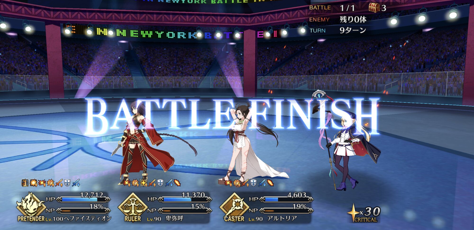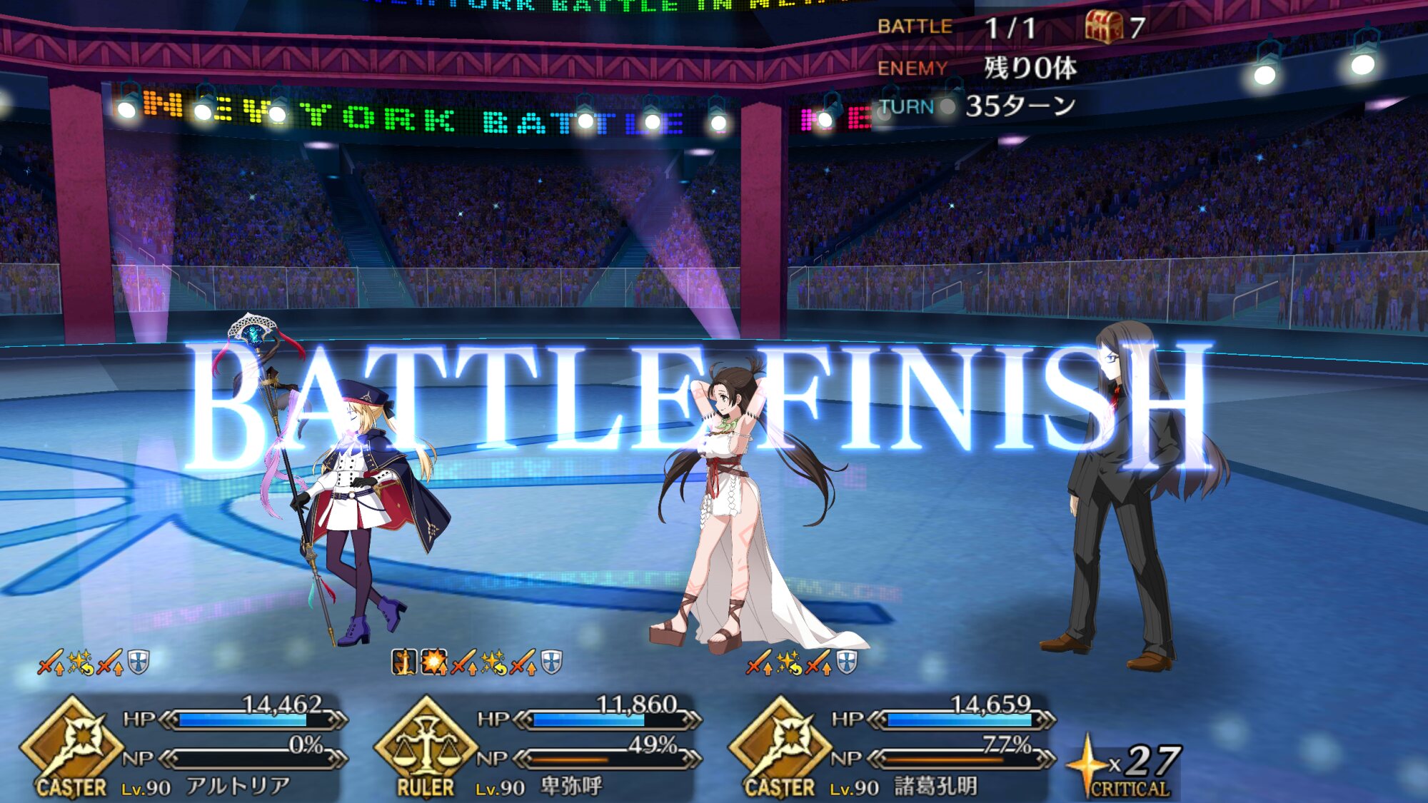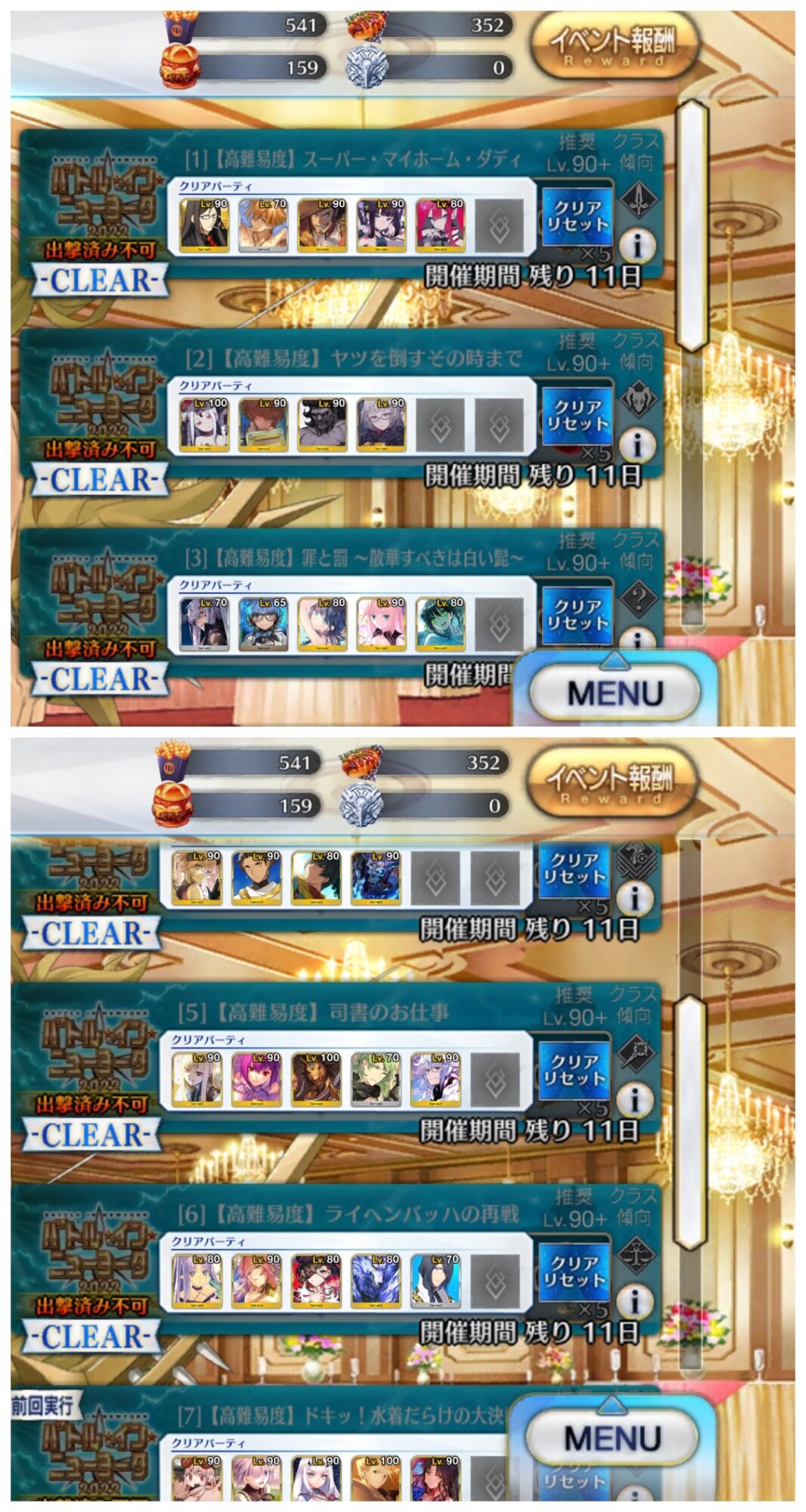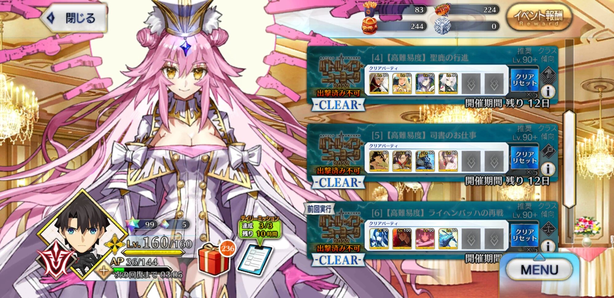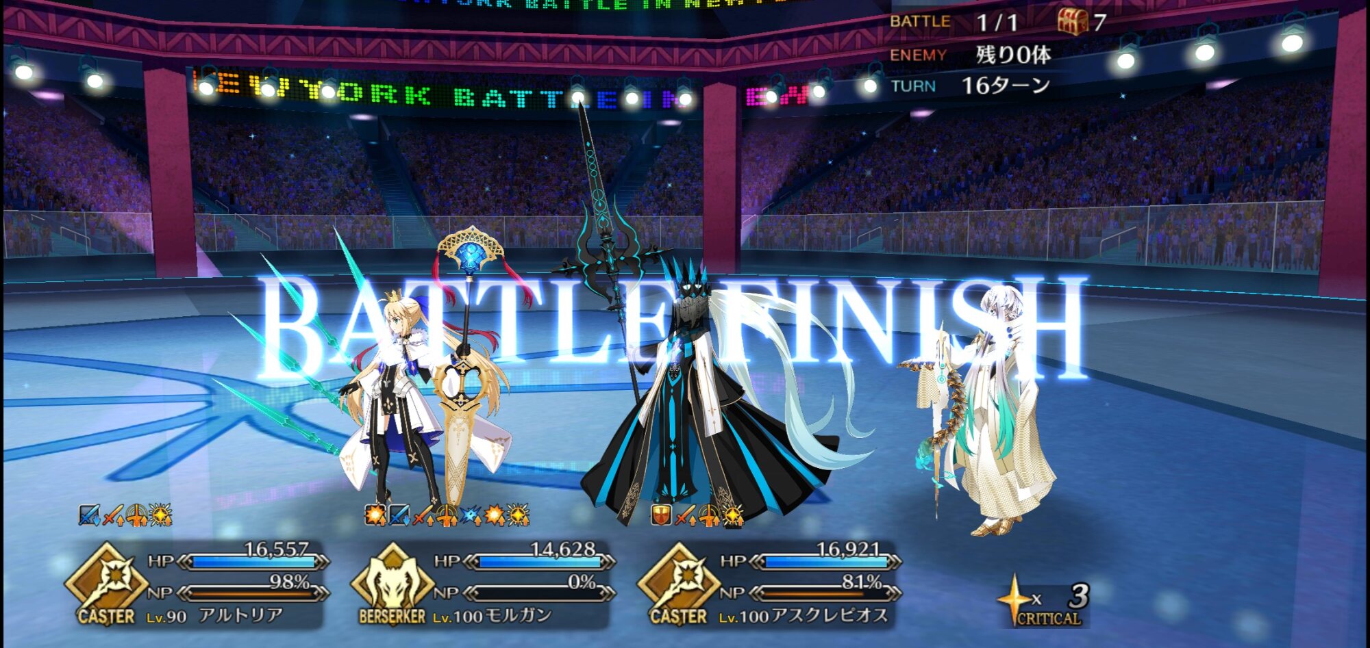 メインアタッカーに魔王ノッブ、サポート兼盾役に始皇帝、控えに道満で三姉妹クリア。性別不明も割と増えたなあ