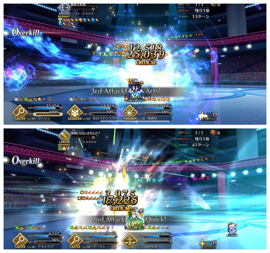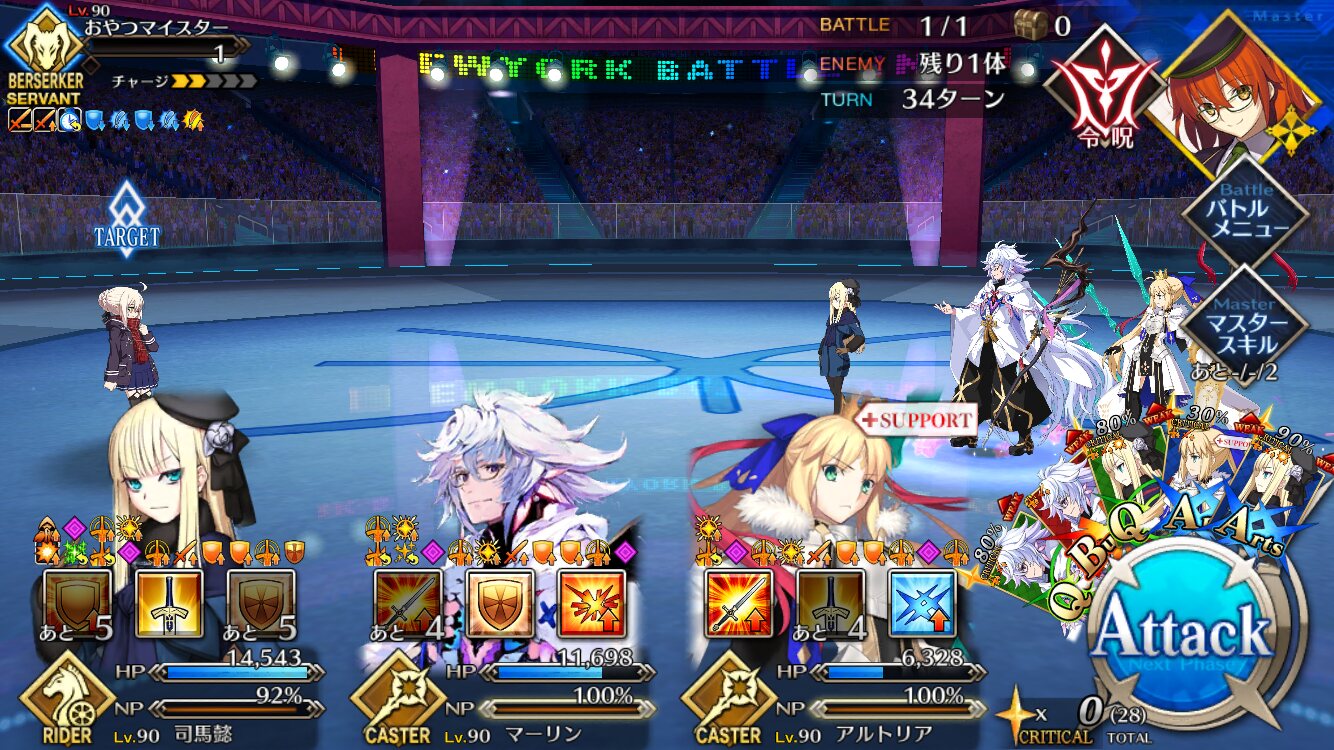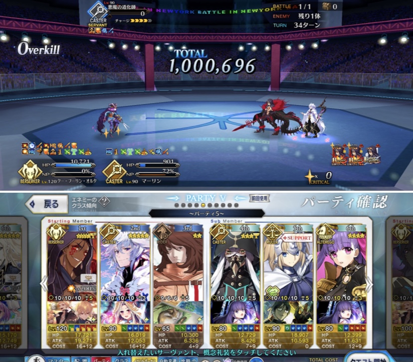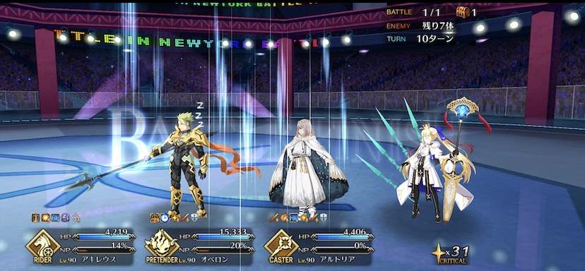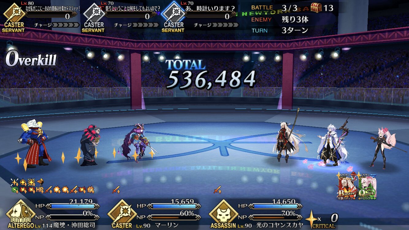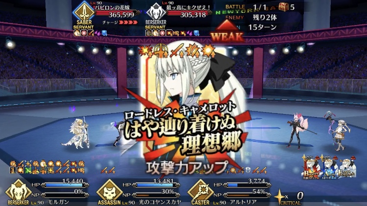 キャストリアの宝具もOC上げると回数もあがるから、前回の時よりかはタイマン時においての耐久性が上がりそう。マーリンのリジェネも含めて。