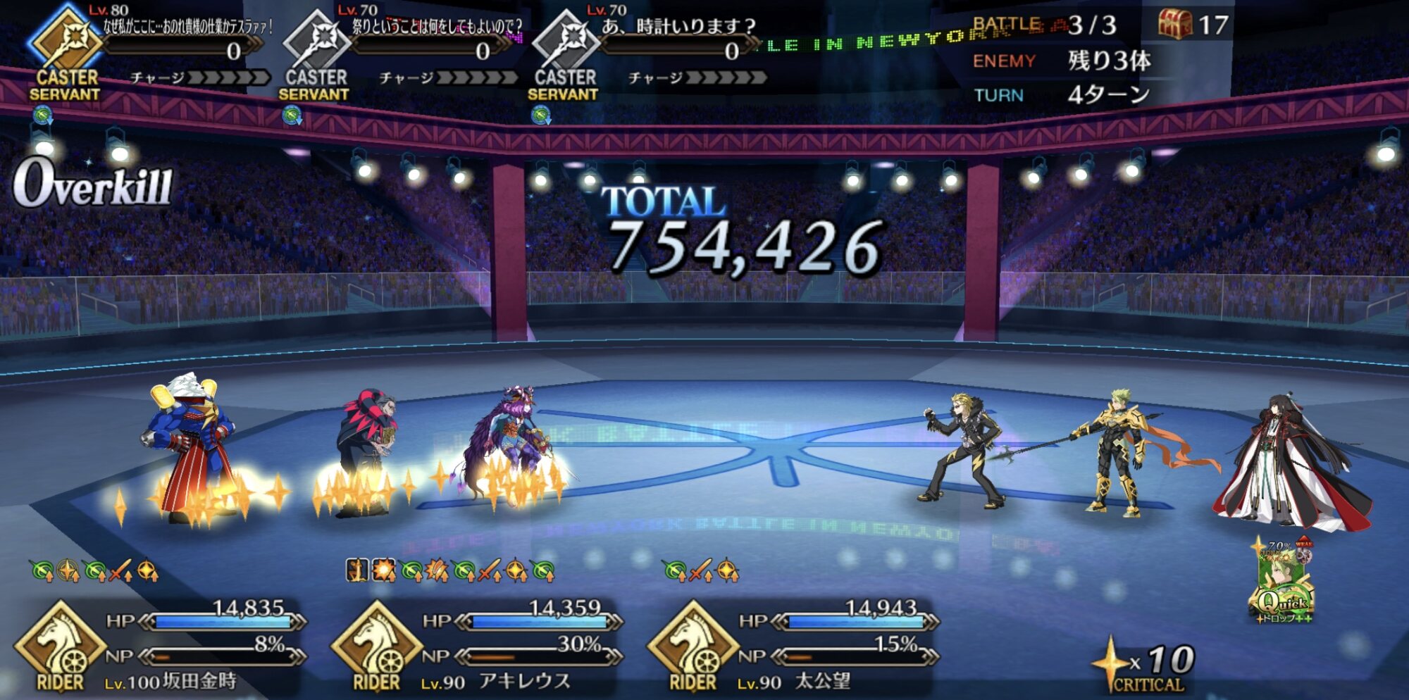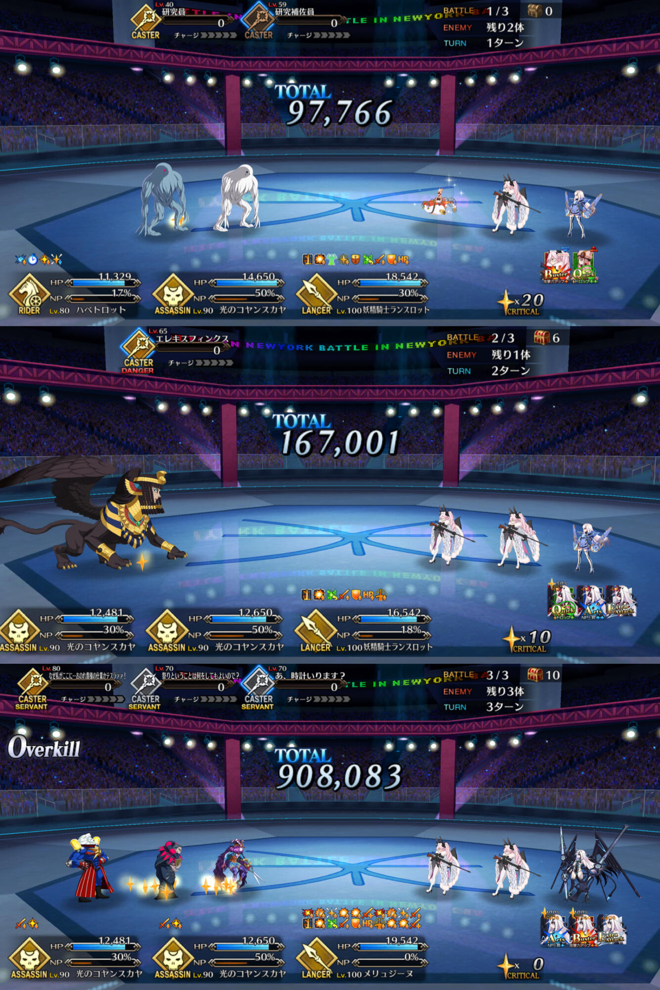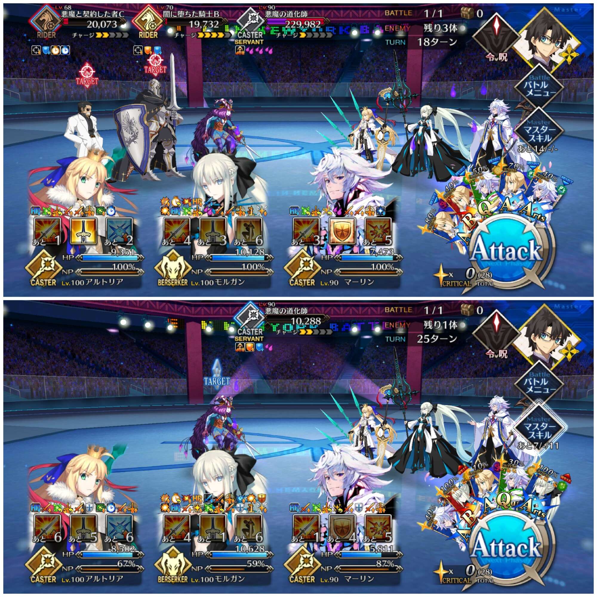 キャストリアの宝具もOC上げると回数もあがるから、前回の時よりかはタイマン時においての耐久性が上がりそう。マーリンのリジェネも含めて。