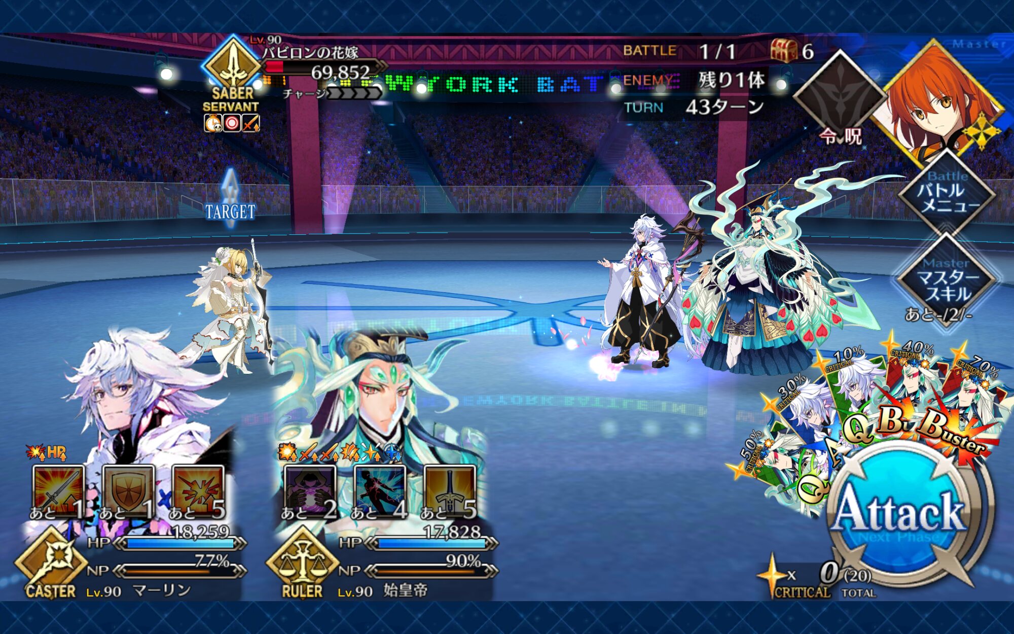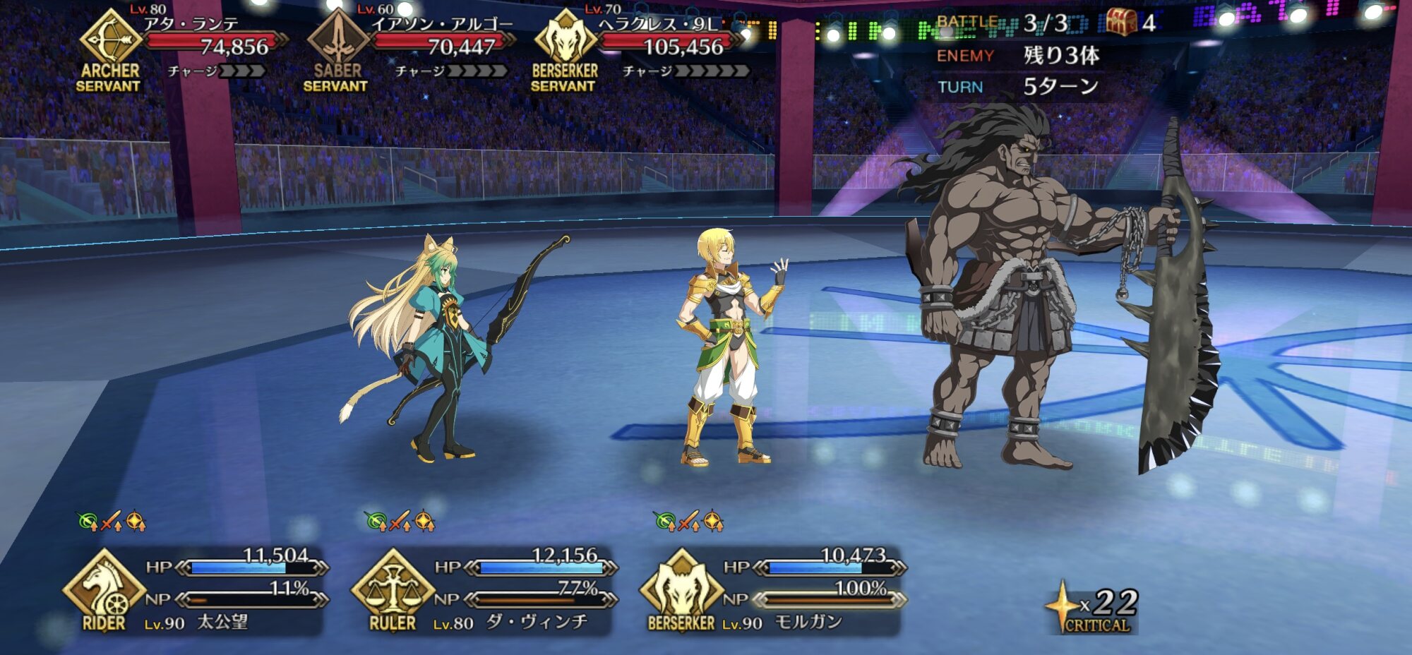 カード運とか絡むとはいえ、その気になれば多少不利な相手もクリティカルバフの数とNP回転率とルーラー特有の耐久力で誤魔化せる辺り十分偉いよヘラクレス…頼みがあるんですがちょっと誰かに星出しスキル学んできてくれないか…?