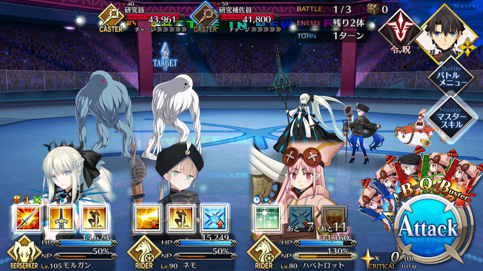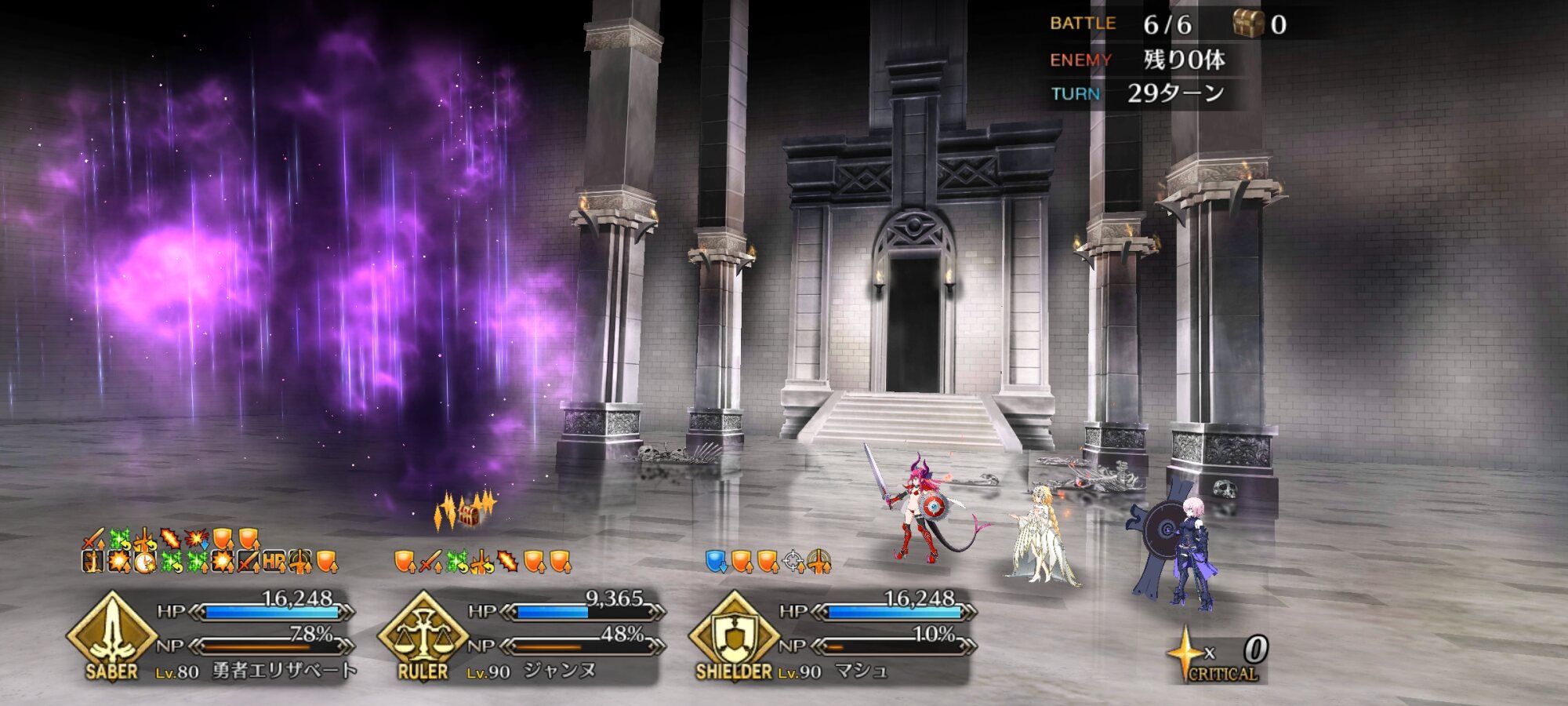 初手の強化無効はモルガンだけ解除して、サポーターは回数消費で剥がしていきました。>>896