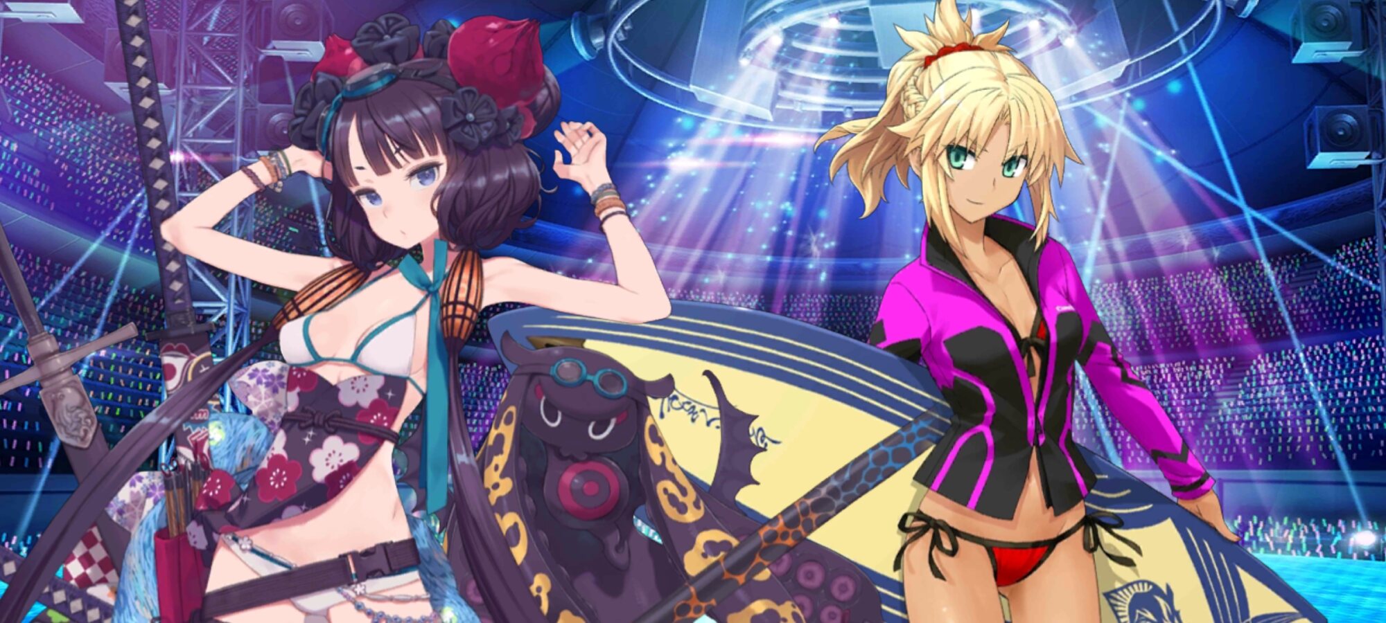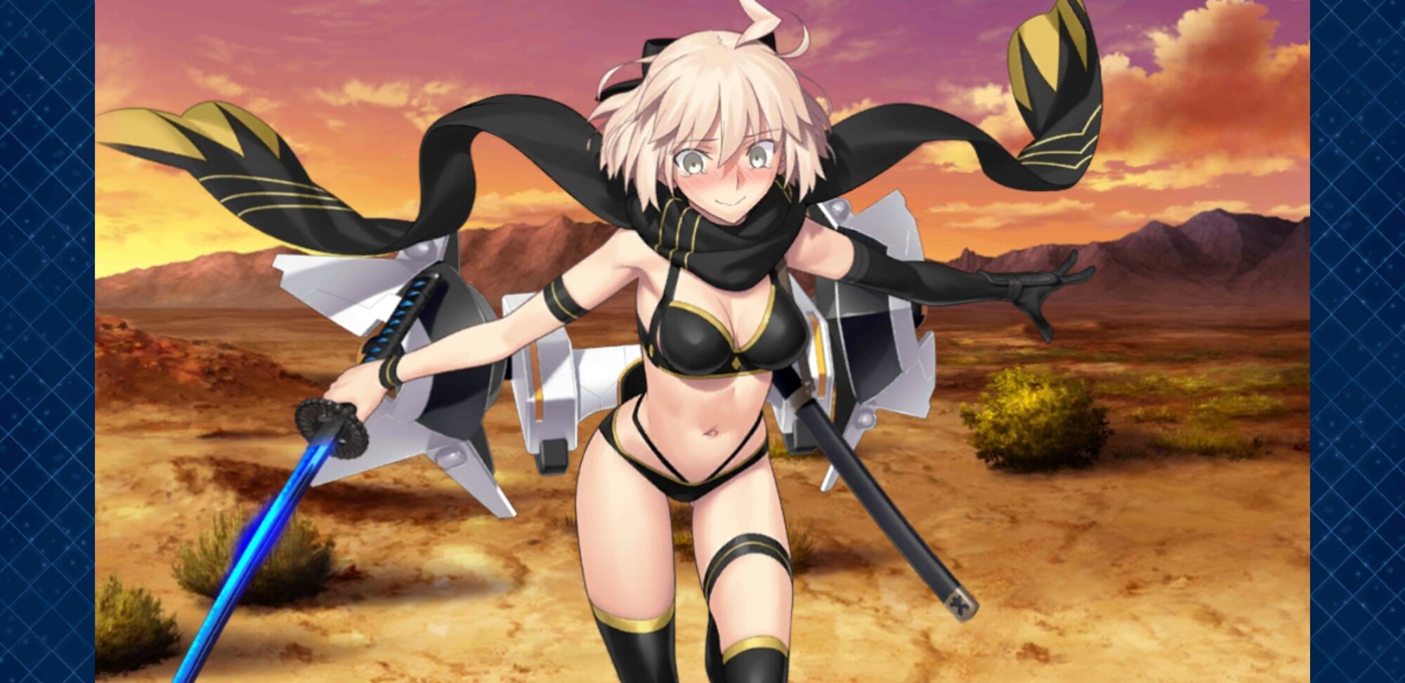 その脚線美を存分に味わえるのが水着武蔵ちゃんの第一霊基、競泳水着がもう凄まじいのなんのってこれ表現がまるで見つかりませんのでがんす!!