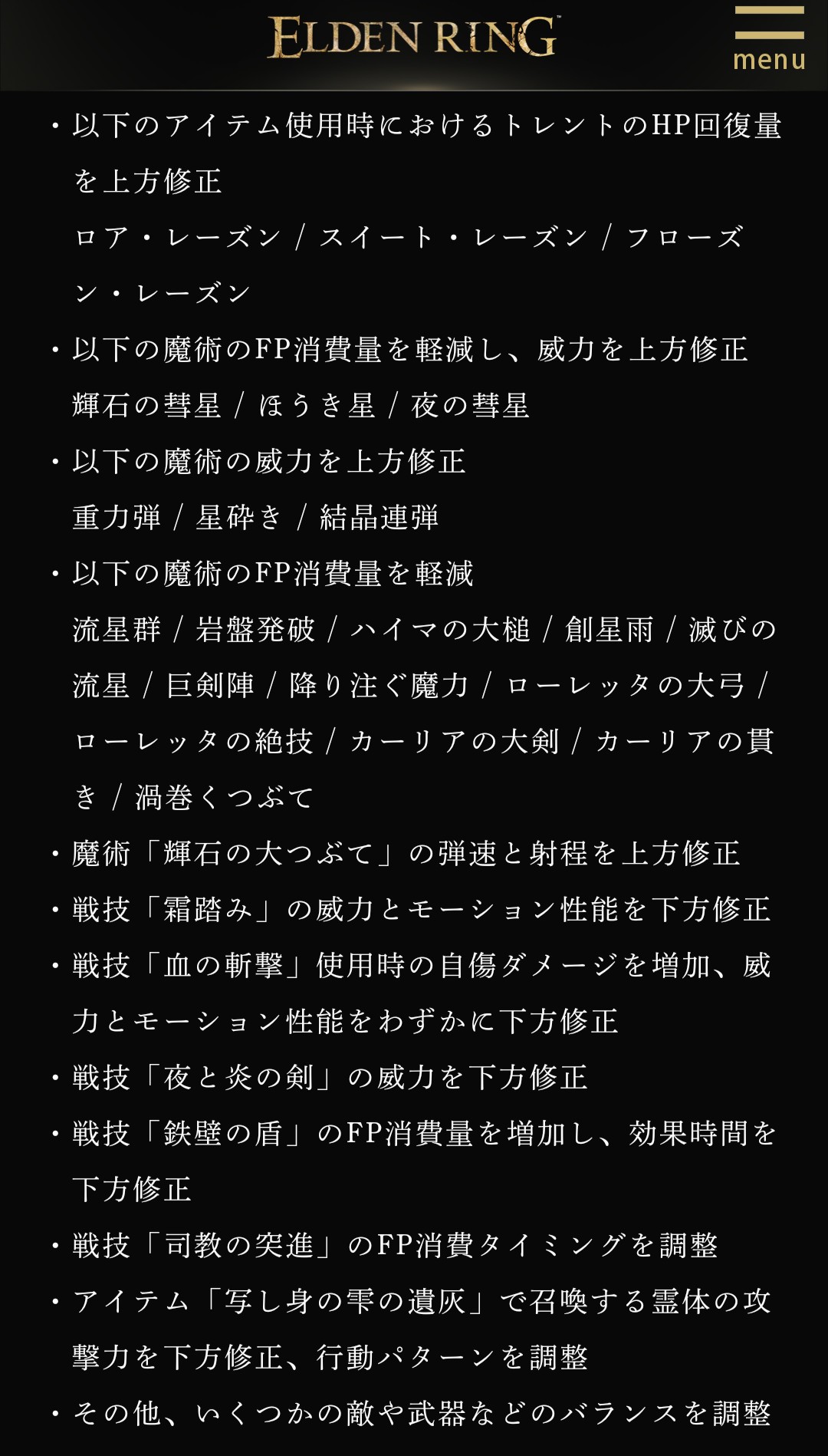 以下の魔術のFP消費量を軽減し、威力を上方修正