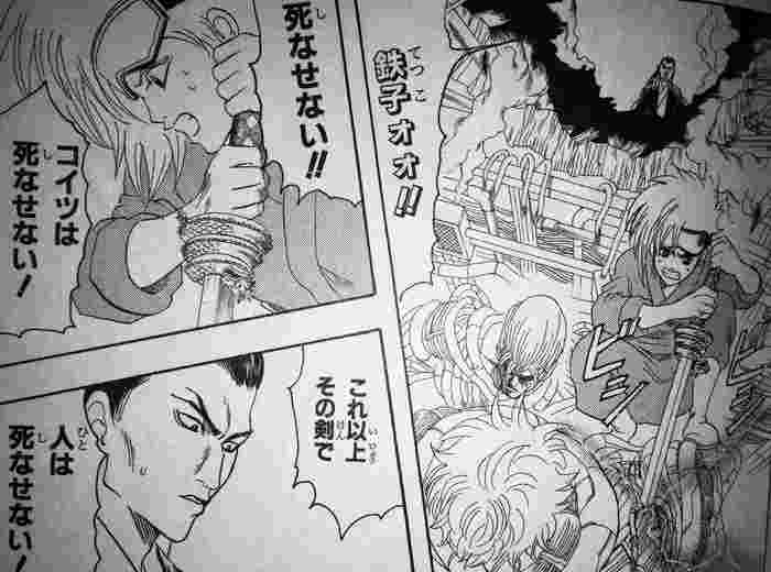 直後妹を庇って致命傷を負うも、最期に妹へ「いい鍛冶屋になれ」と言い遺しながら逝く