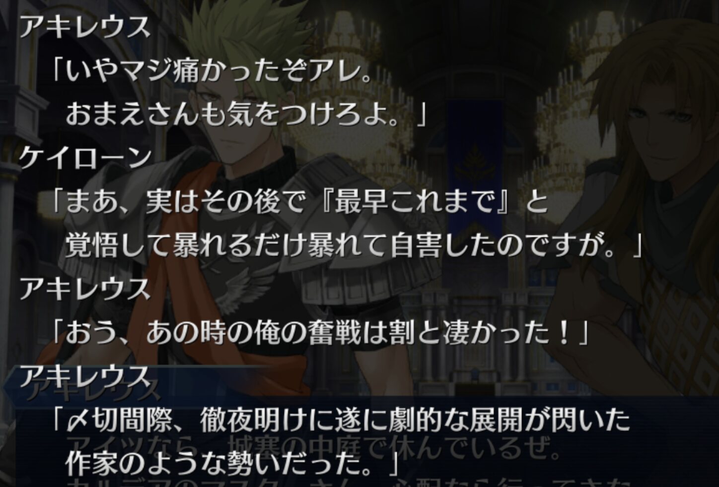 ただその一方で、後半になればなるほどボロが出ているんだよな。それが庭の限界。そもそも庭のなかでも絶対あんなこといわないのにそれですら「生き残るために自分に言い聞かせるように命令を下すゴッさん」がでるあたり藤丸のゴッさんに対する信頼が見える立ててきますわ