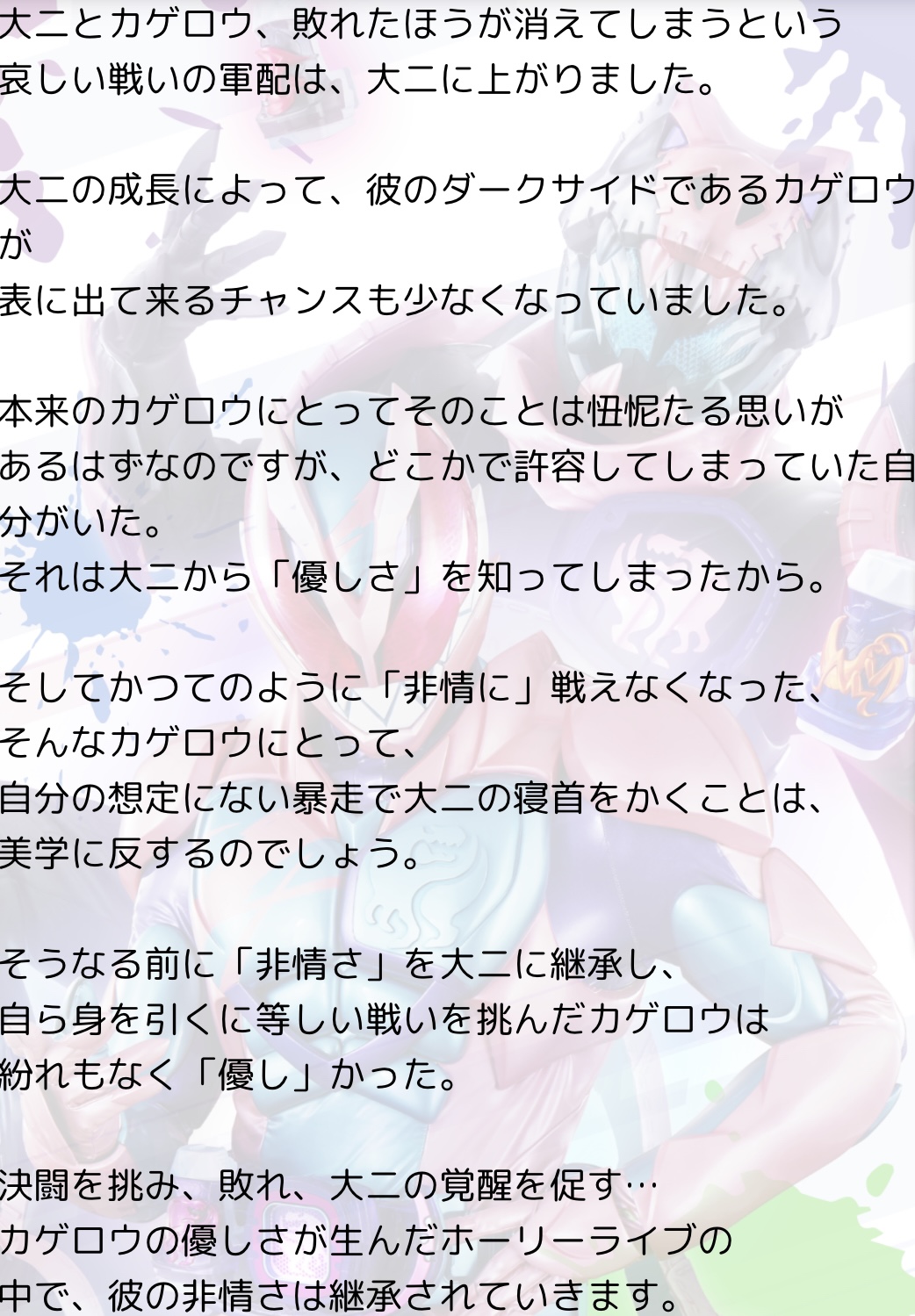 むしろ俳優には仮面ライダーのイメージ付きすぎない配慮されるぞ。>>98
