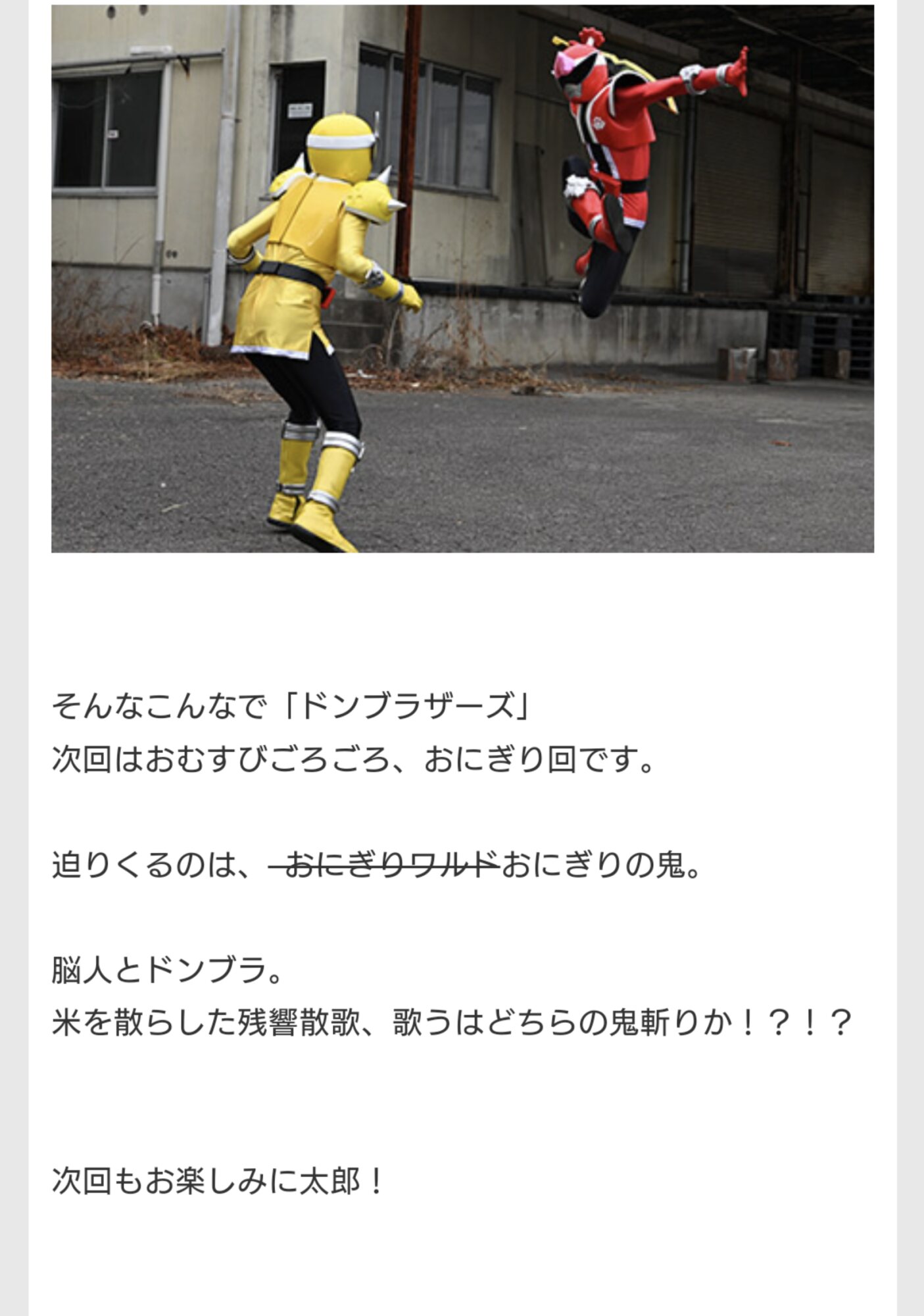 戦隊は視聴者狂われないと気が済まないの…?来週は戦隊がおにぎり担当か