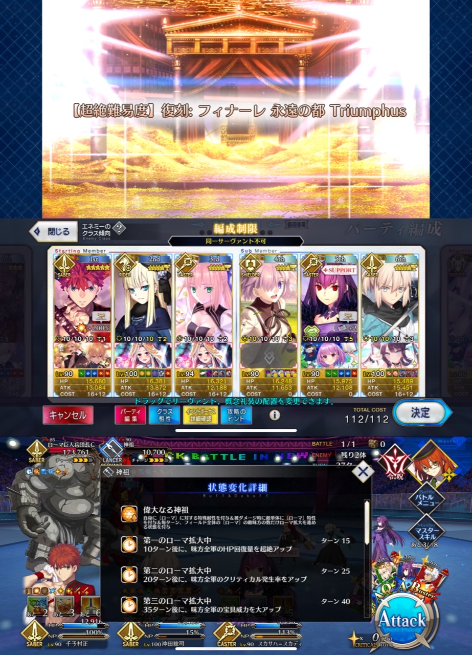ローマの恩恵の順番を覚えとくといいかも。当時高難易度できてなかったから仕様分からないんだけど、グランドローマでローマ行けるかな?