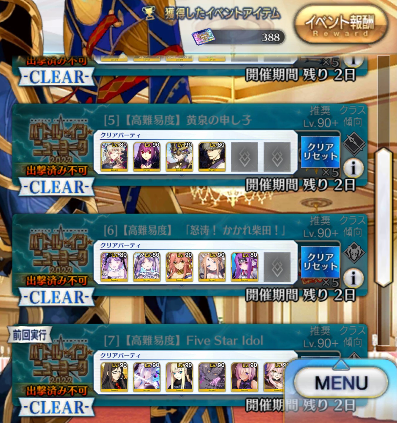 私もこれは攻略板に倣ってこの面子でいった、スキルを使う順番は重要だけど。残す所あと1日ちょっととなりました。